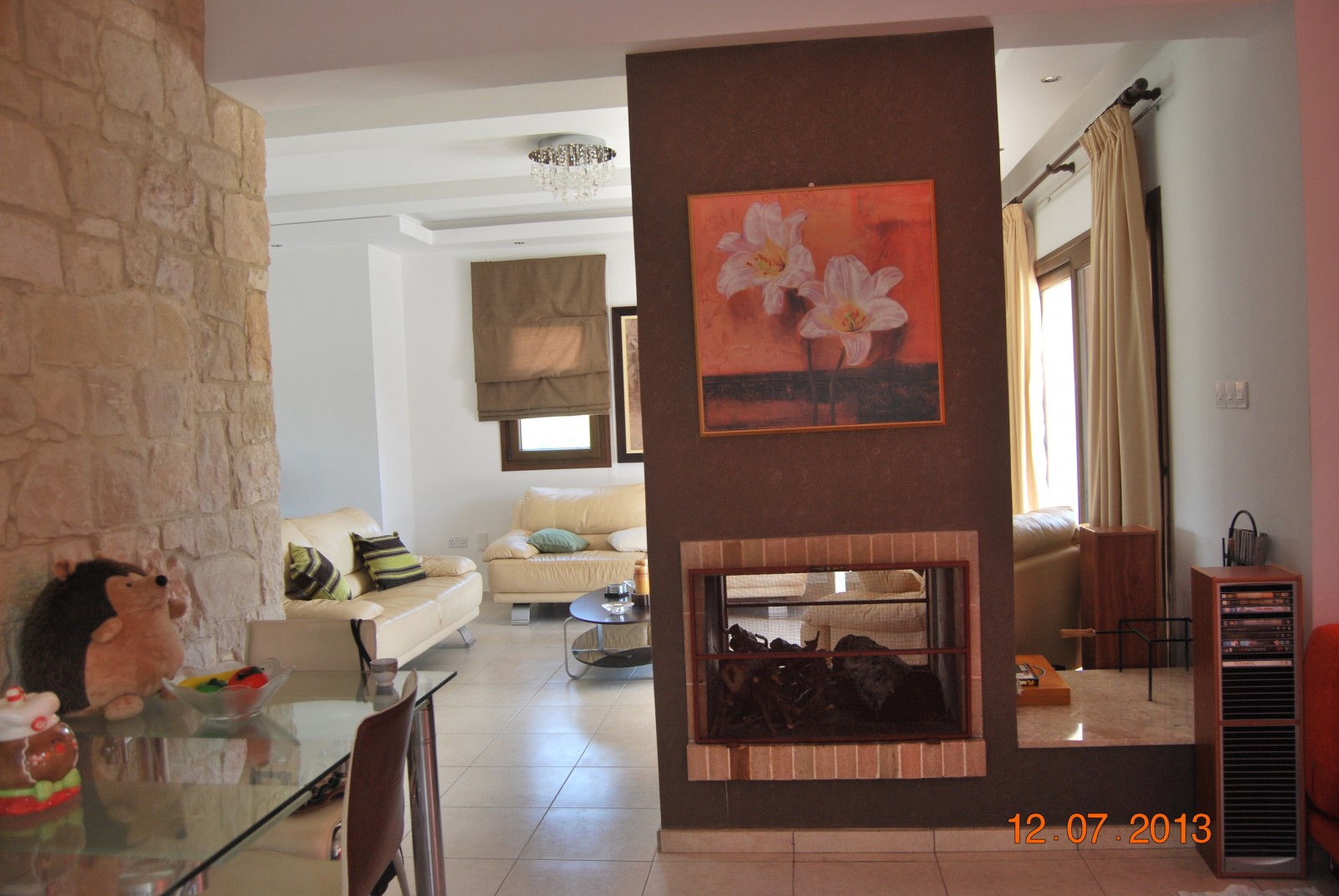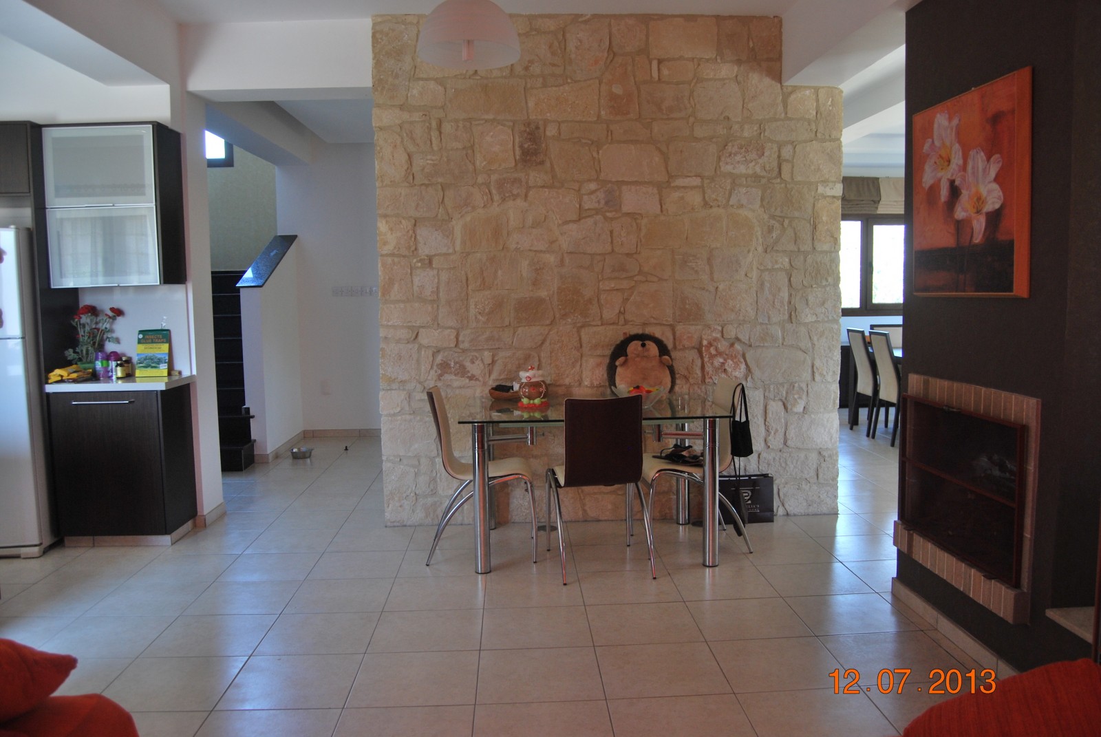 Собственность предлагает большие зрелые сады с деревьями и частный бассейн снаружи. Вход в дом в большую открытую гостиную / столовую с частично отделенной кухней на левой стороне с баром и отдельной подсобкой. В отеле есть 4 спальни с двуспальными кроватями и один одноместный номер, который можно перевести как кабинет или кабинет. Все номера имеют доступ к большому балкону с прекрасным видом на побережье Пафоса. В главной спальне и гостевой комнате есть собственный душ / ванная комната.