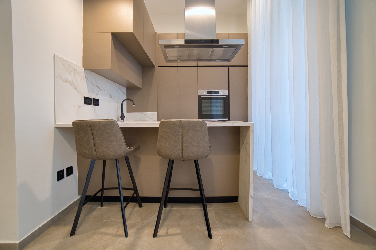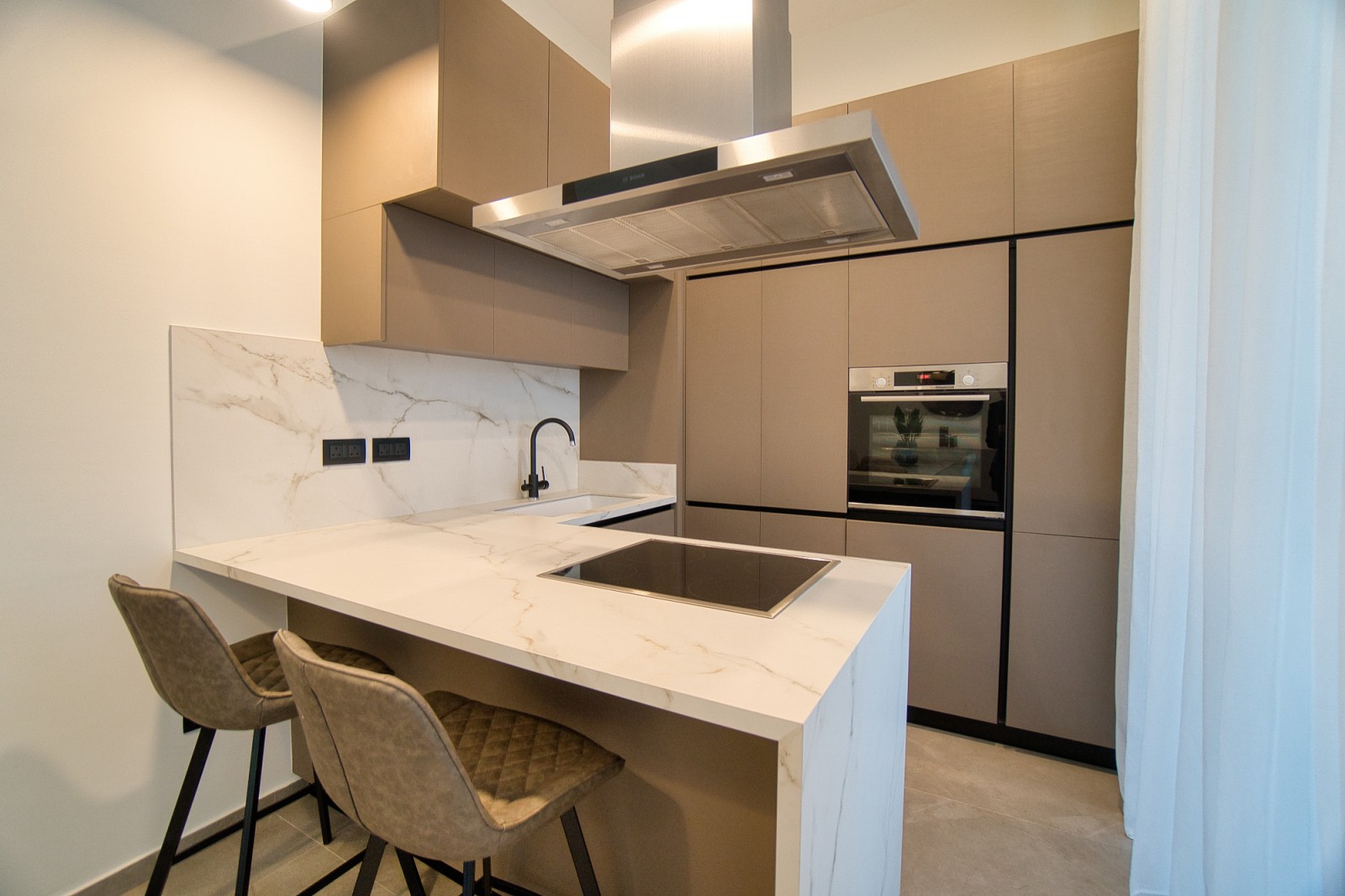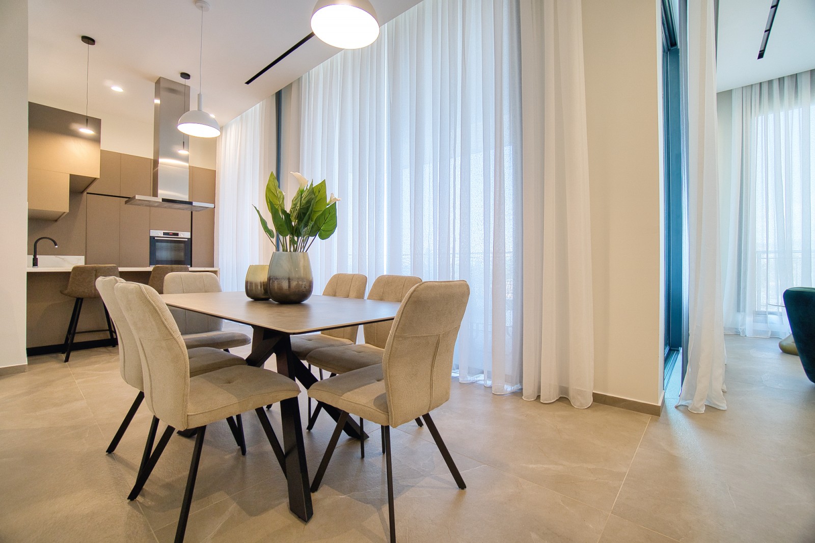 Эти прекрасные апартаменты являются великолепным примером современной средиземноморской архитектуры — настоящим убежищем для всех, кто здесь живёт. Продуманная планировка с широкими остеклёнными фасадами наполняет каждое жильё естественным светом и открывает панорамные виды. Современные открытые планировки предоставляют свободу для воплощения ваших индивидуальных идей. Частные балконы — идеальное место, чтобы понежиться на солнце и насладиться расслабленной атмосферой прибрежной жизни.