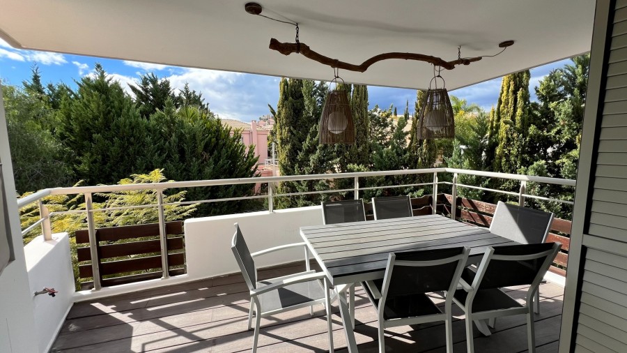 Современная двухкомнатная квартира расположена на третьем этаже в частном закрытом комплексе. Планировка открытая — кухня объединена с зоной столовой и гостиной. В квартире две спальни, семейная ванная комната и крытая веранда. Квартира полностью меблирована и оборудована: кондиционеры, настоящий камин на дровах, электрическое центральное отопление, мгновенный нагрев воды для душа и кухни с помощью Thermitron, москитные сетки, паркет в спальнях, двойные стеклопакеты, электроприборы LG с энергоэффективностью класса A+++, три плазменных телевизора (гостиная, спальня, веранда), система охраны, деревянное покрытие пола на веранде, качественные шторы, обои и жалюзи. Также есть кладовка и крытая парковка.