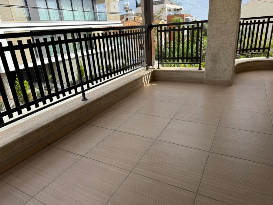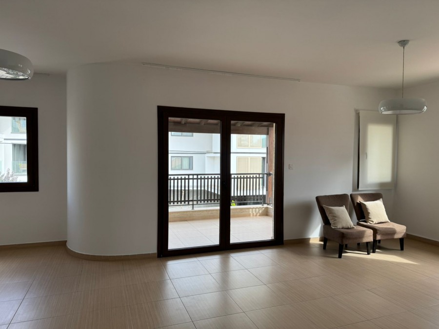 Общая крытая площадь составляет около 150 кв.м. В квартире предусмотрены три спальни, просторная гостиная с обеденной зоной и отдельная полностью оборудованная кухня. Главная спальня оснащена собственной душевой комнатой. Дополнительно имеется основная ванная комната с ванной и ещё один гостевой санузел.