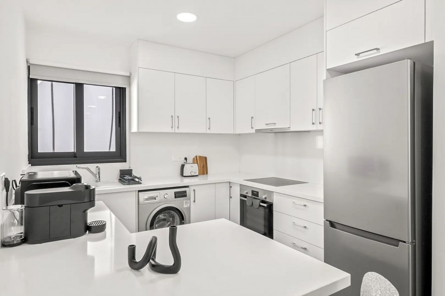 2-спальная  квартира с видом на море в центре Като Пафос, всего в 100 метрах от пляжа. Квартира расположена в самом сердце туристической зоны, в пешей доступности от набережной, порта, магазинов, ресторанов и всей необходимой инфраструктуры. Имеется крытая веранда с прекрасным видом на море. Кухня полностью оборудована техникой Bosch (холодильник, духовка, варочная панель, вытяжка, стиральная машина). Во всех комнатах установлены кондиционеры, есть система напора воды, двойные стеклопакеты, москитные сетки и жалюзи. Проживание с домашними животными не допускается. Квартира доступна с 1 мая 2026 года.