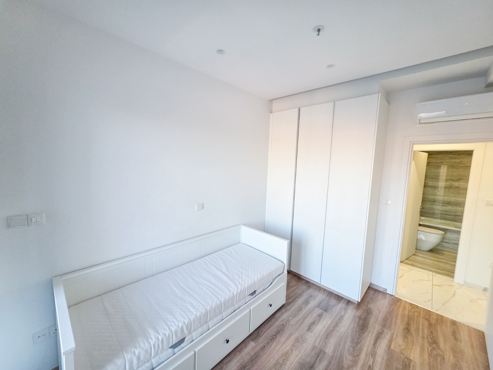 The property is equipped with air conditioning in all rooms and underfloor heating, ensuring comfort throughout the year. It is also fitted with household appliances and includes a private storage room and covered underground parking.