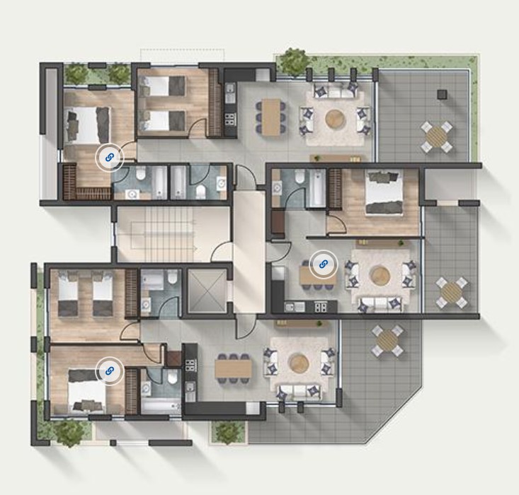 This exceptional residential development harmoniously blends architecture, light, and nature to create a refined urban living experience. Expansive terraces, lush landscaped areas, and floor-to-ceiling glass invite natural light while ensuring privacy and elegance. Interiors feature granite kitchens, natural wood accents, and energy-efficient solar systems, reflecting meticulous attention to detail and superior craftsmanship. Residents enjoy exclusive amenities including a private gym and roof gardens, all complemented by seamless access to the sea, marina, leading schools, and the vibrant rhythm of city life.