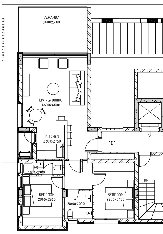 Шесть квартир имеют 2 спальни и продуманные планировки.Одна квартира имеет 1 спальню с эффективным дизайном — идеальный вариант для людей, которым нужен практичный дом в центральном районе.Небольшое количество квартир делает здание более приватным и тихим. В проекте также предусмотрена подготовка для зарядки электромобилей для каждой квартиры.