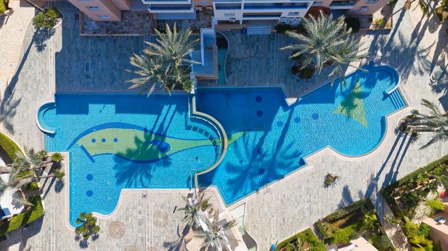 Квартира располагает доступом к общему бассейну, а также эксклюзивным правом пользования парковочным местом и кладовой в подвальном помещении.