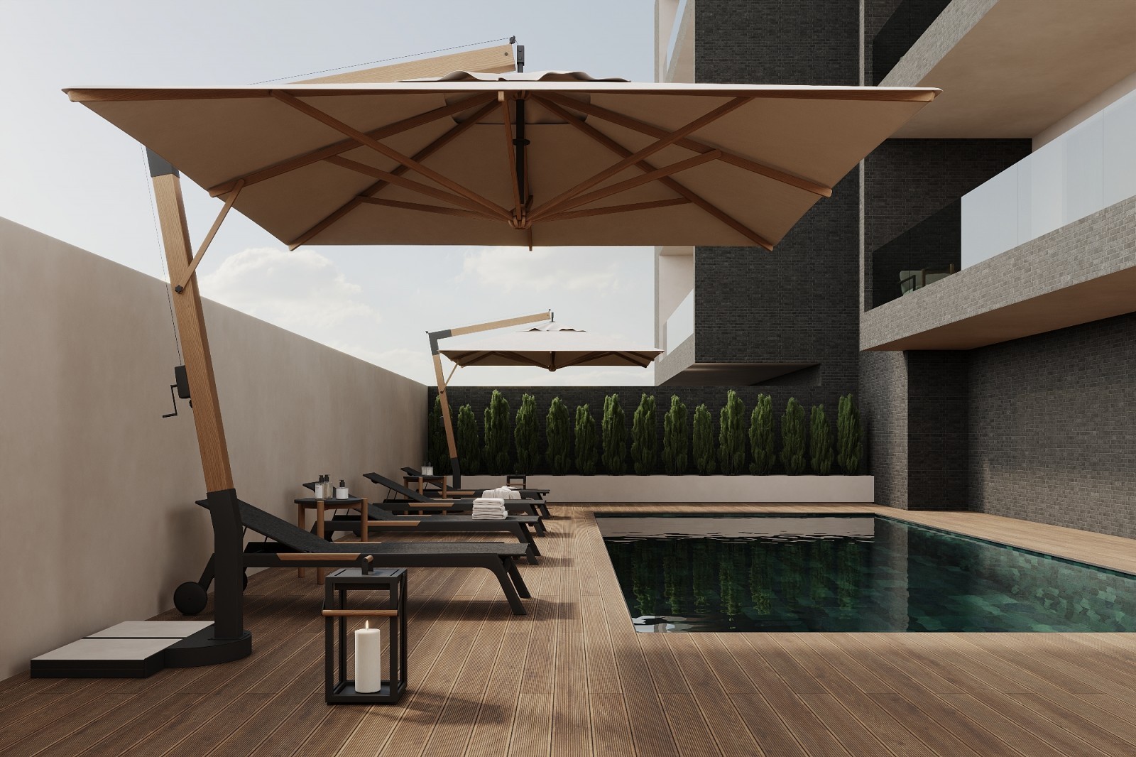 Каждая резиденция тщательно продумана: современная архитектура, просторные частные балконы и захватывающие виды на зелёные зоны и Средиземное море. Комплекс предлагает частную парковку, индивидуальные кладовые помещения и общий бассейн, обеспечивая идеальное сочетание удобства и роскоши.