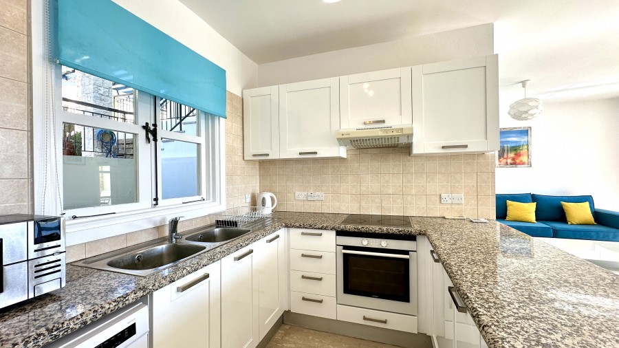 Из этой восхитительной квартиры на первом этаже с 2 спальнями открывается вид на центральное ущелье курорта и Средиземное море. Всего в 4 минутах ходьбы от центра курортного поселка, он пользуется популярностью среди арендаторов и представляет собой хорошую инвестиционную возможность. К квартире ведет отдельный подъезд с крытой беседкой, спуск по лестнице на половину лестничного пролета и попадание в прохладный двор. Главный вход в дом открывается в светлую и просторную гостиную с дверями патио, ведущими на частично крытую и просторную террасу. Виды отсюда потрясающие и создают ощущение умиротворения и умиротворения. Ступеньки ведут в большой сад, который в основном оставлен в естественном состоянии для удобства ухода. Кухня открытой планировки с гранитной столешницей примыкает к обеденной зоне. Он оборудован всем, что можно ожидать, и имеет окно, выходящее во двор. Через раздвижную дверь можно попасть в спальню с 2 спальнями с двуспальными кроватями и семейной ванной комнатой. Во второй спальне в передней части дома есть световой колодец, а в главной спальне в задней части квартиры есть двери во внутренний дворик, ведущие на заднюю террасу. В обеих спальнях деревянные полы, достаточно места для гардероба, в каждой есть электрический радиатор. Рядом с входной дверью с собственной запираемой внешней дверью находится очень полезная кладовая, идеально подходящая для хранения клюшек для гольфа и велосипедов или личного снаряжения владельцев, пока в квартире находятся арендованные гости.