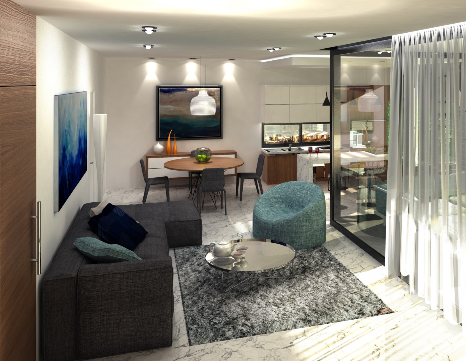 Апартаменты сдаются с высококачественной отделкой. Спецификация включает теплые полы, двойное остекление, кухонные гарнитуры, кондиционирование, встроенные шкафы и качественную сантехнику.