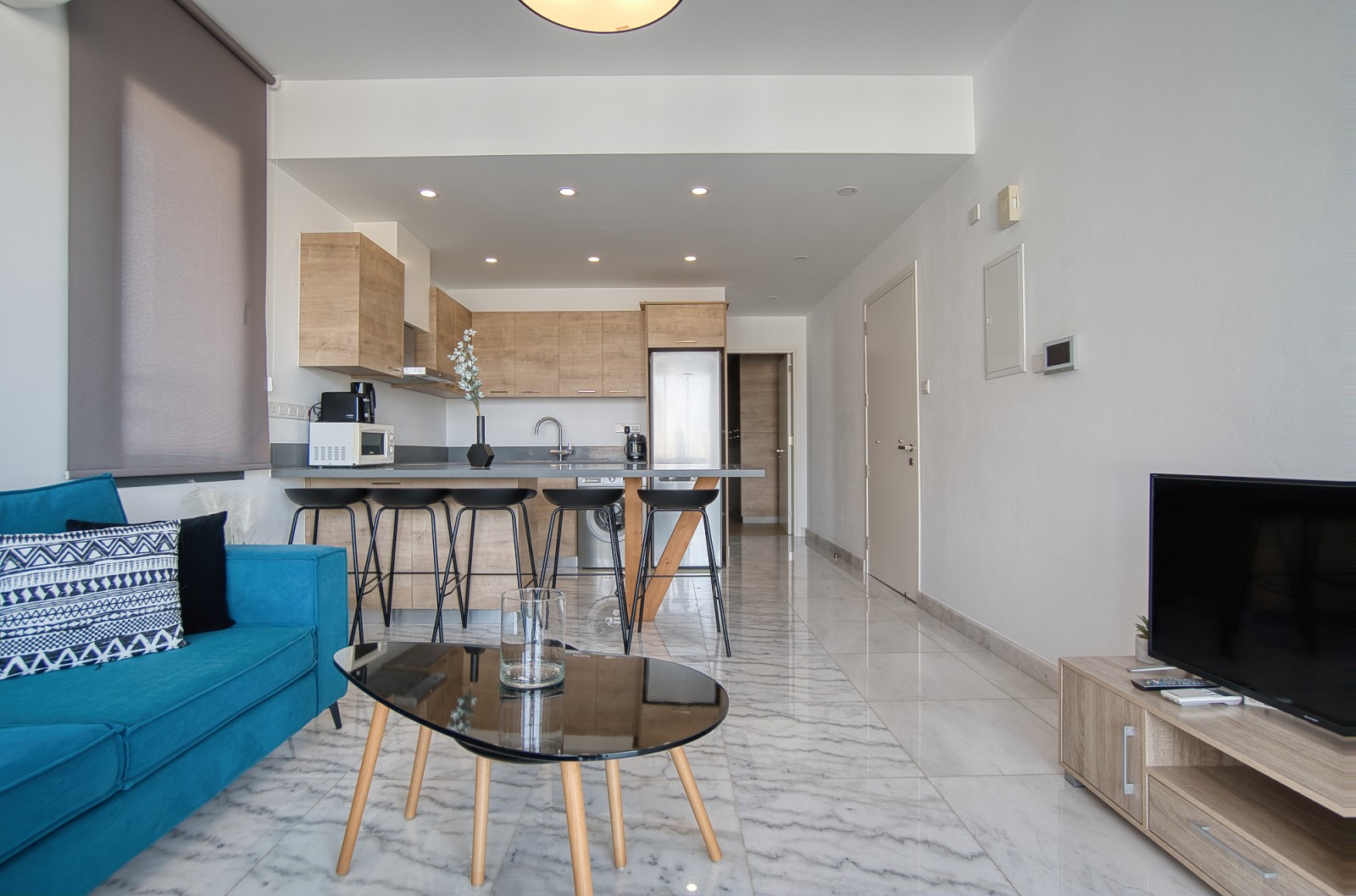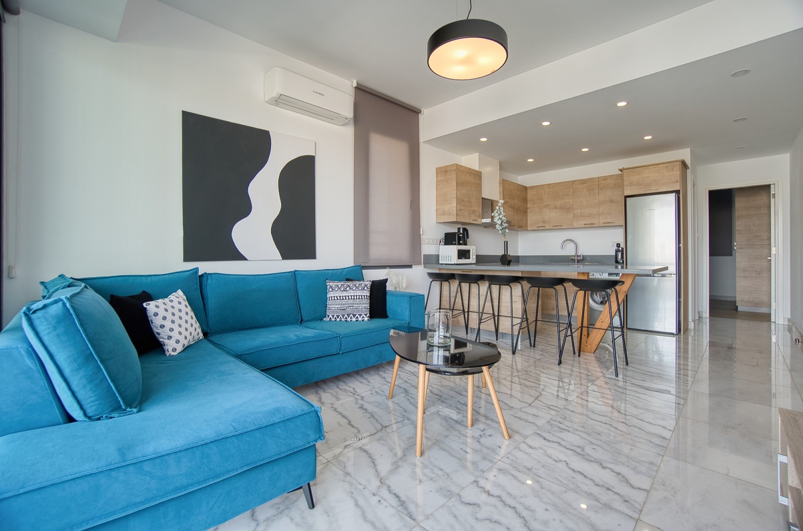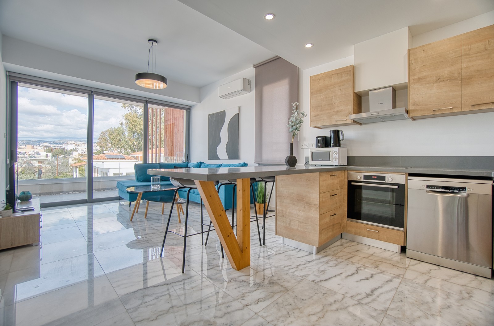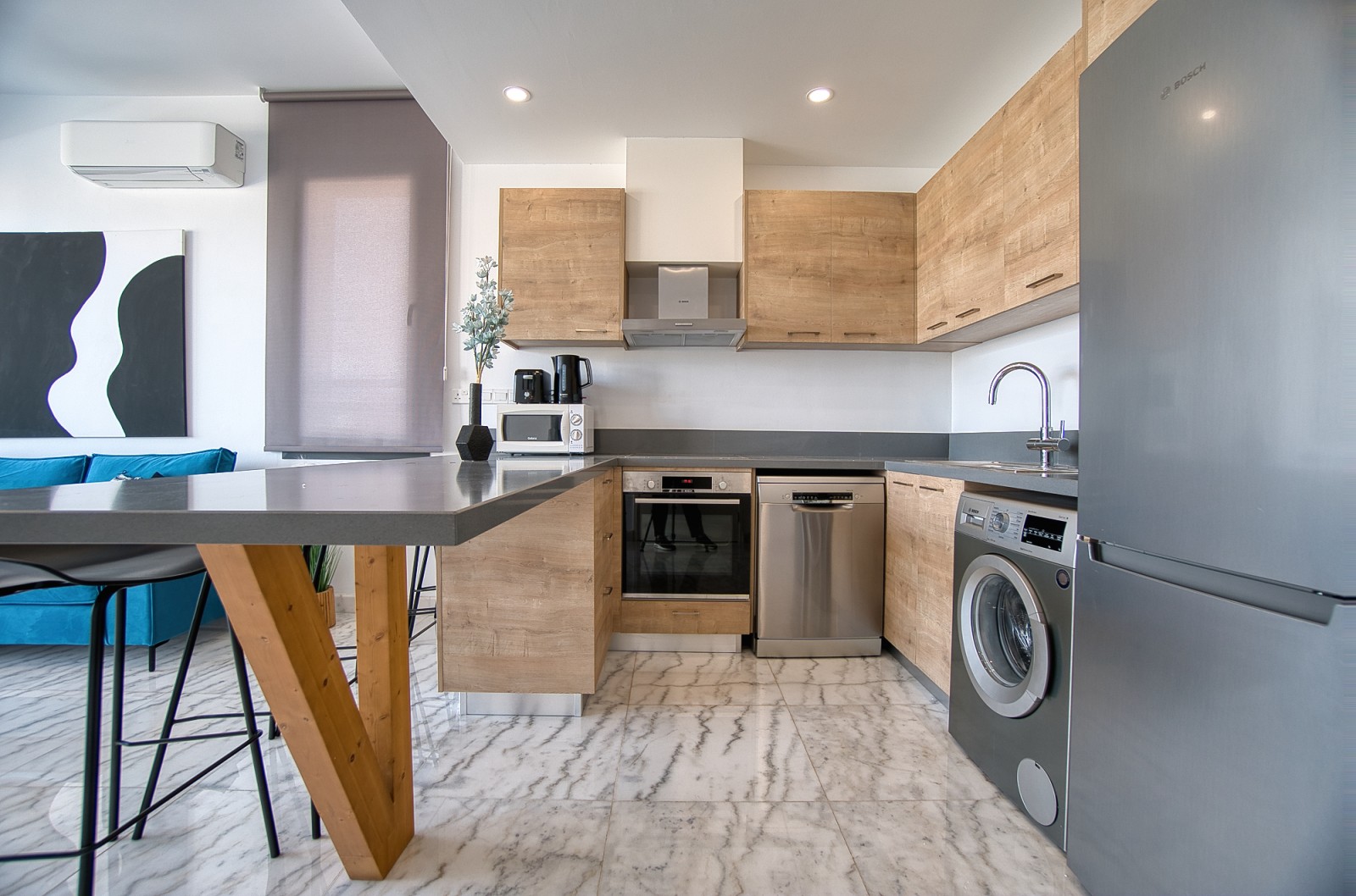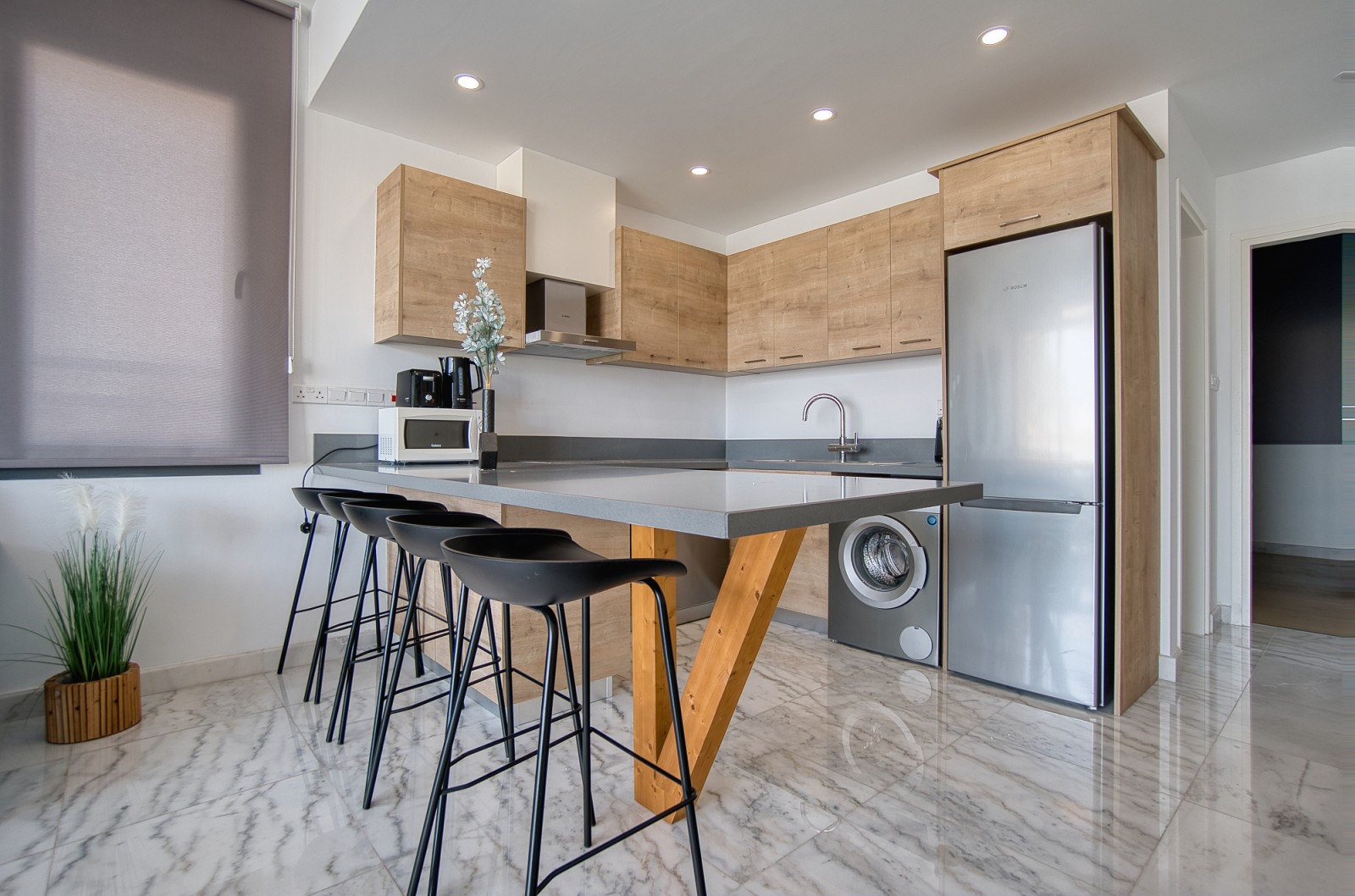 Fully furnished with modern design this 1 bedroom apartment is located in a quiet residential area and only a short walk from the picturesque fishing harbor , the beach, the ancient fort and busy restaurant district .Also it is conveniently close to the Old Town of Paphos, where you will find, among many other necessities, shops, supermarkets, museums, the library, post office and police station. For shoppers, the King’s Avenue Mall (Cyprus’ biggest shopping mall) is situated only a five-minutes walk away, whereas the sports nuts can enjoy bike rides and jogs along the nearby coastal path. Those lucky enough to have a car can also visit several other points of interest like golf courses, diving sites, wine routes and picturesque villages.