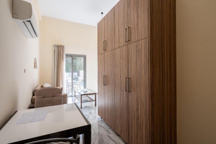 The property is a studio apartment (C02) in Latchi. It is part of a resort comprising 59 apartments in total (studios, 1 bedroom and 2 bedroom apartments). The resort is located on the edge of the Akamas peninsula natural reserve. It is only a 3 minute drive to Latchi beach and just a short drive from Polis Chrysochous, Latchi harbour and historical attractions. The studio has a covered area of 48sqm and uncovered verandas of 22sqm. It is situated on the ground floor of Block C. It consists of an open plan area with kitchenette, sitting area, a double bed, a bathroom with toilet and a private swimming pool. The resort currently features an outdoor swimming pool with bar, an indoor saltwater pool and a sauna with indoor pool. The property is a unique opportunity to acquire your investment or holiday apartment by the sea. The apartment does not have a separate title deed. Sale to be effected through a Sales and Purchase agreement which will be deposited at the LRO.