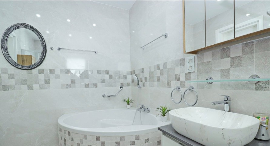 На открытом воздухе территория превращается в уединенный средиземноморский уголок. Просторные террасы ведут к большому частному бассейну, элегантно расположенному таким образом, чтобы визуально сливаться с синим горизонтом, создавая ощущение, будто море плавно переходит в ваше собственное убежище. Важным элементом комфорта является солнцезащитный навес, полностью закрывающий бассейн и зону для загара в летние месяцы. Это не только обеспечивает эффективную защиту от солнца, но и играет важную роль в регулировании температуры, поддерживая температуру воды в бассейне на комфортном уровне около 27°C, по сравнению с 32–33°C без навеса.