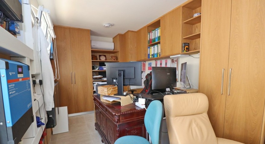 Специальная зона для загара располагает к долгим, неспешным дням у бассейна, а ухоженные сады, старые деревья и обилие плодовых растений окутывают территорию природной красотой и безмятежностью. Впечатляющая зона для барбекю и отдыха из песчаника, душ на открытом воздухе и множество затененных и открытых зон отдыха делают это место исключительным для обедов на свежем воздухе и непринужденных встреч. Поистине уникальной изюминкой является продуманный ботанический сад, где фотоэлектрические панели обеспечивают тень, одновременно вырабатывая энергию – вдохновляющее сочетание дизайна, инноваций и экологичности. Дополнительные удобства включают закрытый павильон площадью около 18 кв. м, в настоящее время используемый как частный тренажерный зал, и отдельное здание площадью около 35 кв. м, в котором расположены офис, туалет на открытом воздухе и мастерская, идеально подходящие для удаленной работы, хобби или использования гостями. В мастерской уже проведено трехфазное электроснабжение для возможной установки сауны, что позволит легко реализовать проект в будущем, если новый владелец захочет это сделать. Дополнительными преимуществами дома являются солнечная энергетическая система мощностью 20 кВт с аккумуляторным хранилищем, обеспечивающая эффективное автономное энергоснабжение и почти полную энергетическую независимость, а также дополнительная фотоэлектрическая система, подключенная к сети. Система «умный дом» управляет жалюзи и освещением, обеспечивая комфорт, безопасность и энергоэффективность одним нажатием кнопки. Система аварийного резерва воды дополнительно повышает независимость и спокойствие владельца. В доме также установлено электрическое отопление для комфорта в любое время года. Это больше, чем просто резиденция, это воплощение стиля жизни, оазис элегантности, экологичности и непринужденной роскоши в одном из самых востребованных районов Пейи.