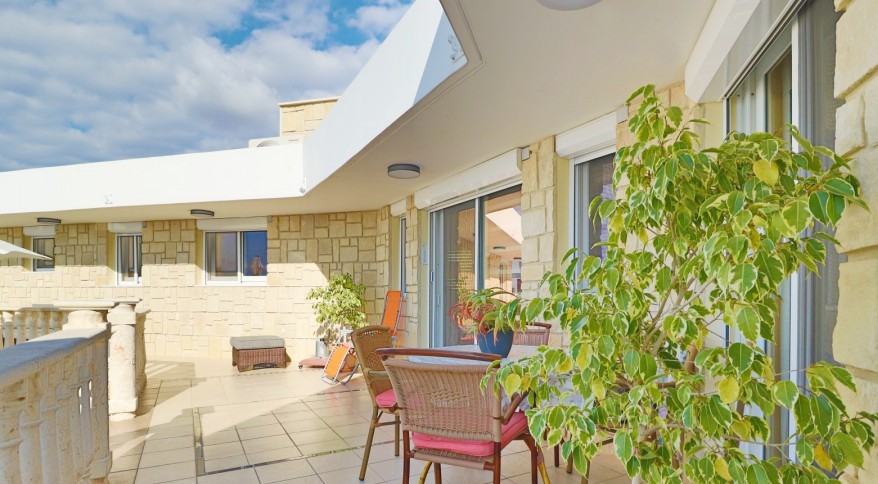 Этот необыкновенный, элегантный бунгало, расположенный в одном из самых эксклюзивных и тихих мест на склоне холма в Пейе, представляет собой редкую возможность приобрести резиденцию, где изысканная роскошь, экологичность и абсолютная приватность сосуществуют в идеальной гармонии. Дом, отремонтированный в 2023 году по безупречным стандартам, был создан с бескомпромиссным вниманием к деталям, отражая глубокую гордость владельцев за свою собственность и их приверженность качеству. Расположенный на обширном благоустроенном участке площадью 1800 кв. м, в конце тупика, дом открывает захватывающие, ничем не загороженные виды на Средиземное море и окружающий природный ландшафт. Несмотря на свою безмятежную обстановку, пляж и курорт Корал-Бэй, а также площадь деревни Пейя находятся всего в пяти минутах езды, предлагая идеальный баланс между уединением и удобством. Незаметные электрические ворота ведут к частной подъездной дороге и крытой парковке с фотоэлектрическими панелями и зарядной станцией для электромобилей, сразу же демонстрируя прогрессивный и экологичный образ жизни, присущий этому дому. Объект недвижимости дополнительно охраняется круглосуточной профессиональной службой безопасности, что обеспечивает полное спокойствие. Интерьер начинается с величественного и элегантного вестибюля, плавно переходящего в прекрасно спланированную гостиную, залитую естественным светом. Большие окна обрамляют бескрайний морской горизонт, создавая впечатляющий, но в то же время успокаивающий фон как для повседневной жизни, так и для изысканных приемов. Все окна были полностью заменены в 2023 году и оснащены электрическими рольставнями и встроенными противомоскитными сетками, обеспечивая комфорт, безопасность и климат-контроль в течение всего года. Резиденция продуманно разделена на отдельные жилые зоны. В одном крыле расположены две элегантные спальни с двуспальными кроватями, включая изысканную ванную комнату, обе с прямым выходом на открытые террасы и захватывающим видом на море. Стильная семейная ванная комната и тихая зона отдыха и кабинета дополняют это крыло, предоставляя дополнительные возможности для персонализации. В противоположном крыле находится отдельная, полностью оборудованная дизайнерская кухня, оснащенная бытовой техникой премиум-класса и очаровательным уголком для завтрака, идеально подходящим для неспешных утренних часов. Владельческая спальня — это настоящий райский уголок с панорамным видом на море, прямым выходом в сад и роскошной ванной комнатой, оборудованной ванной и душевой кабиной.