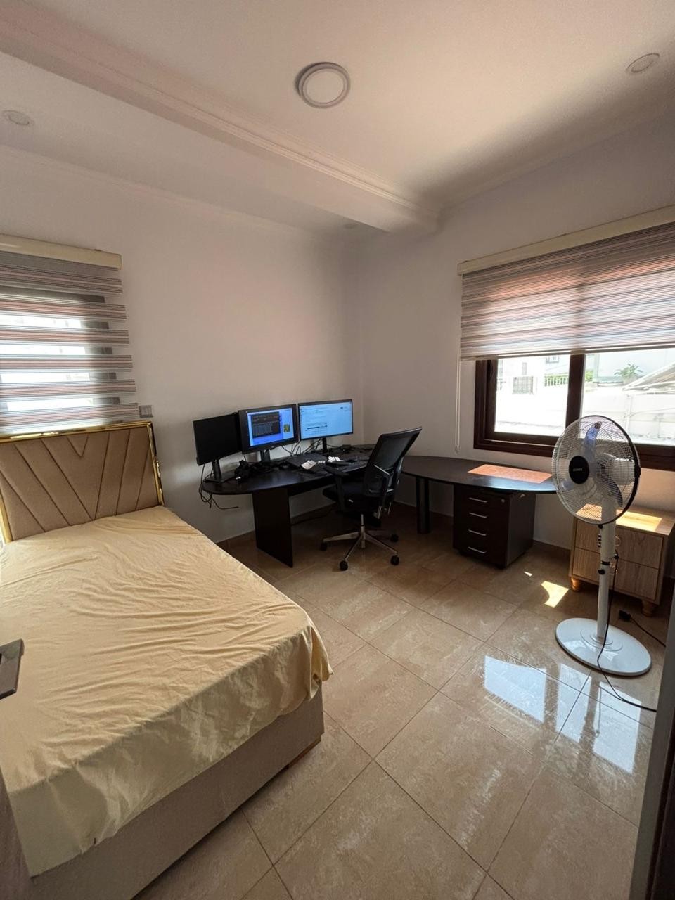 This spacious five bedroom detached family house is available for rent in the central area of Apostolos Andreas, offering a practical location with easy access to the highway and just a five minute drive to Limassol Marina.