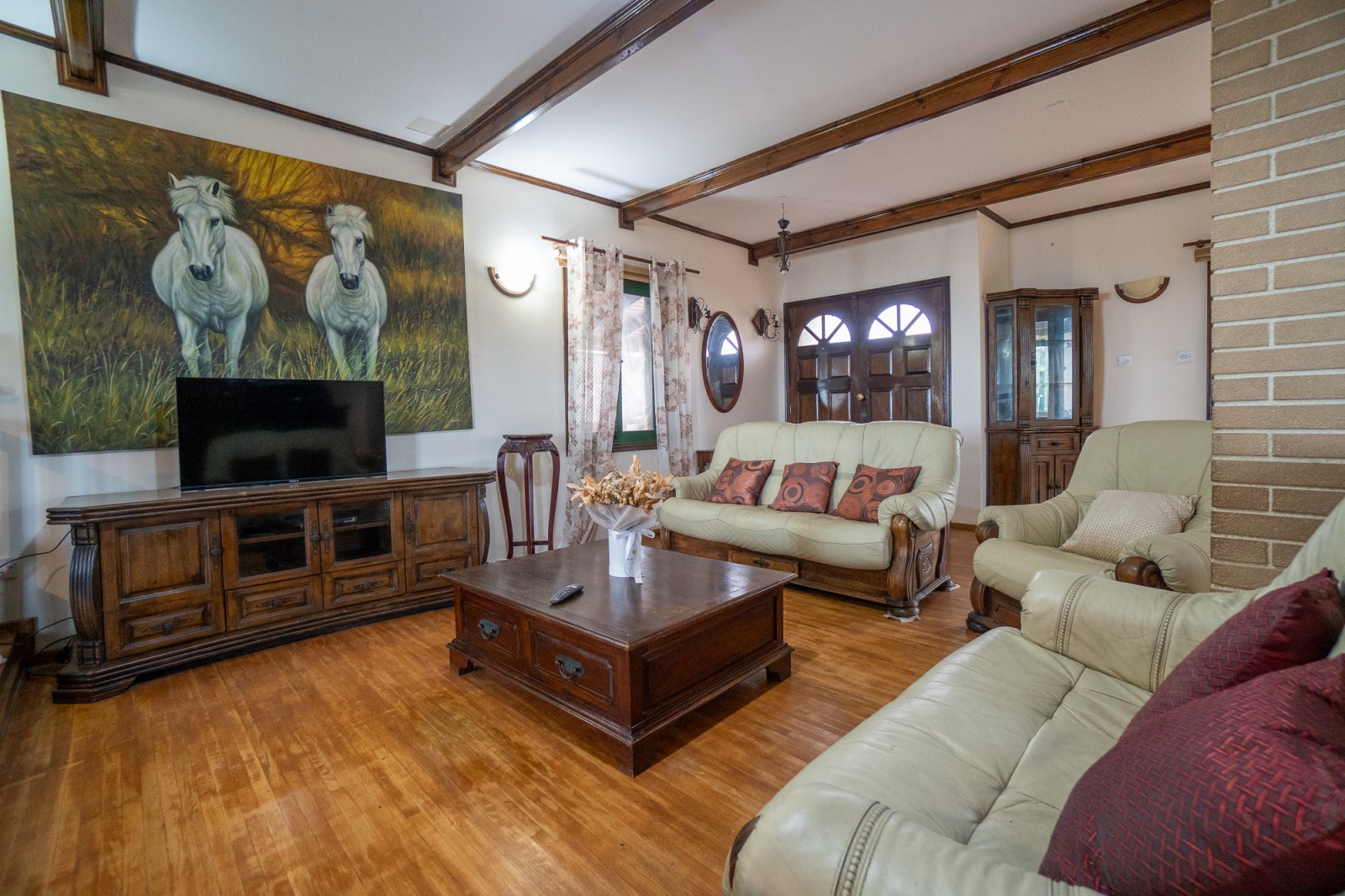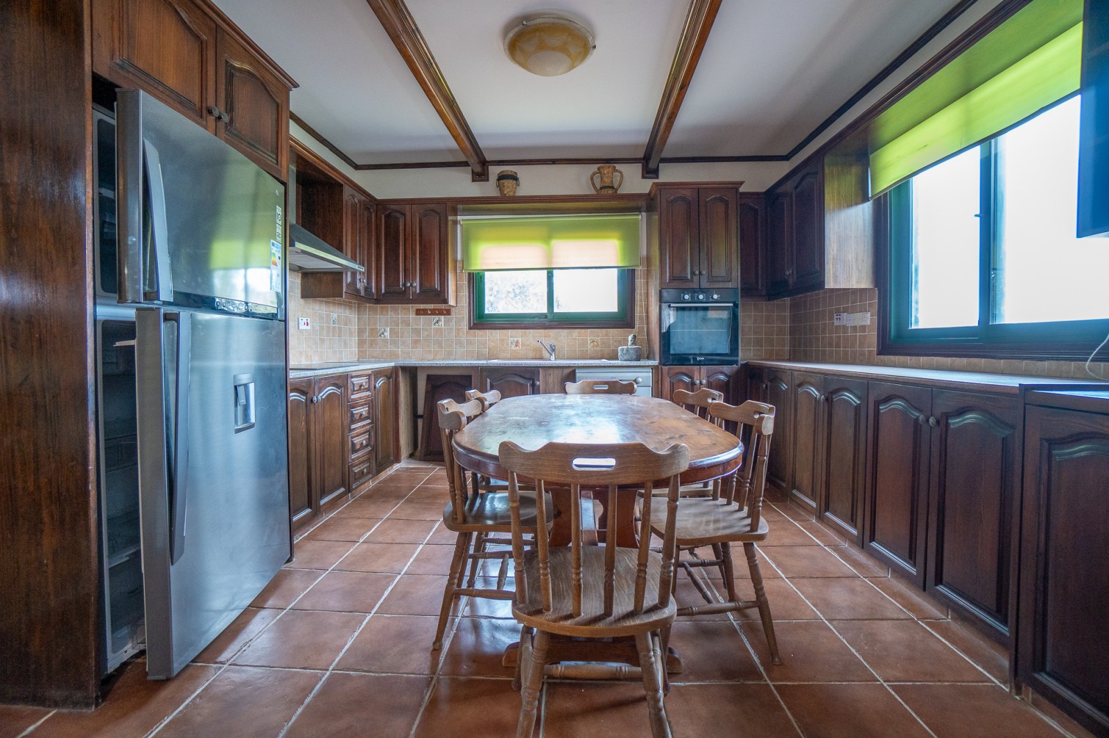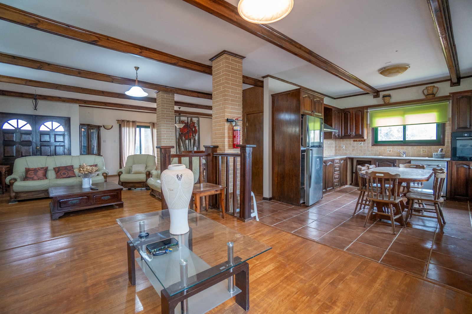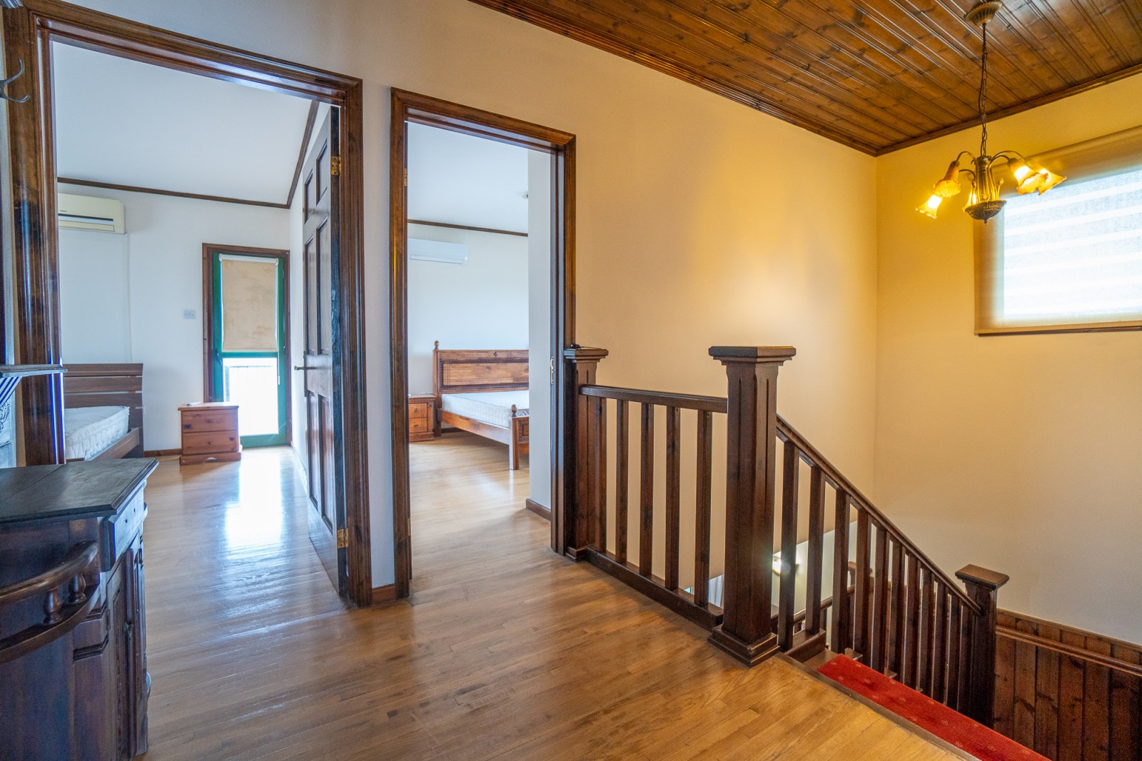 Дом предлагает около 180 кв.м внутренней жилой площади с комфортной и просторной планировкой. Интерьер меблирован качественной классической деревянной мебелью, по всему дому уложены деревянные полы, придающие пространству тёплый и уютный характер. Во всех помещениях установлены системы кондиционирования. Из дома открываются красивые виды на море, горы и город.