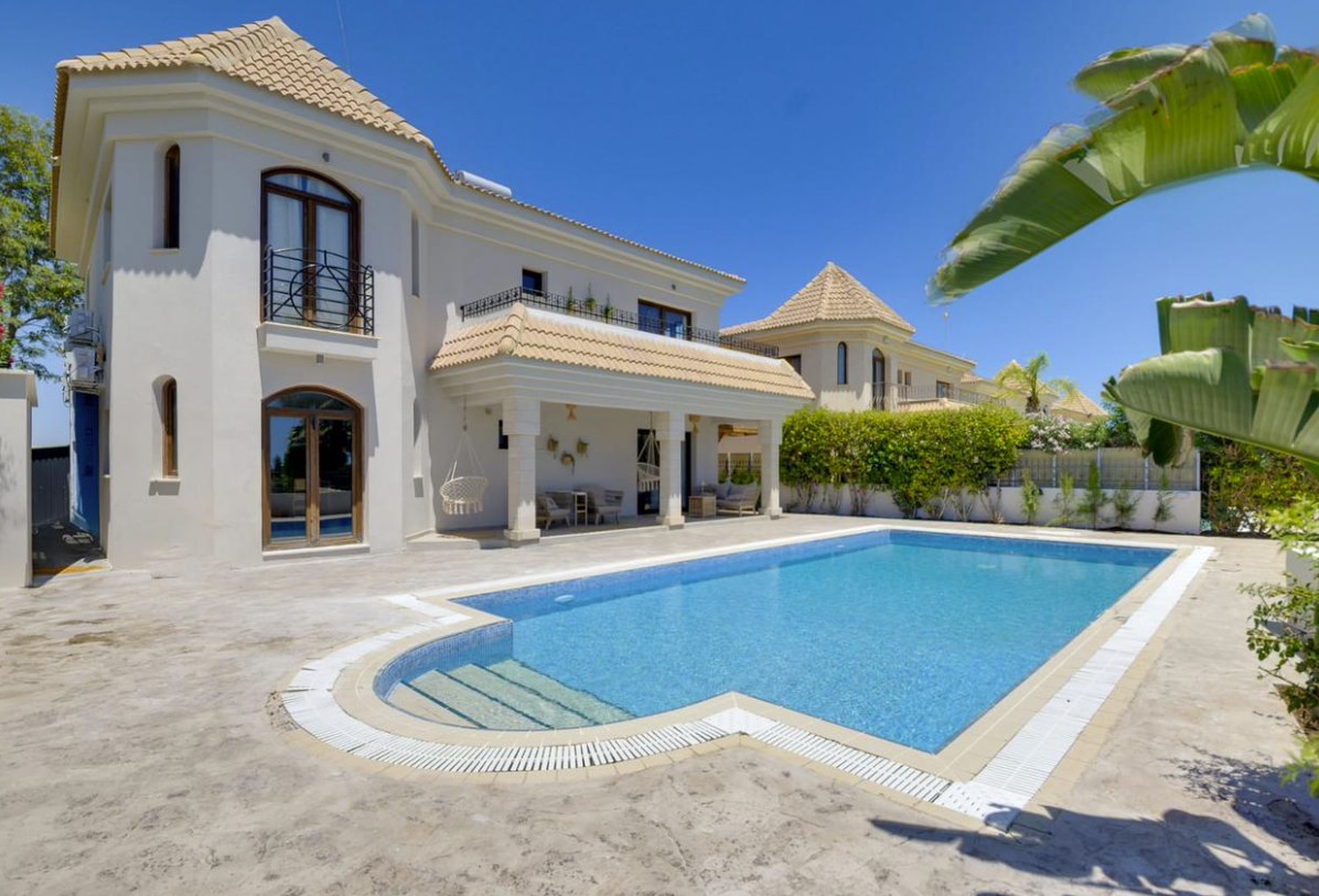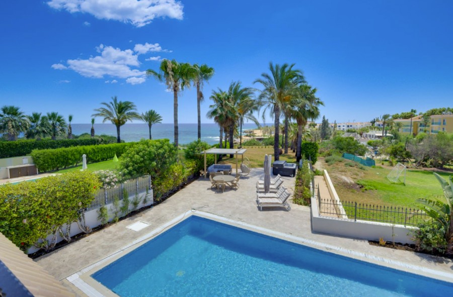 Experience true beachfront living in this exceptional frontline sea-view villa available for rent, offering direct access to the beach and uninterrupted coastal views. Set on a generous 650 m² plot, the fully furnished home features five spacious master bedrooms with en-suite bathrooms, plus a maid’s room with its own bathroom and a guest WC. With 222 m² of elegant interior space, along with covered and uncovered verandas, the villa is designed for both comfort and entertaining. Outdoors, enjoy a private swimming pool, landscaped garden, and relaxing terrace areas, creating the perfect setting for a luxurious Mediterranean lifestyle by the sea.