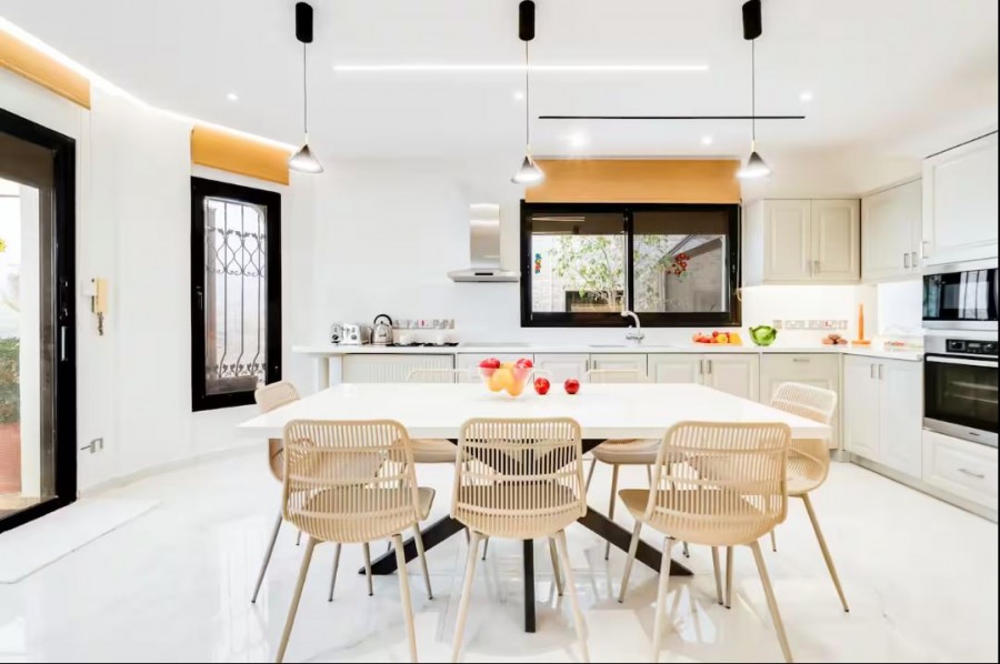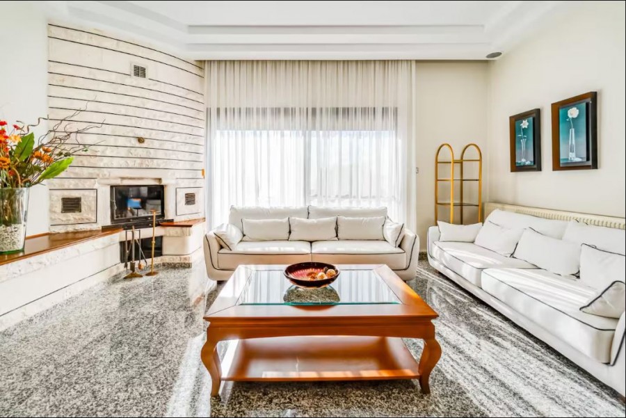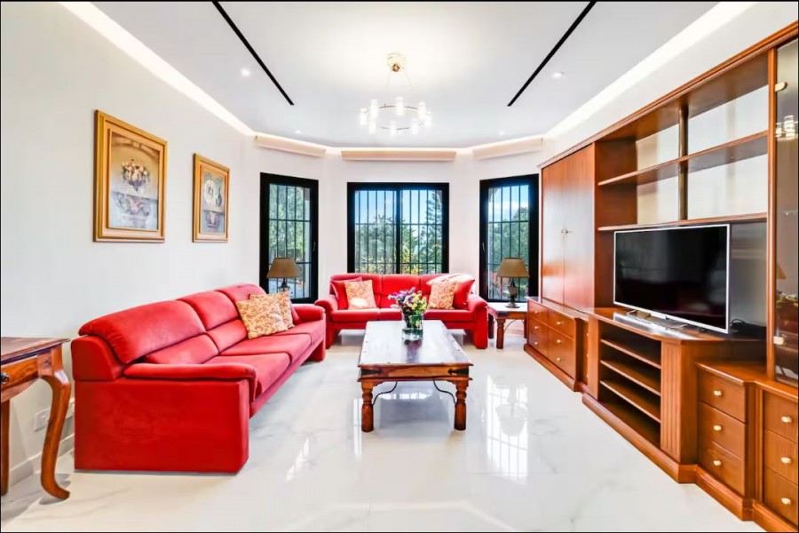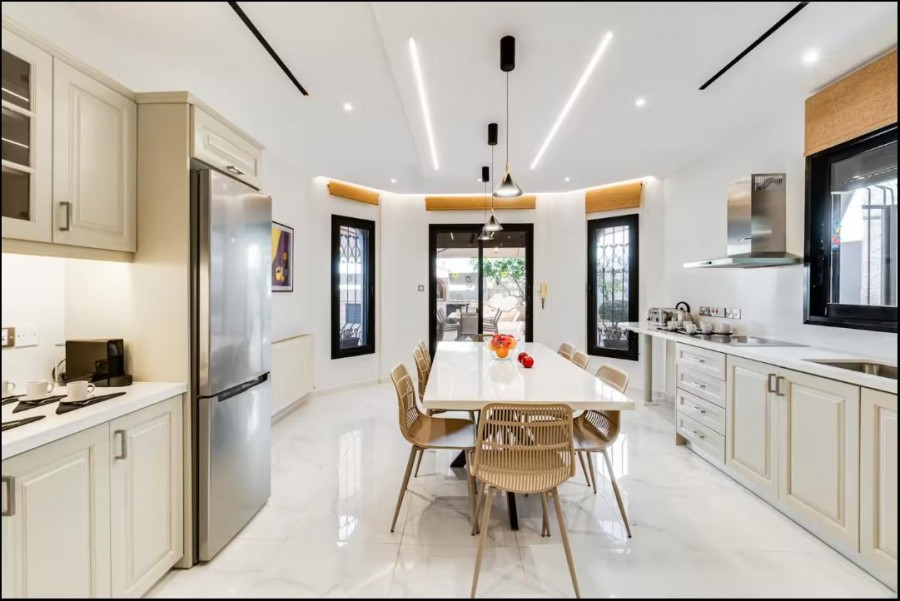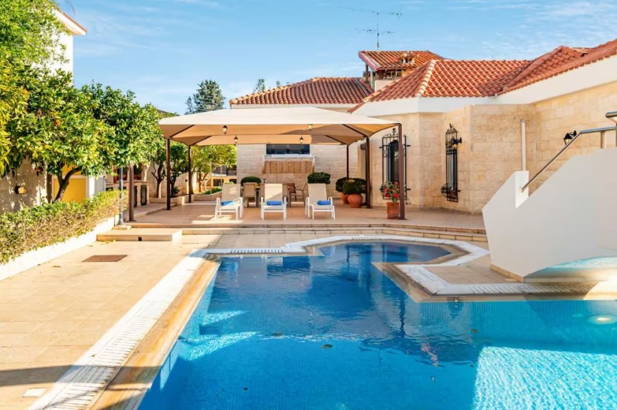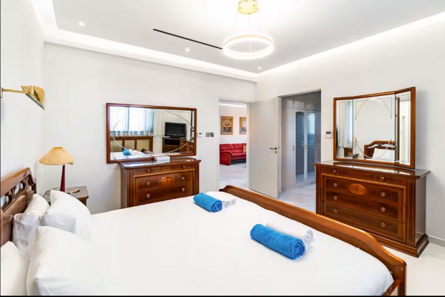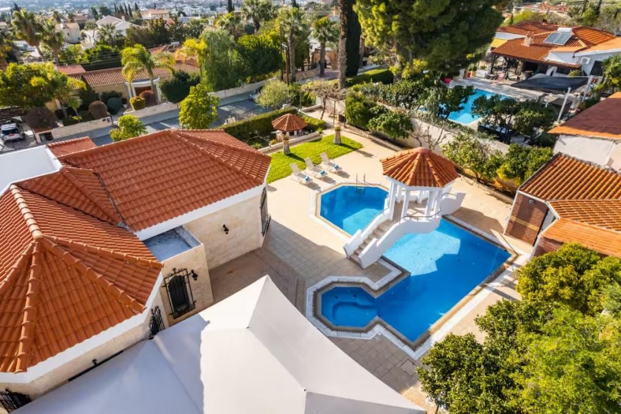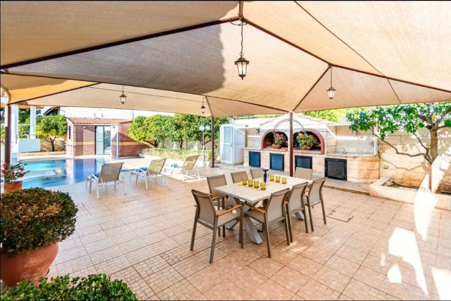 Данная вилла — это великолепно отреставрированное и исключительно просторное жильё с 5 спальнями, расположенное в очаровательной деревне Тала. Вилла сочетает в себе комфорт и элегантность, предлагая идеальные условия для отдыха. В наличии пять кондиционируемых спален: главная спальня с кроватью queen-size и ванной комнатой, вторая спальня с кроватью king-size, двуспальным диваном-кроватью и собственной ванной, третья спальня с двуспальной кроватью, а также две дополнительные спальни с раздельными кроватями.В доме четыре полноценных ванных комнаты с душевыми, а также дополнительный гостевой туалет — вилла с лёгкостью размещает большие семьи или группы гостей.Три уютные гостиные зоны предлагают достаточно места для отдыха. В основной гостиной — четыре мягких дивана и большой обеденный стол, идеально подходящий для совместных посиделок. Полностью оборудованная кухня обеспечивает всё необходимое для самостоятельного приготовления еды.Снаружи вилла расположена на великолепном участке с частным открытым бассейном, ухоженным садом, зоной для барбекю и уличной обеденной зоной — всё для наслаждения средиземноморским климатом. Крытая парковка вмещает до четырёх автомобилей. С территории виллы открываются живописные виды на море и горы.Вилла удобно расположена: всего в трёх минутах езды — разнообразные рестораны, а также в пешей доступности находится муниципальный парк Талы. Данная вилла — это идеальное сочетание уединённости и удобства, обеспечивающее незабываемое пребывание.