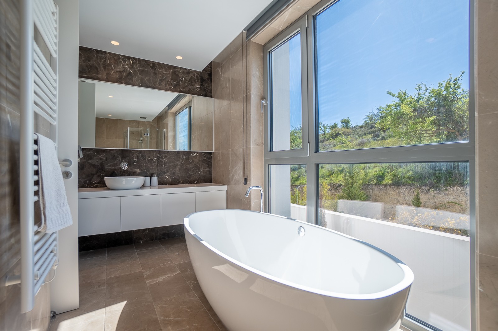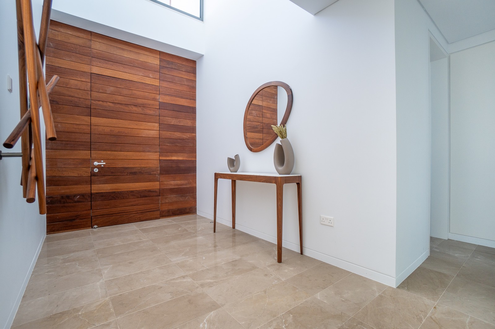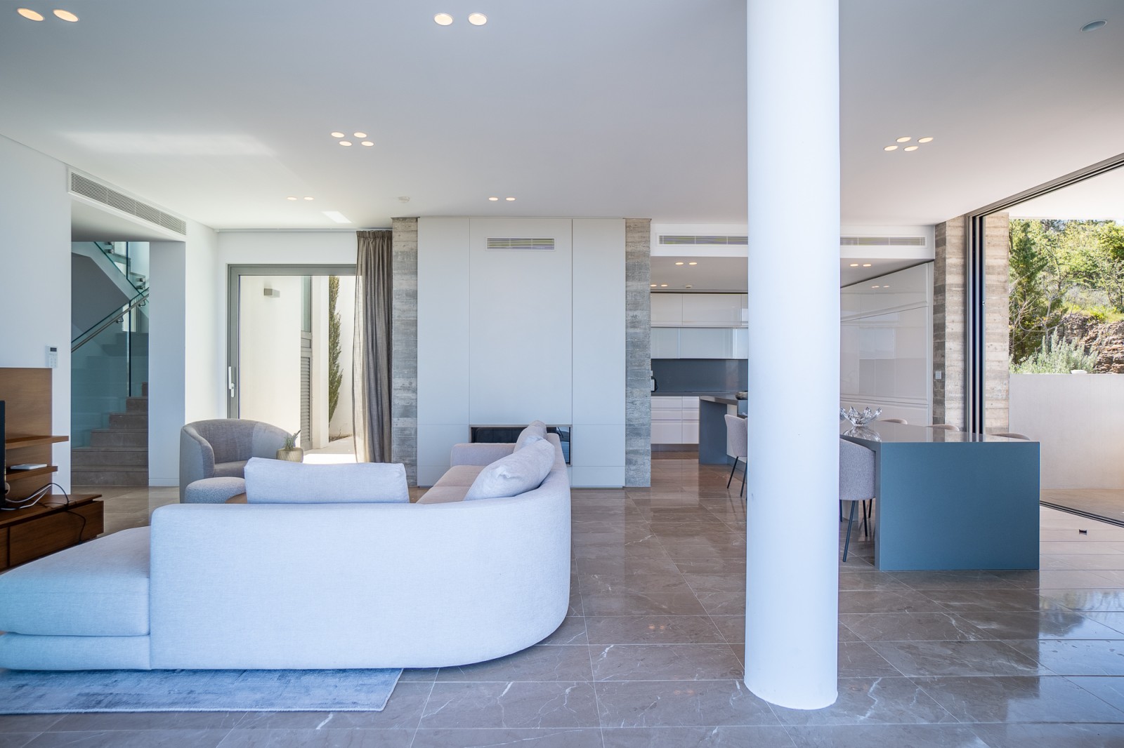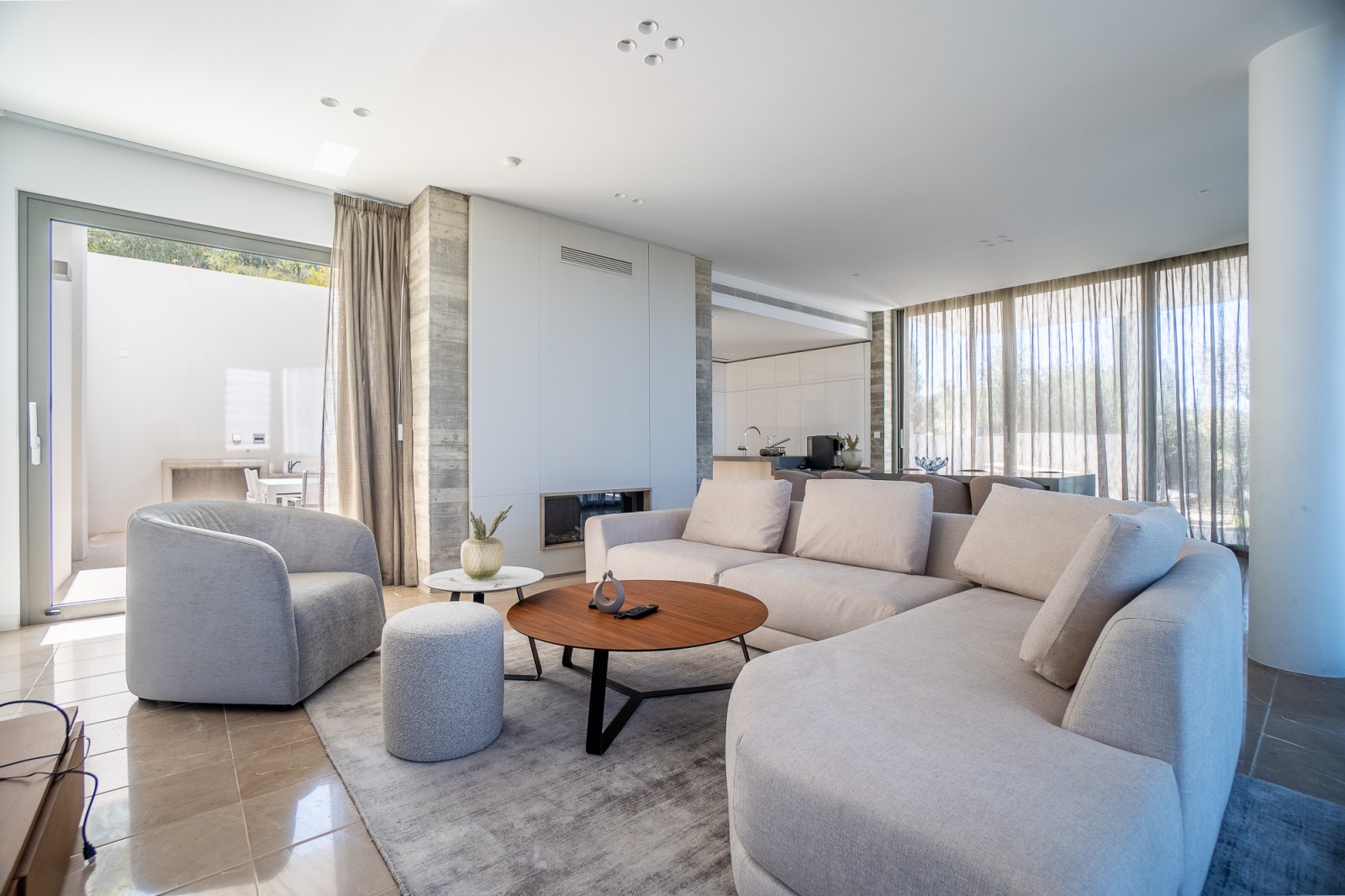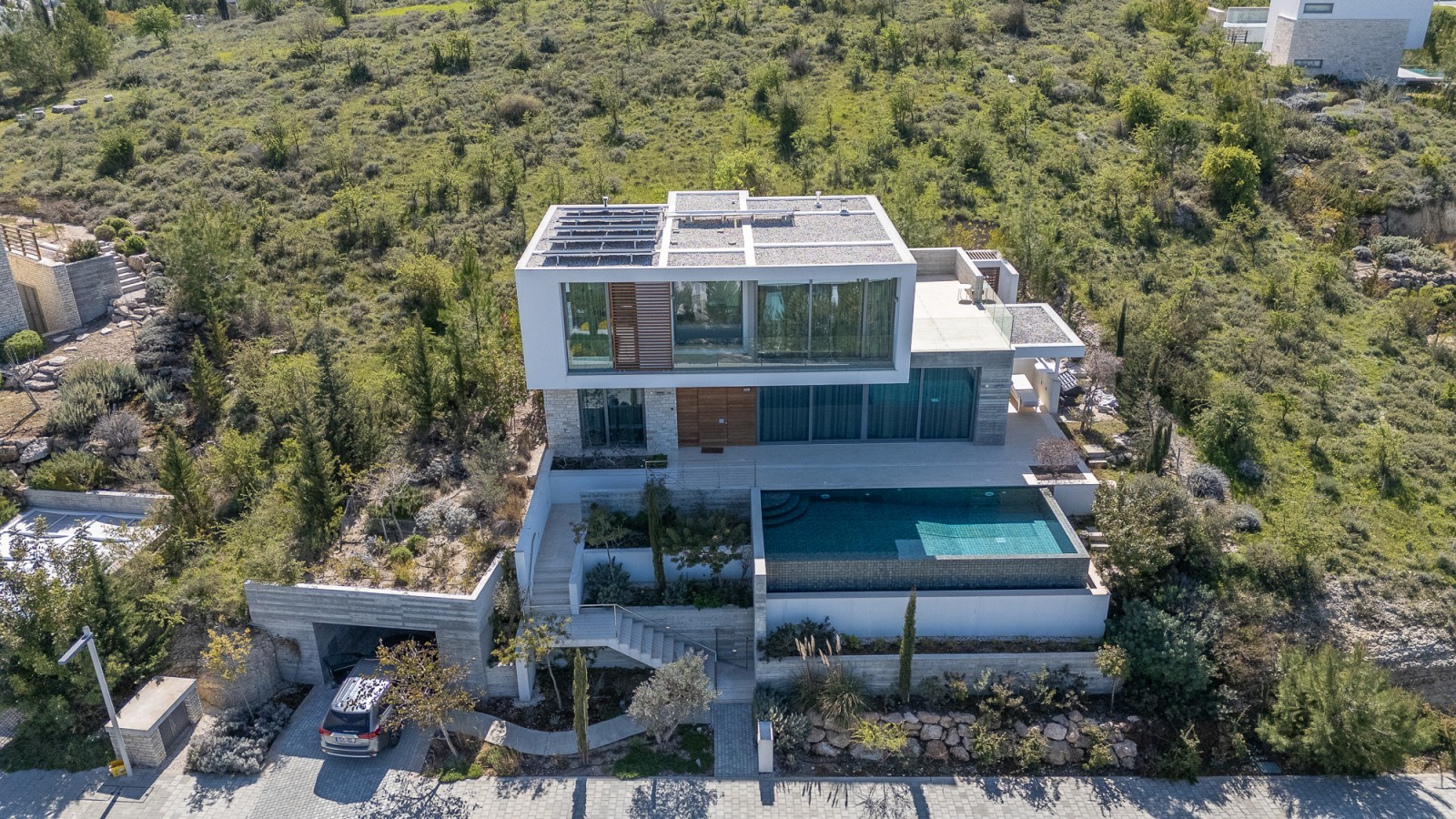 A stylish contemporary villa with three bedrooms combines exceptional comfort with thoughtful design. The architecture harmoniously blends modern style, high-quality finishes, and functional, well-planned living spaces. The property features a striking infinity pool that seamlessly integrates with the surrounding landscape. Covered parking, an advanced smart home system, comprehensive security, and an energy-efficient VRV air-conditioning system ensure convenience, safety, and sustainability. Inside, the villa offers a fully equipped modern kitchen with premium appliances, elegant bathrooms with heated towel rails, a separate laundry room, and a gas fireplace that adds warmth and sophistication to the living area. Clever storage solutions throughout the home provide practicality and organization. Floor-to-ceiling sliding doors open onto a spacious private garden, creating a smooth transition between indoor and outdoor living while enhancing the sense of space, privacy, and tranquility. This villa is perfect for comfortable family life as well as stylish entertaining.
