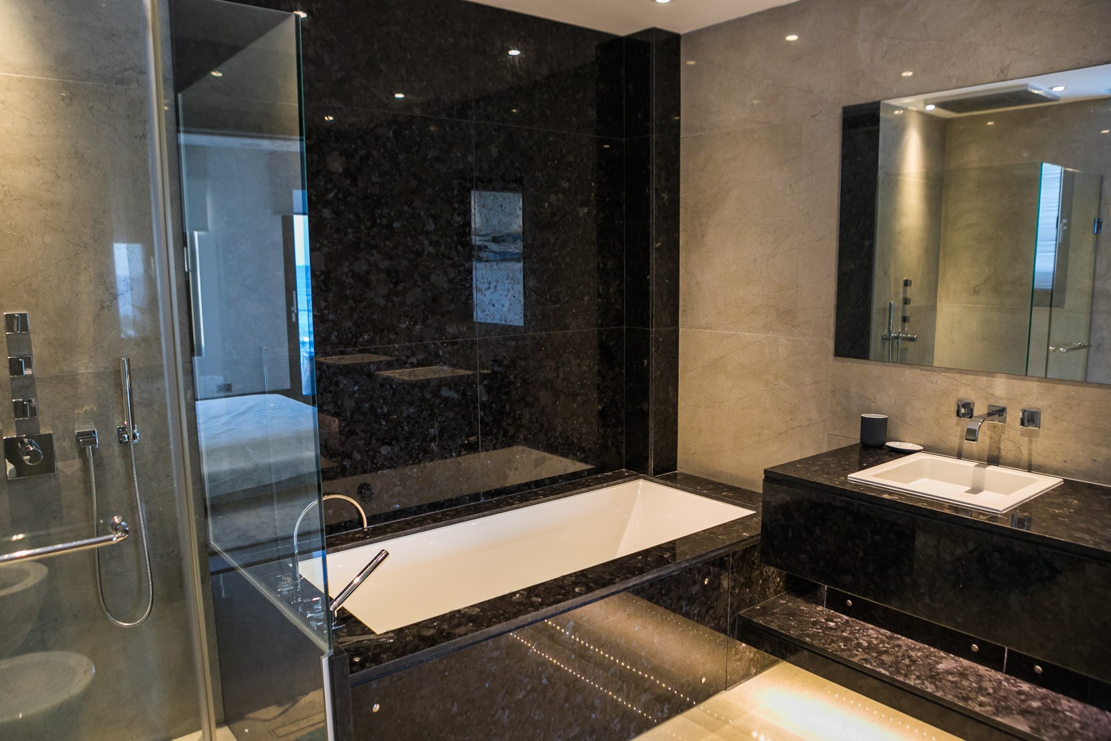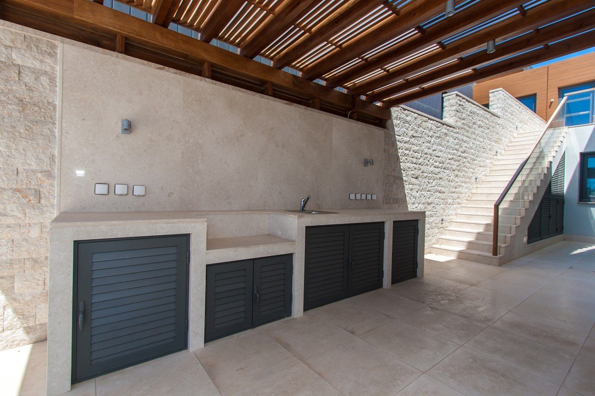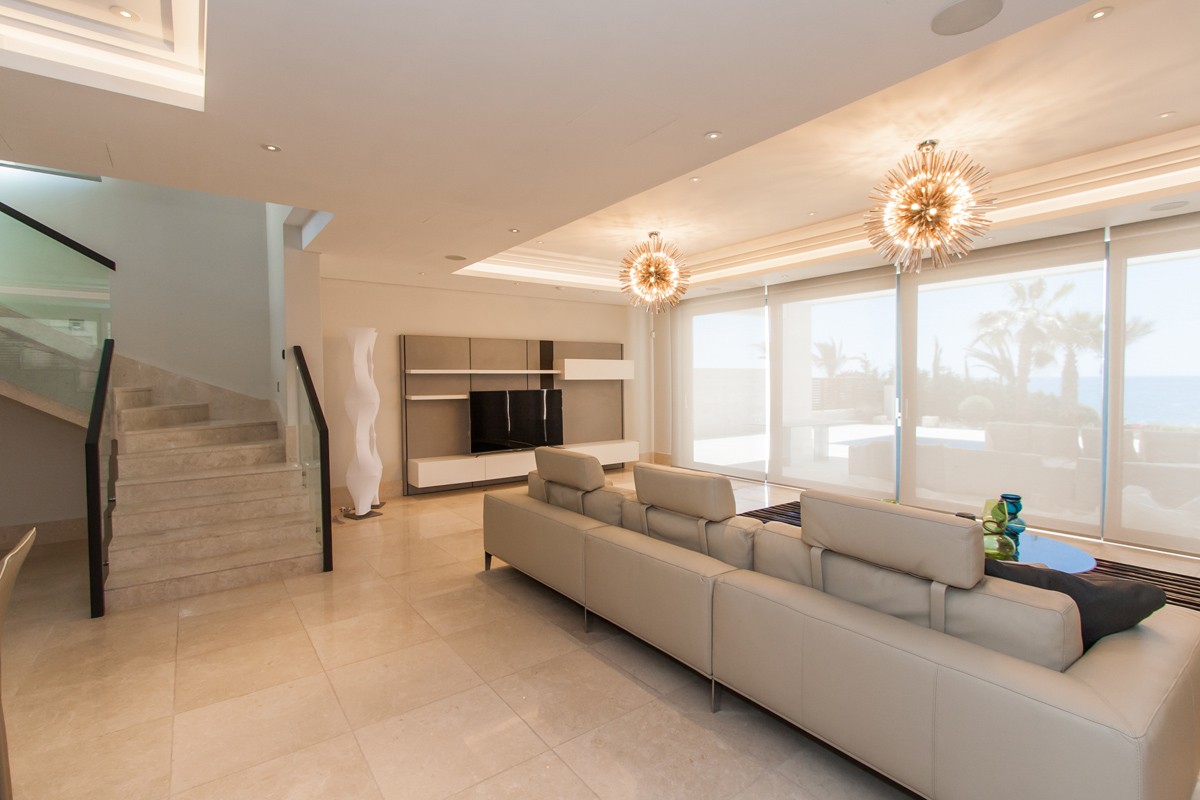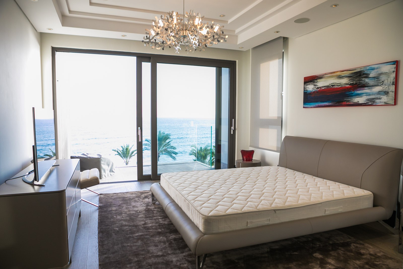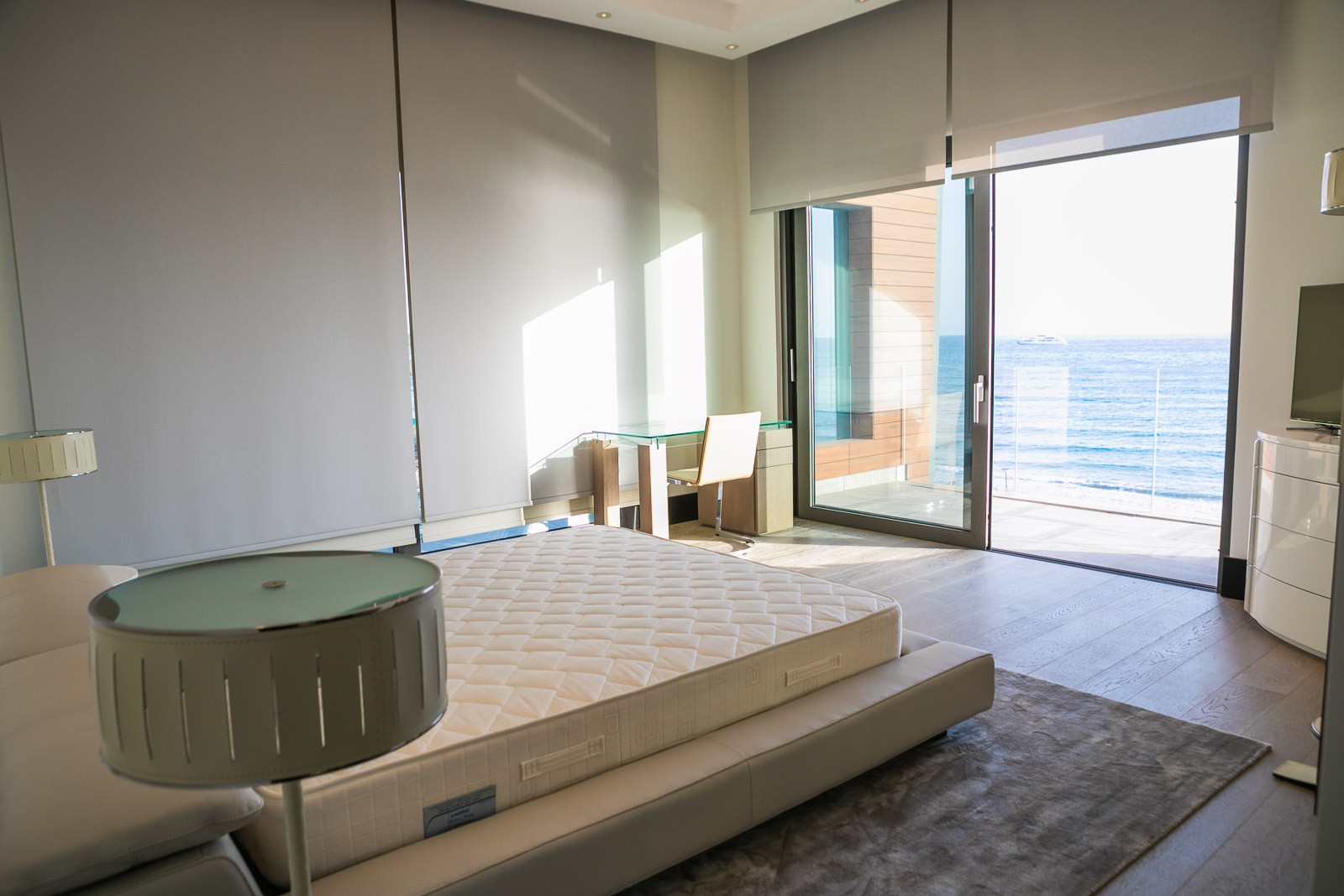 Вилла включает в себя 5 спален (3 спальни на первом этаже и 2 — на нижнем уровне) и предлагает обилие пространства для отдыха и приёма гостей прямо напротив лазурных вод Средиземного моря.