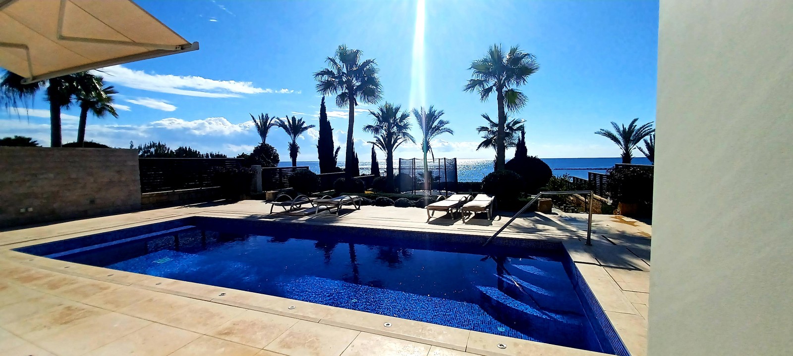 Роскошная вилла на первой линии в престижном районе Айос Тихонас. Здесь роскошь сочетается с современностью, создавая атмосферу комфорта и уюта на берегу моря Лимассола.