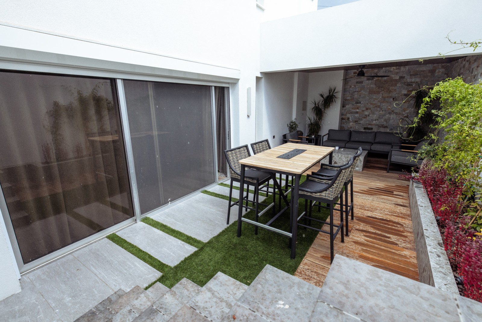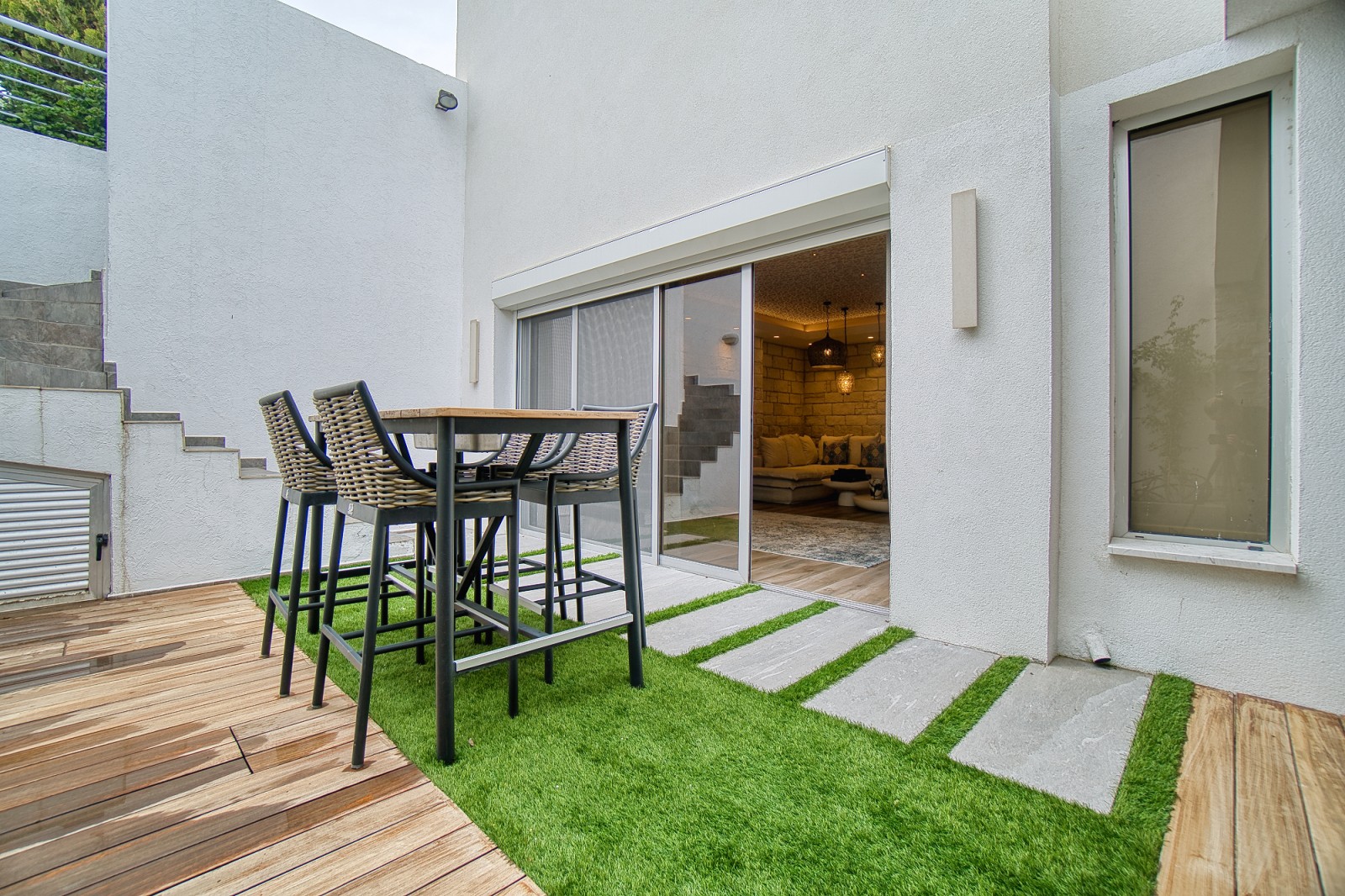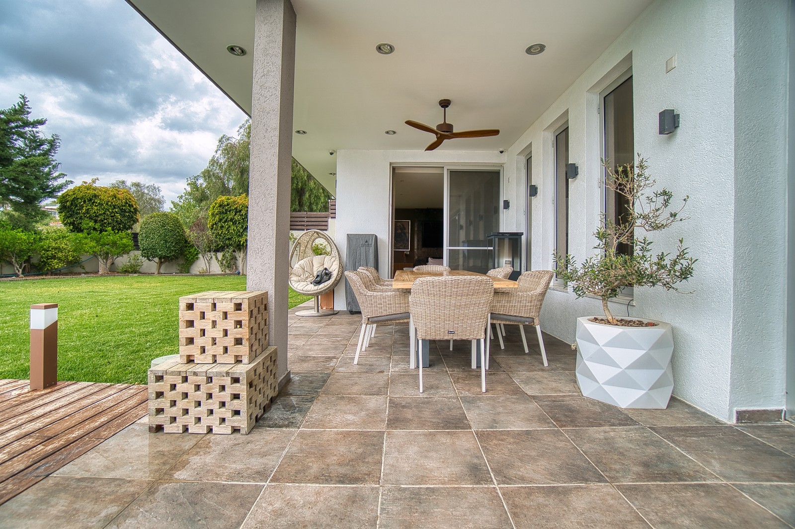 В подвале находятся просторное помещение, кинотеатр и хаммам, а также два складских помещения, туалет с душем и выход в отдельный двор с крытой зоной отдыха. Предусмотрена возможность установки джакузи, что добавляет нотку роскоши и утонченности.