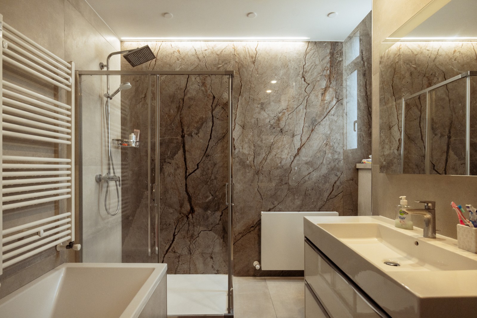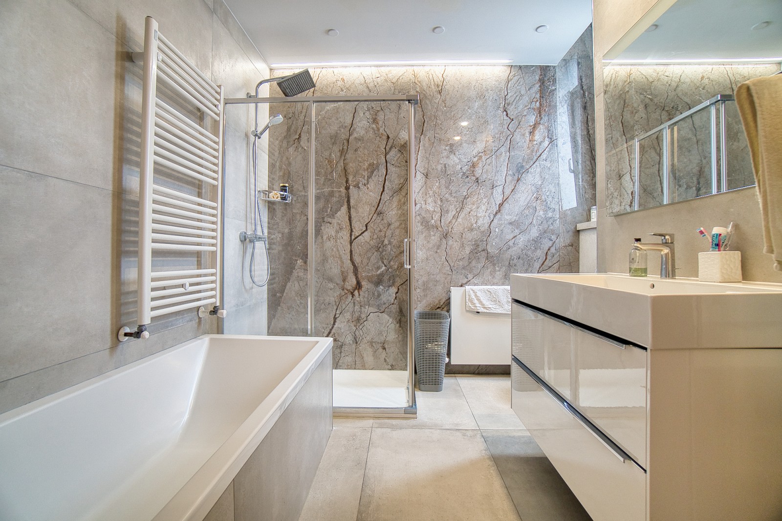 Вилла оснащена центральным отоплением, солнечными панелями и системой кондиционирования VRV, что гарантирует комфорт в любое время года. Особой изюминкой является турецкая баня-хаммам, обеспечивающая расслабление и восстановление сил. Кроме того, собственная кинотеатр с премиальной звуковой системой и акустической обработкой обещает непревзойденный опыт развлечений.