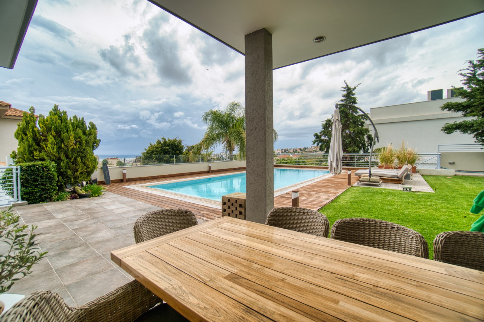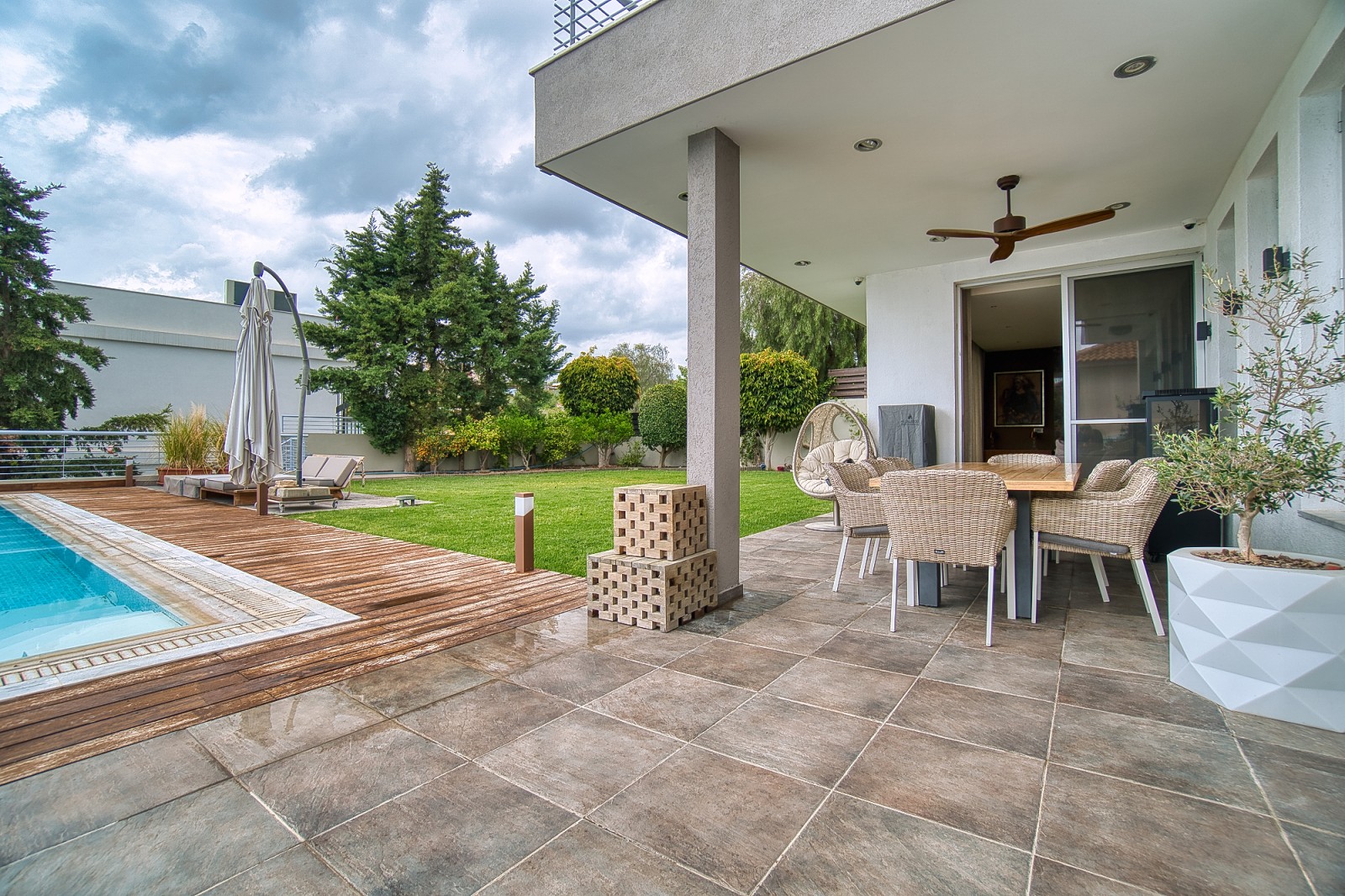 Интерьер виллы украшен стильной современной мебелью, которая может быть предметом переговоров при покупке, а кухонная техника входит в комплект, повышая удобство и уровень жизни в этом выдающемся доме. Эта очень стильная вилла с большим бассейном — воплощение роскошной жизни в престижном районе Айос Афанасиос Лимассола.