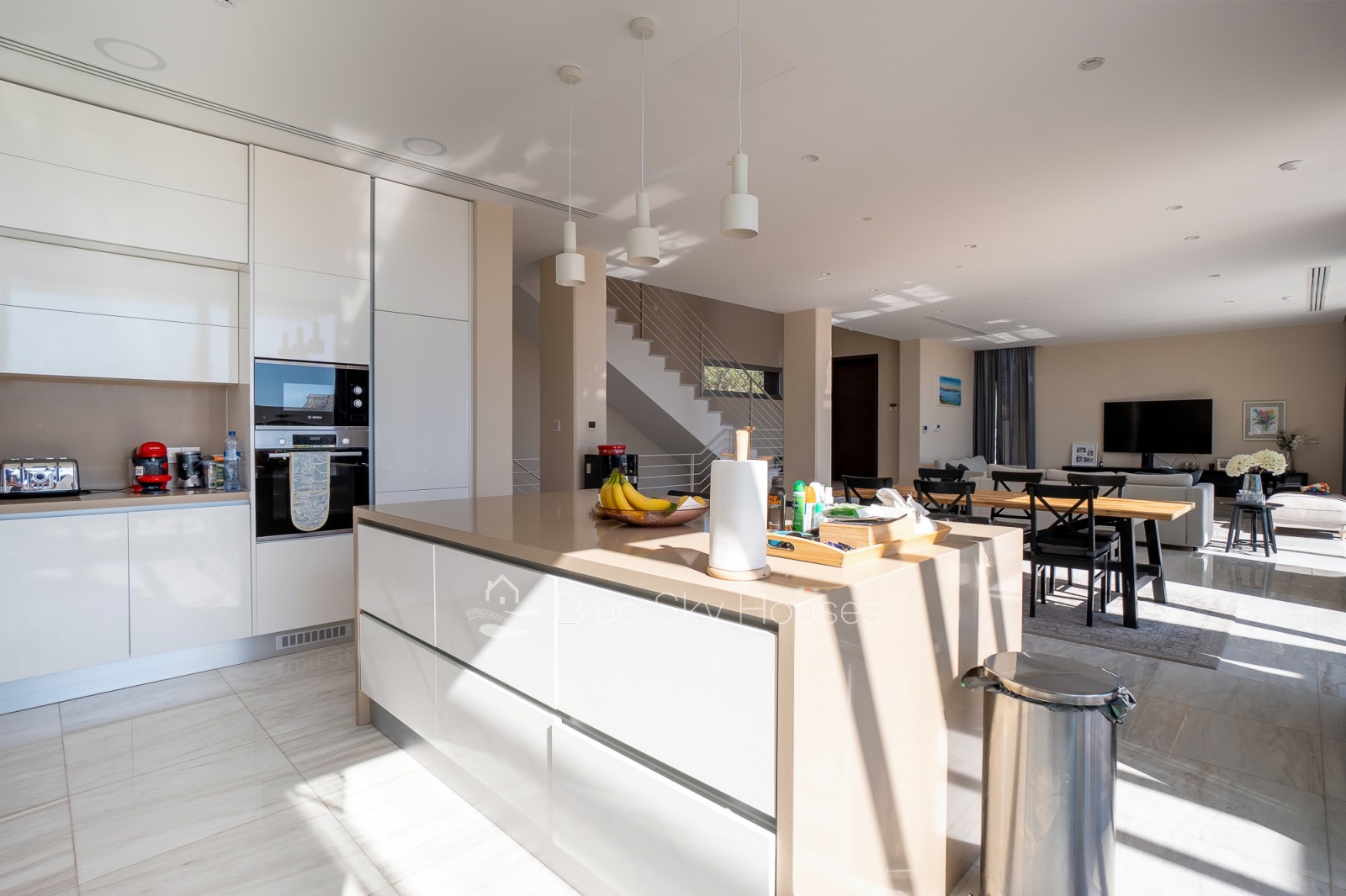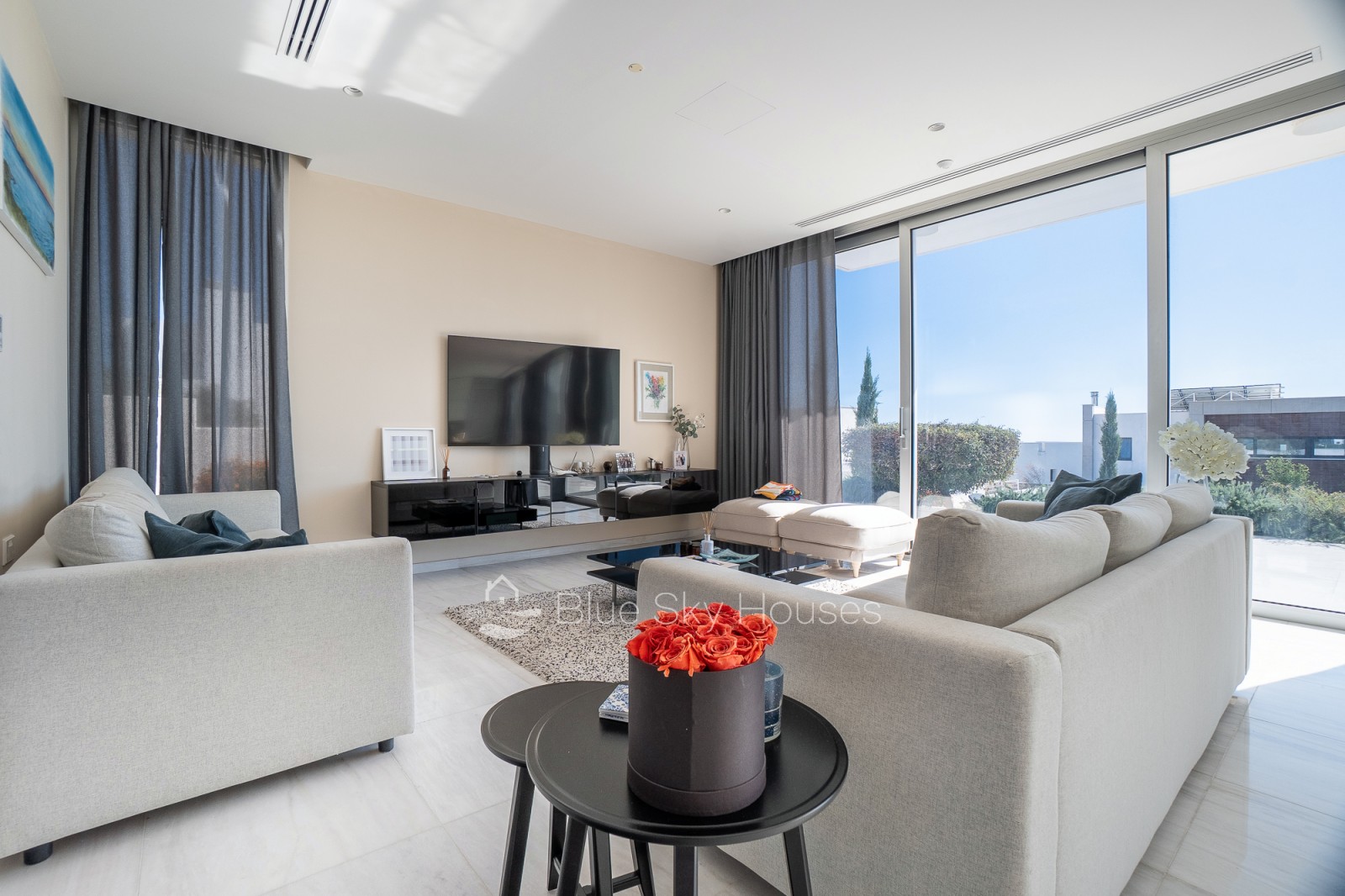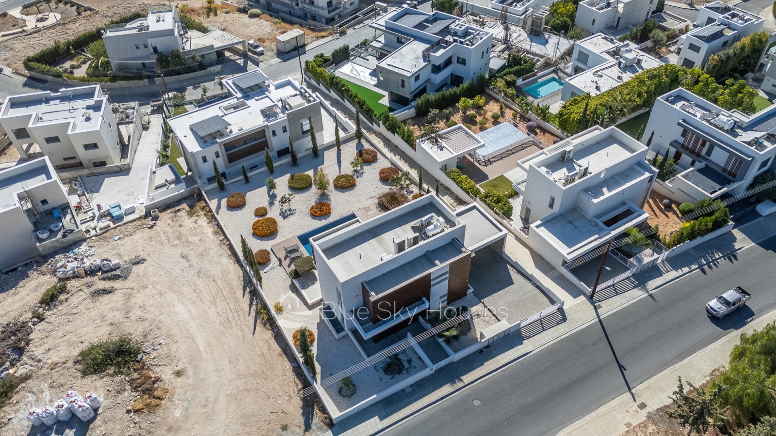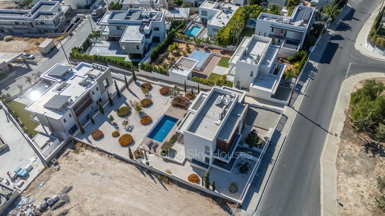 Эта потрясающая вилла полностью завершена и готова к заселению. Она построена из материалов высочайшего качества и выполнена в современном стиле. В ней просторные жилые зоны с элегантными керамическими полами, мраморная лестница и паркет в спальнях (по желанию). Большие алюминиевые окна с двойными стеклопакетами наполняют дом естественным светом, а двери из массива дерева и встроенные шкафы добавляют тепла и стиля.