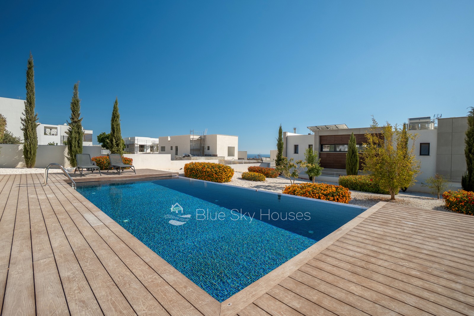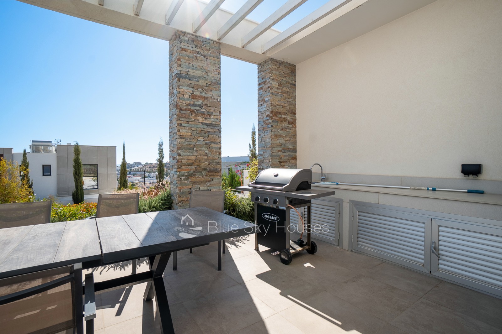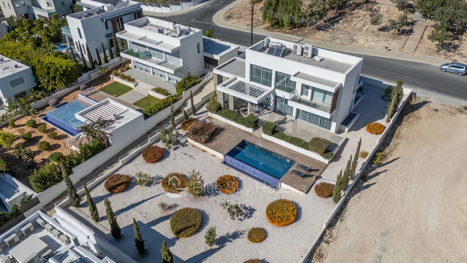 На открытом воздухе к вашим услугам собственный переливной бассейн с деревянной террасой, ландшафтный сад, крытый/открытый навес для машины и зона барбекю с раковиной и коммуникациями — идеальное место для отдыха. Установлены ограждения и ворота, участок подключен ко всем городским коммуникациям.