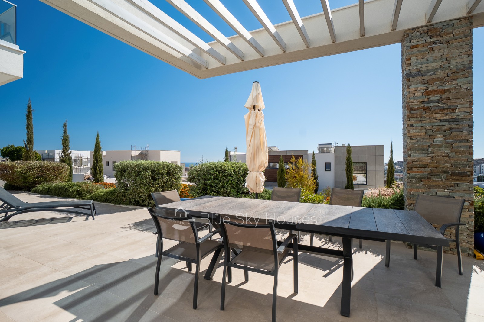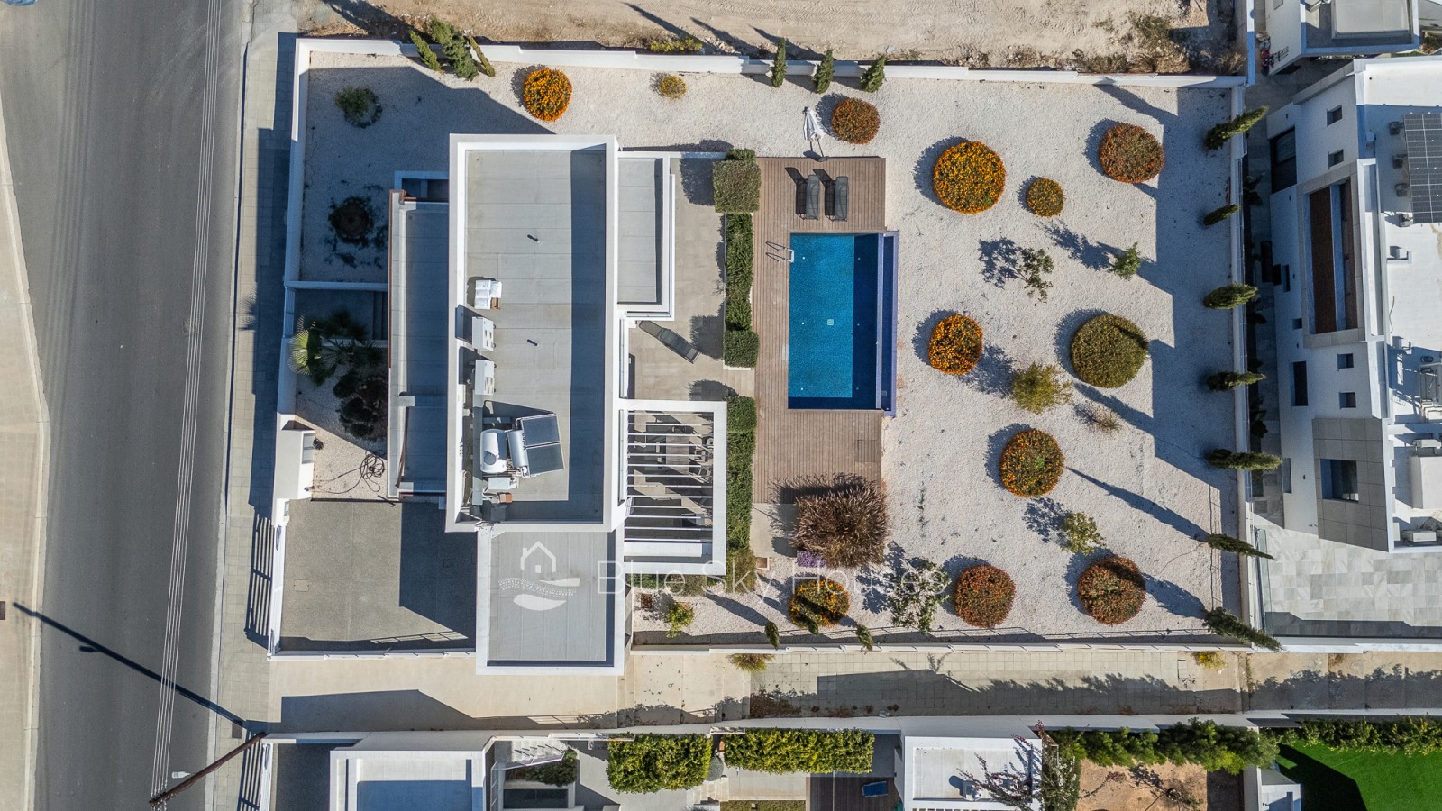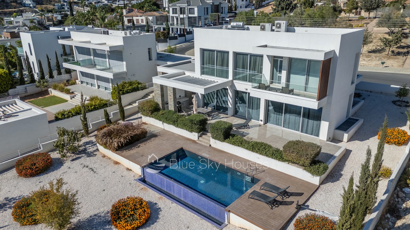 На открытом воздухе к вашим услугам собственный переливной бассейн с деревянной террасой, ландшафтный сад, крытый/открытый навес для машины и зона барбекю с раковиной и коммуникациями — идеальное место для отдыха. Установлены ограждения и ворота, участок подключен ко всем городским коммуникациям.