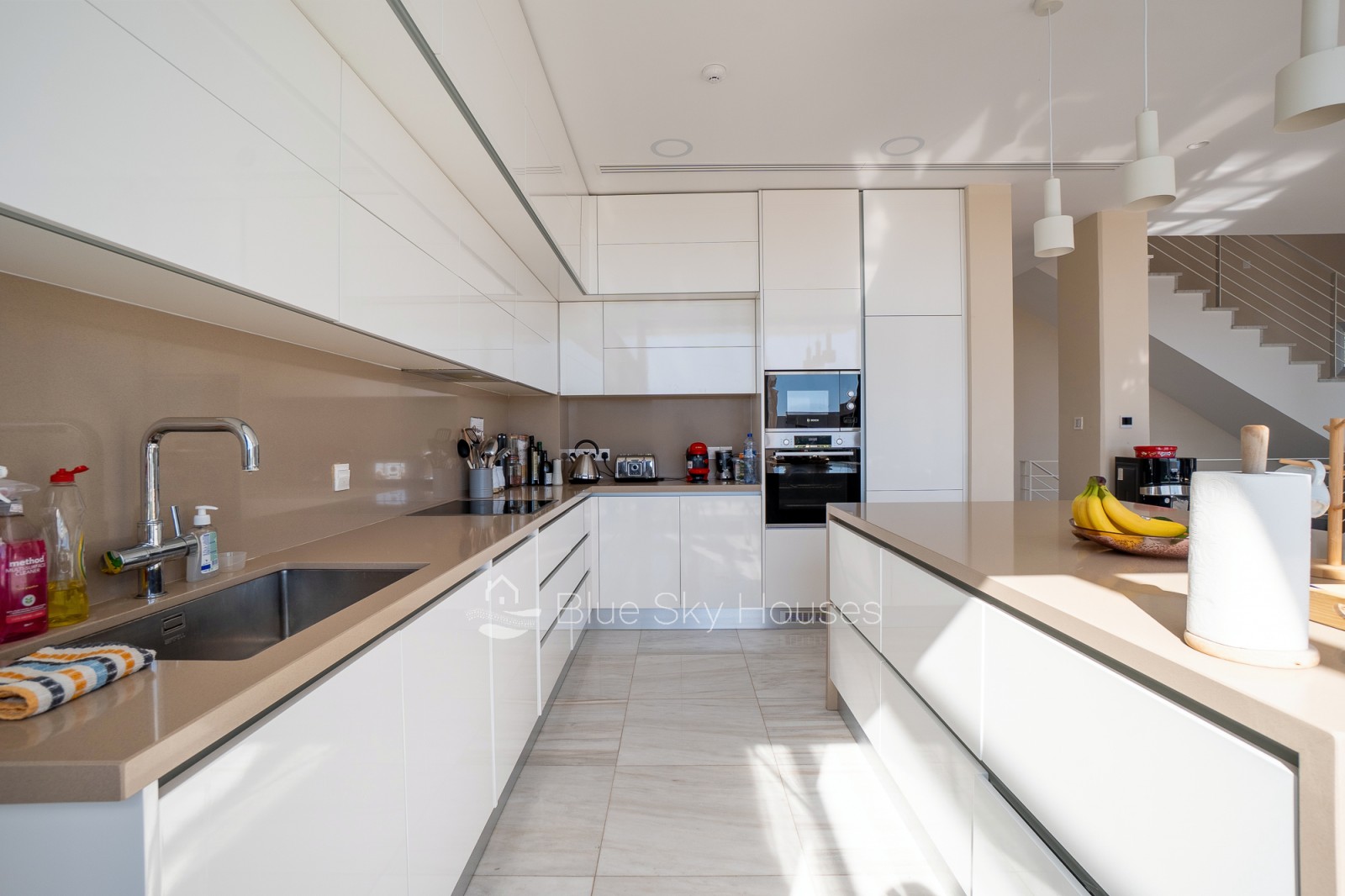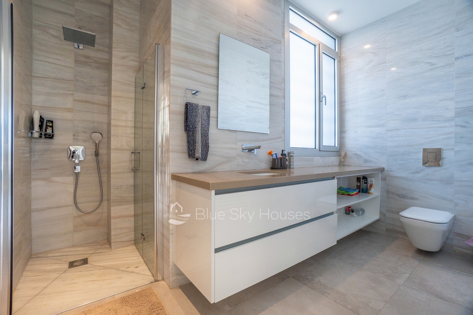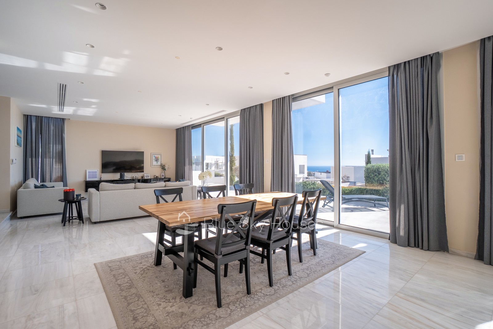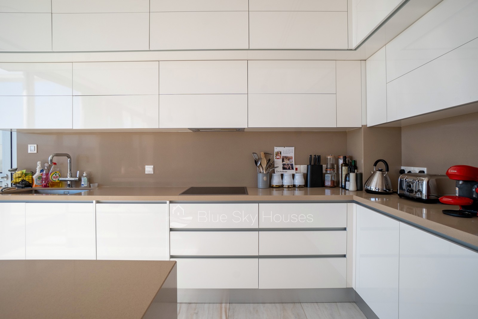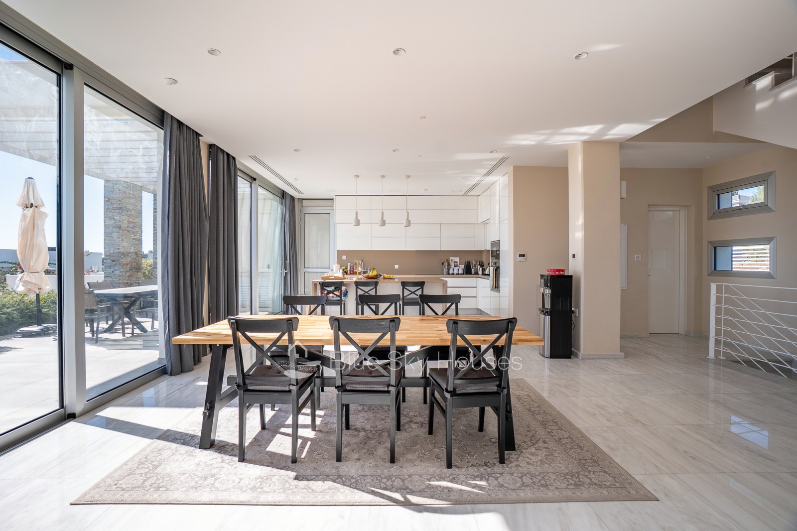 Кухня полностью оборудована шкафами, гранитными столешницами и местами для установки бытовой техники. Ванные комнаты отделаны качественной керамикой, стильными тумбами и сантехникой премиум-класса. Вилла оснащена полной тепло- и водоизоляцией, солнечным водонагревателем, системой подачи воды под давлением, кондиционированием во всех основных помещениях и полноценной системой охранной сигнализации.