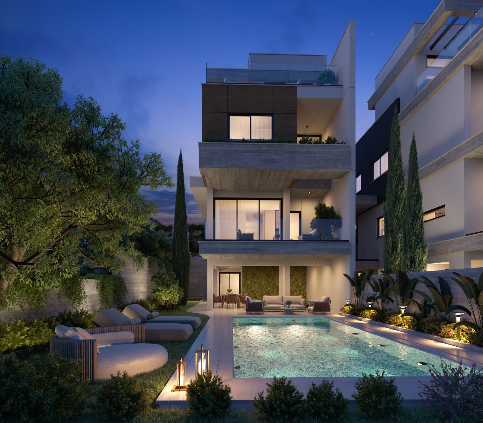 Бутик жилой проект расположен в спокойном и престижном районе Айос Афанасиос и включает две современные частные жилые виллы, спроектированные для комфортной современной жизни.