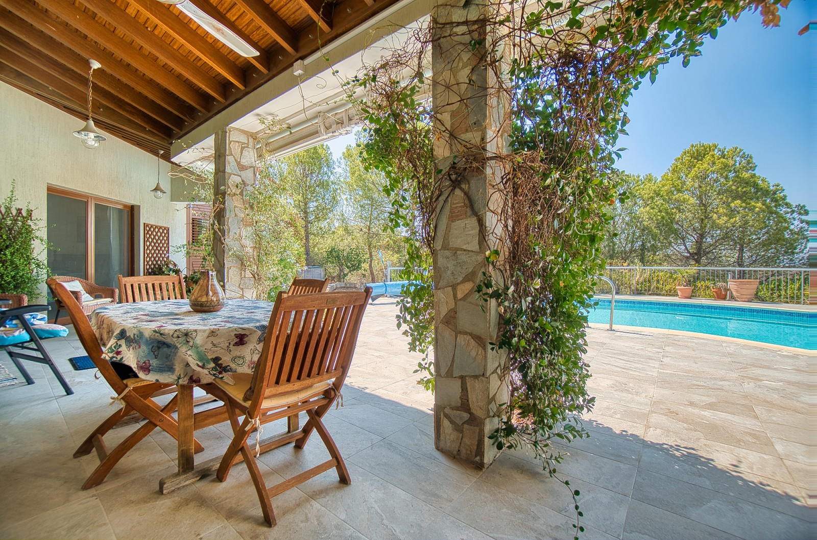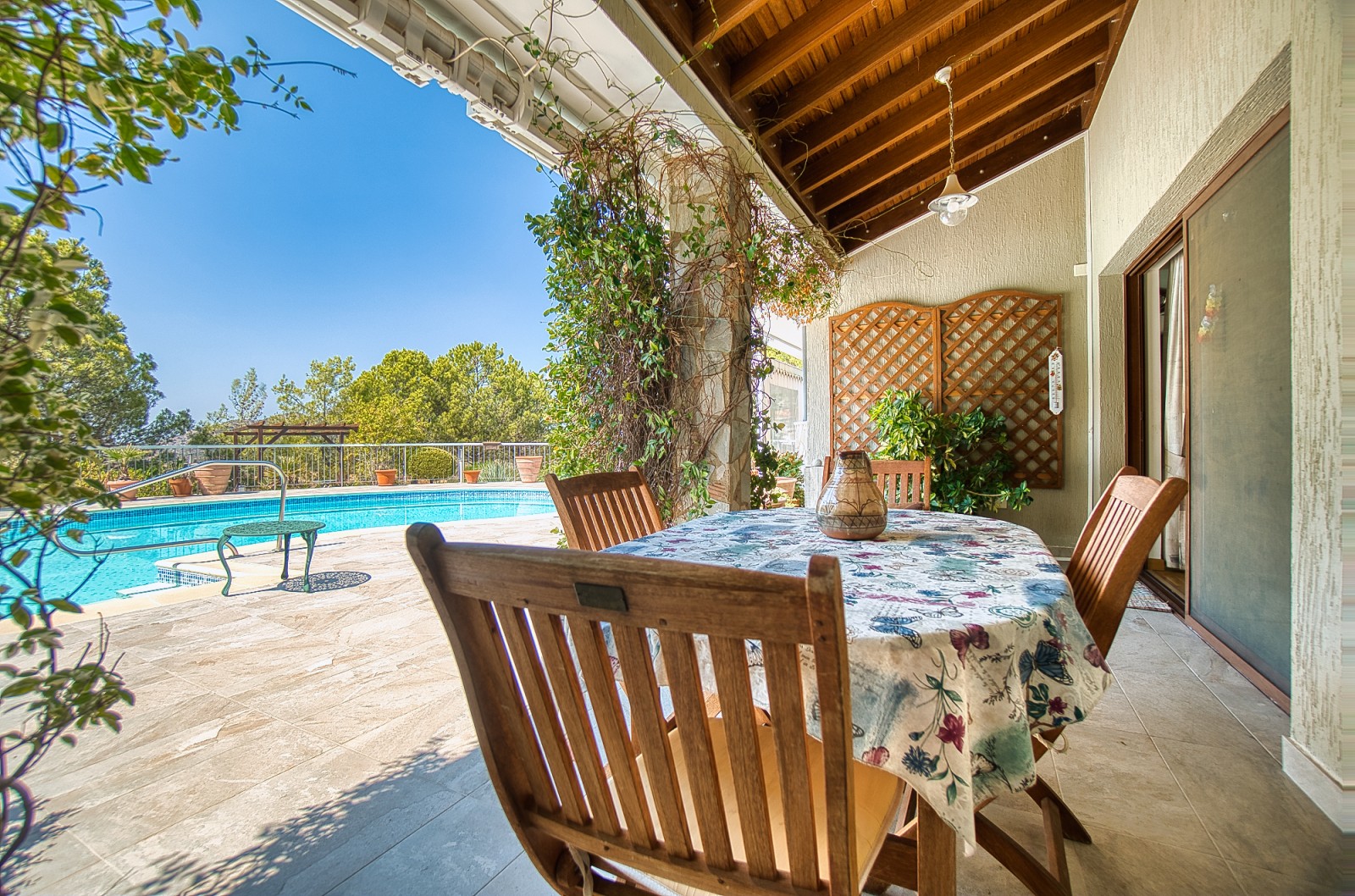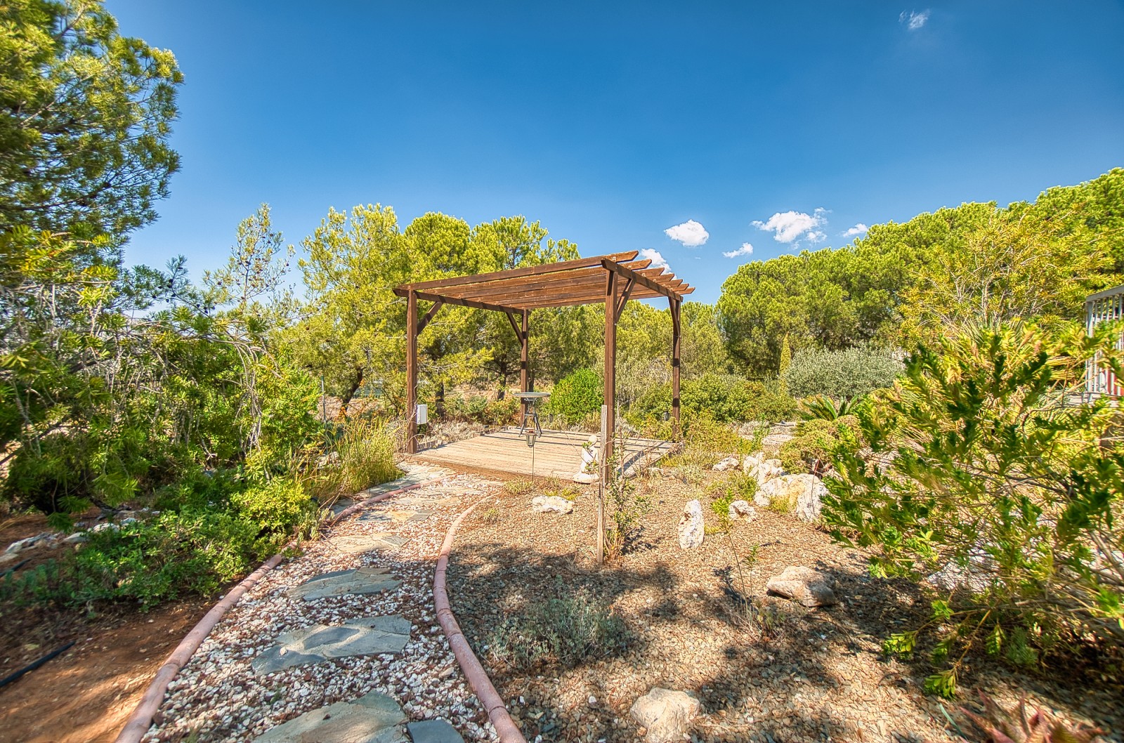 Красивый отдельно стоящий семейный дом расположен на тихих и живописных холмах Кало-Хорио, в идиллическом уединении, всего в 25 минутах езды от города Лимассол. В этом доме располагаются 3 просторные спальни, отдельная студия для персонала и две хорошо оборудованные ванные комнаты, в одной из которых установлено джакузи. Площадь дома составляет 232 м2, он расположен на обширном участке площадью 1439 м2. Бассейн с подогревом и термальным покрытием обеспечивает круглогодичное пользование, а крытая парковка обеспечивает удобство и защиту для автомобилей. Внутри вы найдете уютный кабинет или игровую комнату, чердачное помещение для хранения вещей и дополнительную кладовую. Современные удобства включают в себя фотоэлектрическую систему, кондиционер, центральное отопление, потолочные вентиляторы, полы с подогревом и камин для проведения уютных вечеров. Дом спроектирован с использованием высококачественных элементов, таких как окна с тройным остеклением с термической тонировкой и жалюзи, система смягчения воды, входная дверь из дуба и высокие потолки с деревянными балками. Деревянные полы придают теплоту и элегантность всему дому. Отдельная оборудованная кухня является одновременно функциональной и стильной, со встроенными шкафами, обеспечивающими достаточно места для хранения. Открытая площадка представляет собой настоящий оазис с площадкой для барбекю, красивым ландшафтным садом со зрелыми деревьями и фруктовыми деревьями, в том числе абрикосовыми и лимонными. Очаровательный пруд с рыбками, эффективная система орошения и беседка создают безмятежную атмосферу. Недвижимость находится в безупречном состоянии, что свидетельствует о тщательной заботе и внимании к деталям.