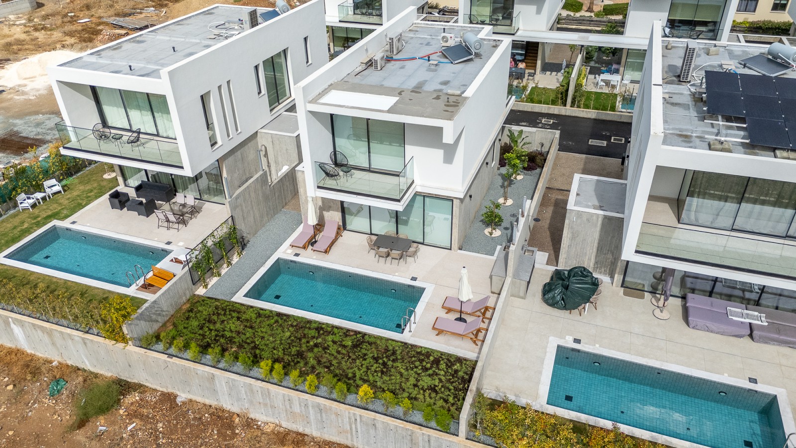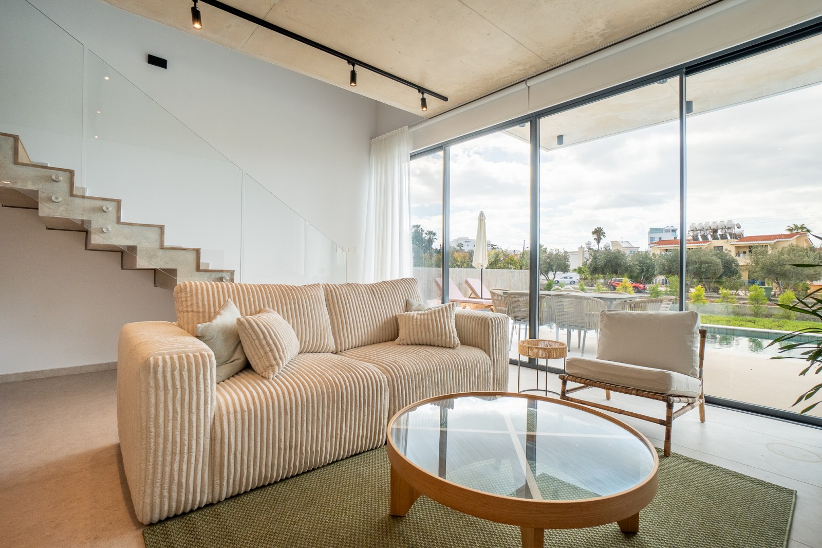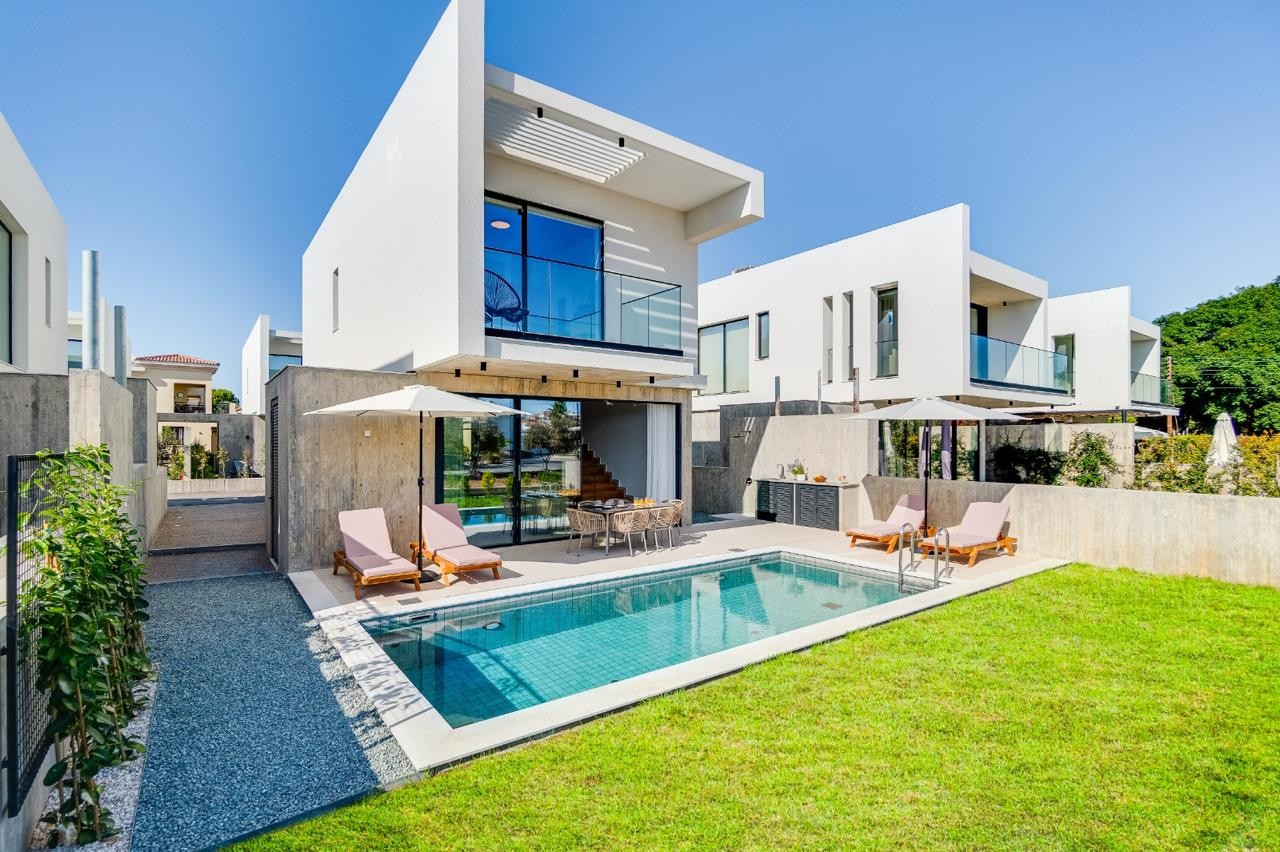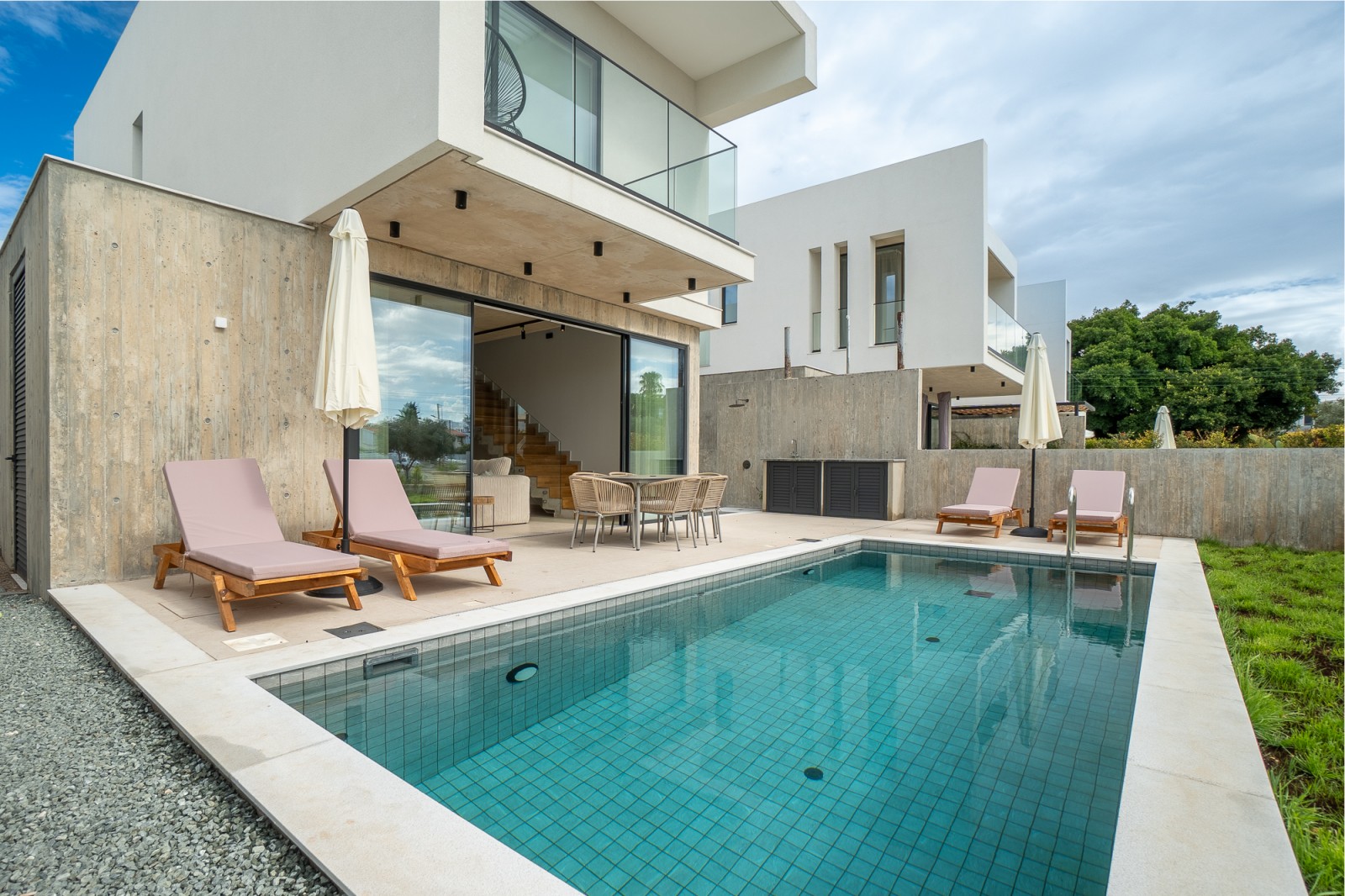 Снаружи вас ждут приватный бассейн, просторная солнечная терраса и встроенная зона для барбекю — идеальное место, чтобы наслаждаться солнечным климатом Кипра в полной приватности. Будь то отдых у бассейна, обед на свежем воздухе или приём гостей, каждая деталь продумана для лёгкой и комфортной средиземноморской жизни.