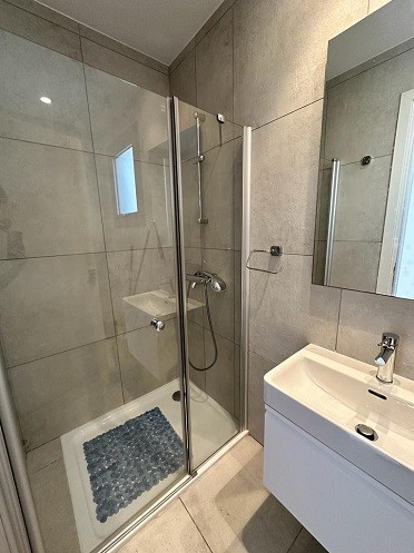 Данный полудом имеет просторные открытые зоны гостиной и столовой с отдельной большой оборудованной кухней. Гостиная ведет на полузакрытую веранду с выходом и видом на общий бассейн. Гостевой туалет расположен на уровне продажи. На верхнем этаже находятся 3 большие спальни, включая главную спальню с собственной ванной комнатой и одну семейную ванную комнату. Есть крытая частная парковка.