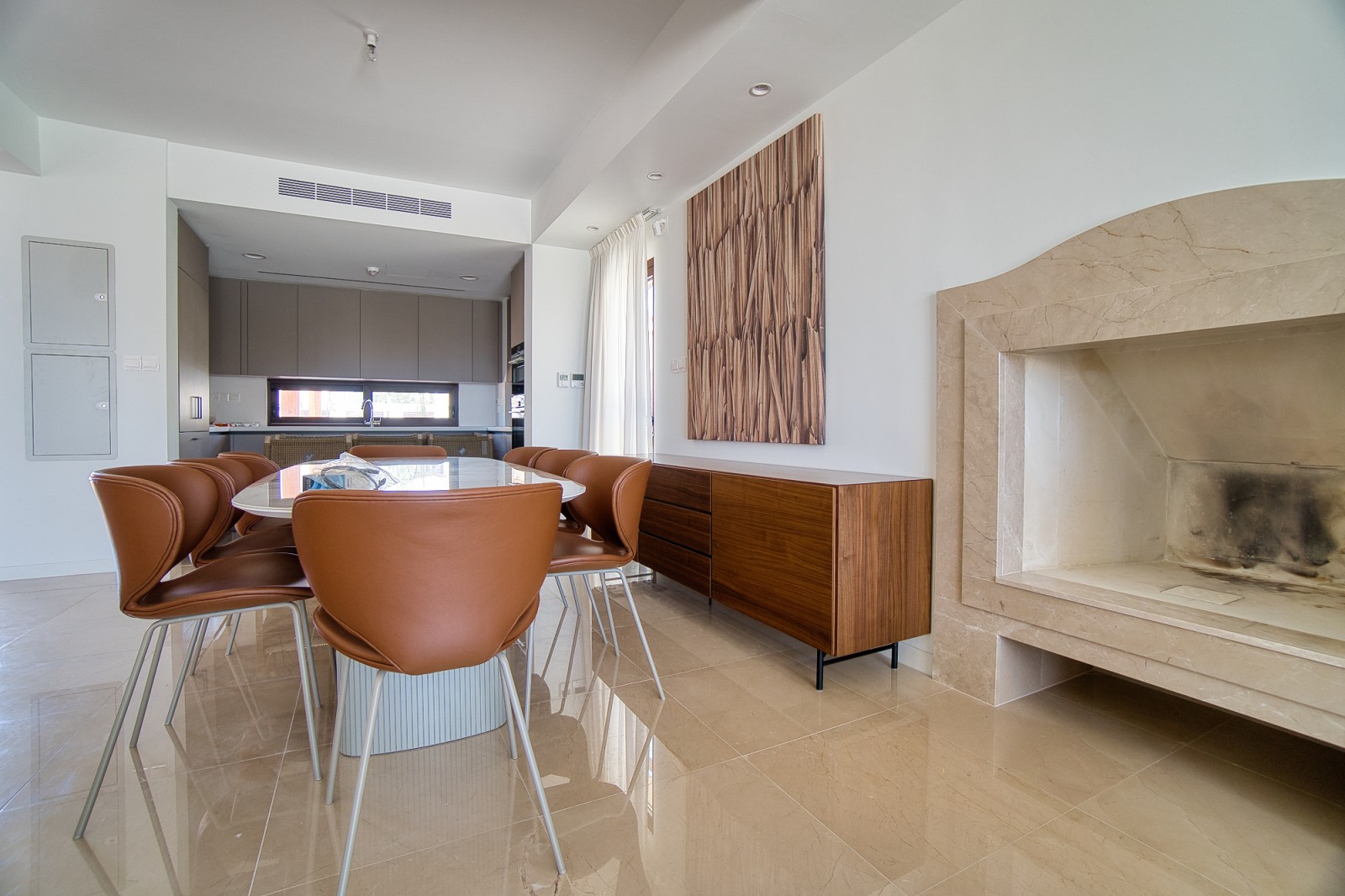 Элегантные раздвижные двери в гостиной ведут на просторную веранду, идеально подходящую для ужинов на свежем воздухе и приема гостей. Безупречно озелененный сад с цветами, кустарниками и деревьями дополняет частный инфинити-бассейн с возможностью подогрева.