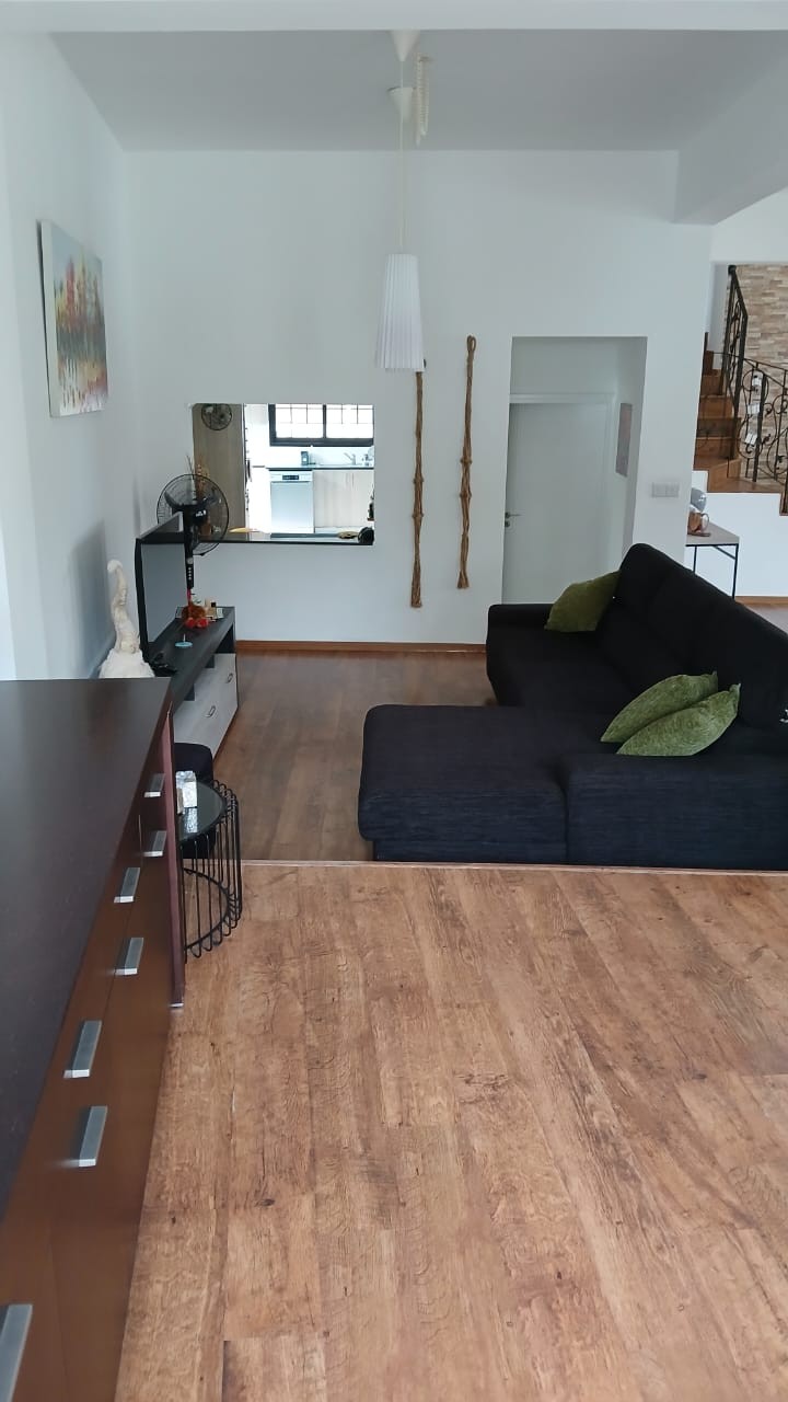 Дом находится в очень хорошем состоянии и предлагает практичную и комфортную планировку. На первом этаже расположена просторная гостиная с гостевым санузлом, а также отдельная кухня с примыкающим подсобным помещением или прачечной, что обеспечивает дополнительное место для хранения и функциональность.