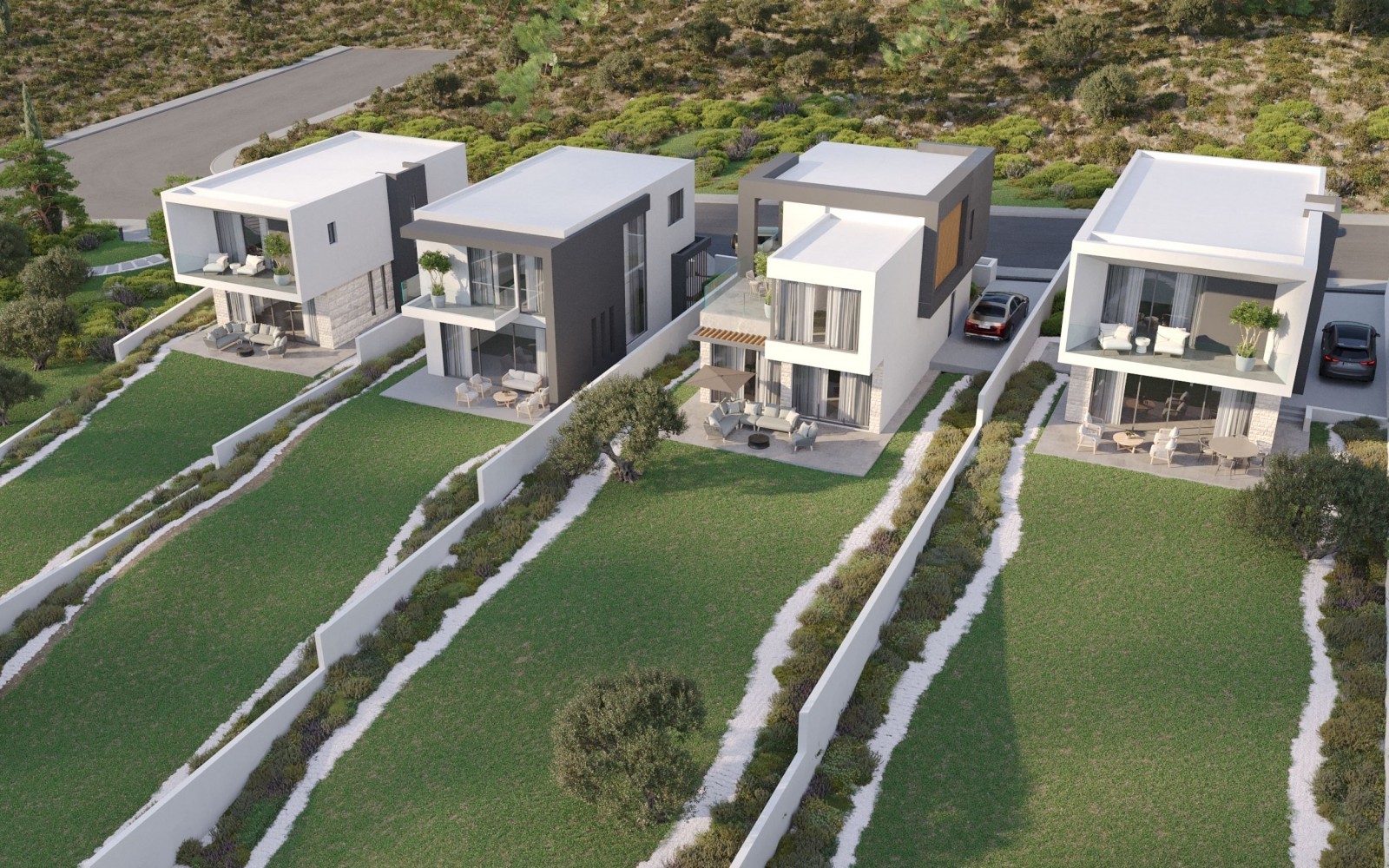 Комплекс из 17 двухэтажных домов включает в себя жилые помещения с 3 и 4 спальнями, каждое из которых имеет 4 ванные комнаты и расположена на больших участках площадью до 850 кв.метров. Виллы предлагают опциональные крыши-сады и бассейны с переливом, добавляя роскоши в спокойный пейзаж. Современный архитектурный подход гармонично интегрирует проект с природной средой, создавая просторные и функциональные внутренние пространства. Местоположение является исключительным, предлагая захватывающие виды на Пафос и Средиземное море из каждого дома. Центр деревни Месои находится всего в 2 минутах от комплекса, что обеспечивает максимальное удобство. Окунитесь в современный образ жизни, который гармонично сочетается с природной красотой Кипра, предлагая не только дом, но и эксклюзивное проживание с захватывающими видами и легким доступом к повседневным удобствам.