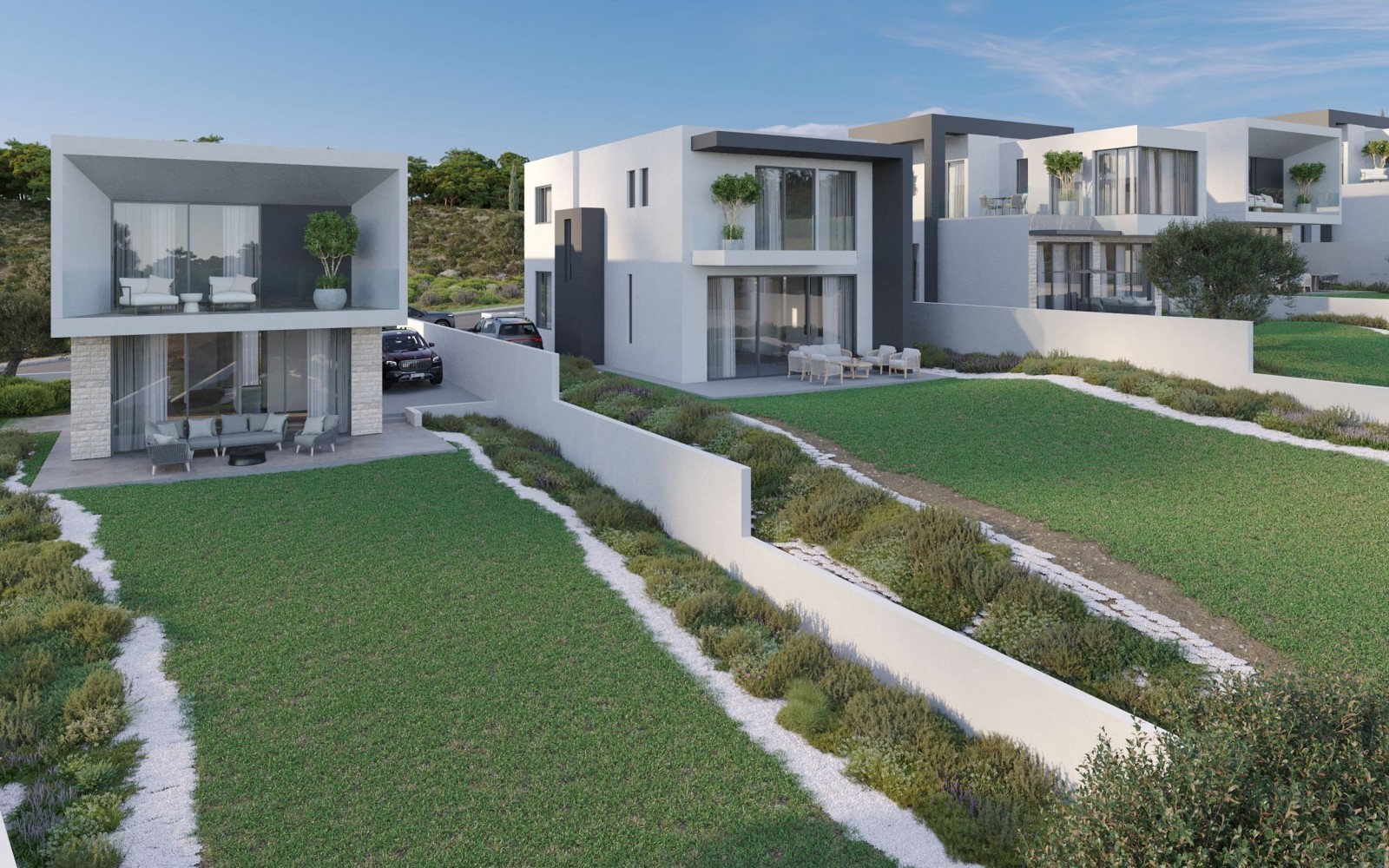Комплекс из 17 двухэтажных домов включает в себя жилые помещения с 3 и 4 спальнями, каждое из которых имеет 4 ванные комнаты и расположена на больших участках площадью до 850 кв.метров. Виллы предлагают опциональные крыши-сады и бассейны с переливом, добавляя роскоши в спокойный пейзаж. Современный архитектурный подход гармонично интегрирует проект с природной средой, создавая просторные и функциональные внутренние пространства. Местоположение является исключительным, предлагая захватывающие виды на Пафос и Средиземное море из каждого дома. Центр деревни Месои находится всего в 2 минутах от комплекса, что обеспечивает максимальное удобство. Окунитесь в современный образ жизни, который гармонично сочетается с природной красотой Кипра, предлагая не только дом, но и эксклюзивное проживание с захватывающими видами и легким доступом к повседневным удобствам.