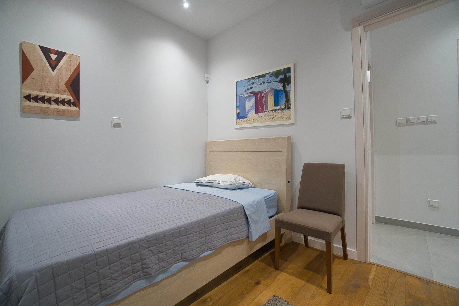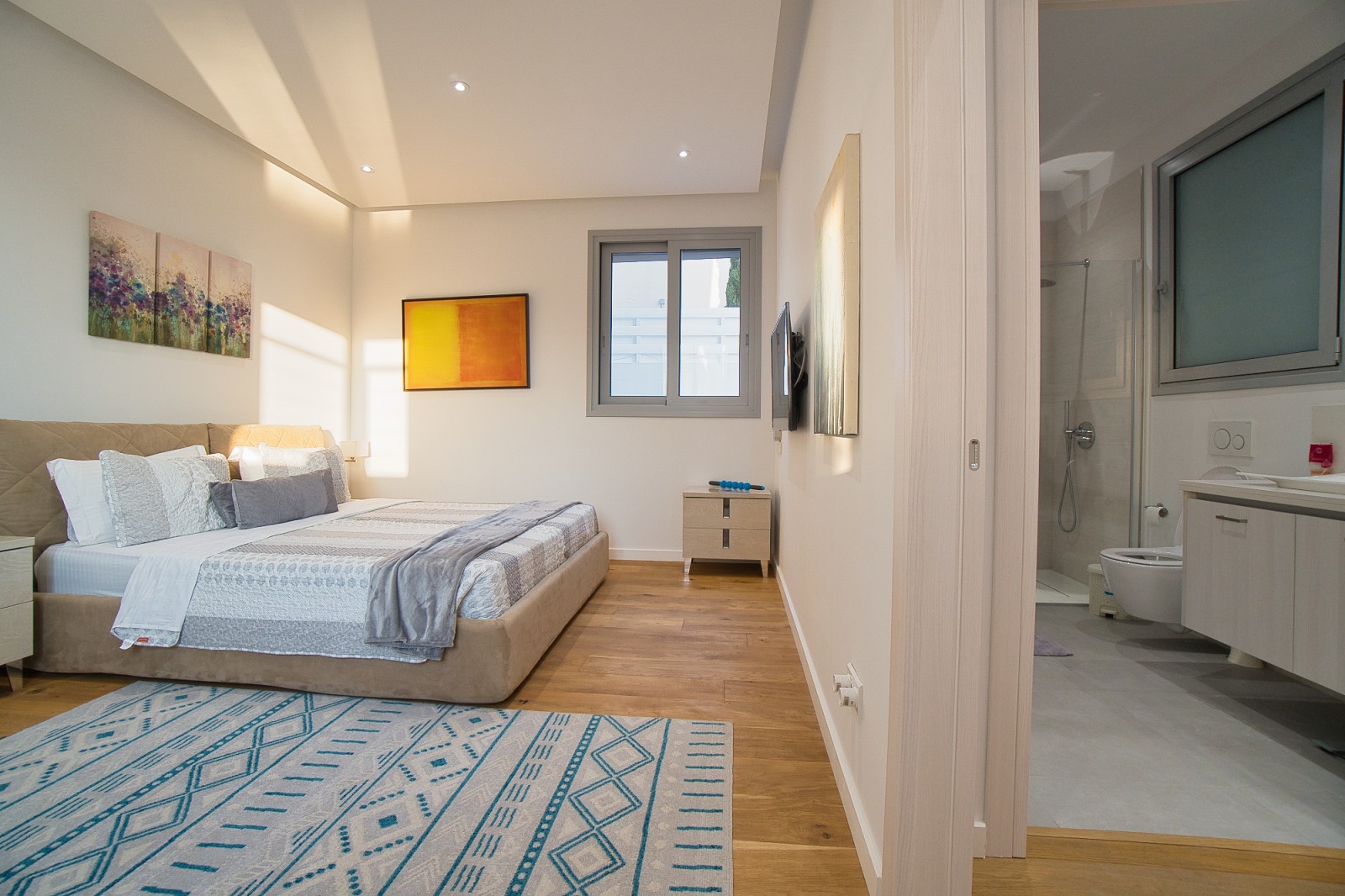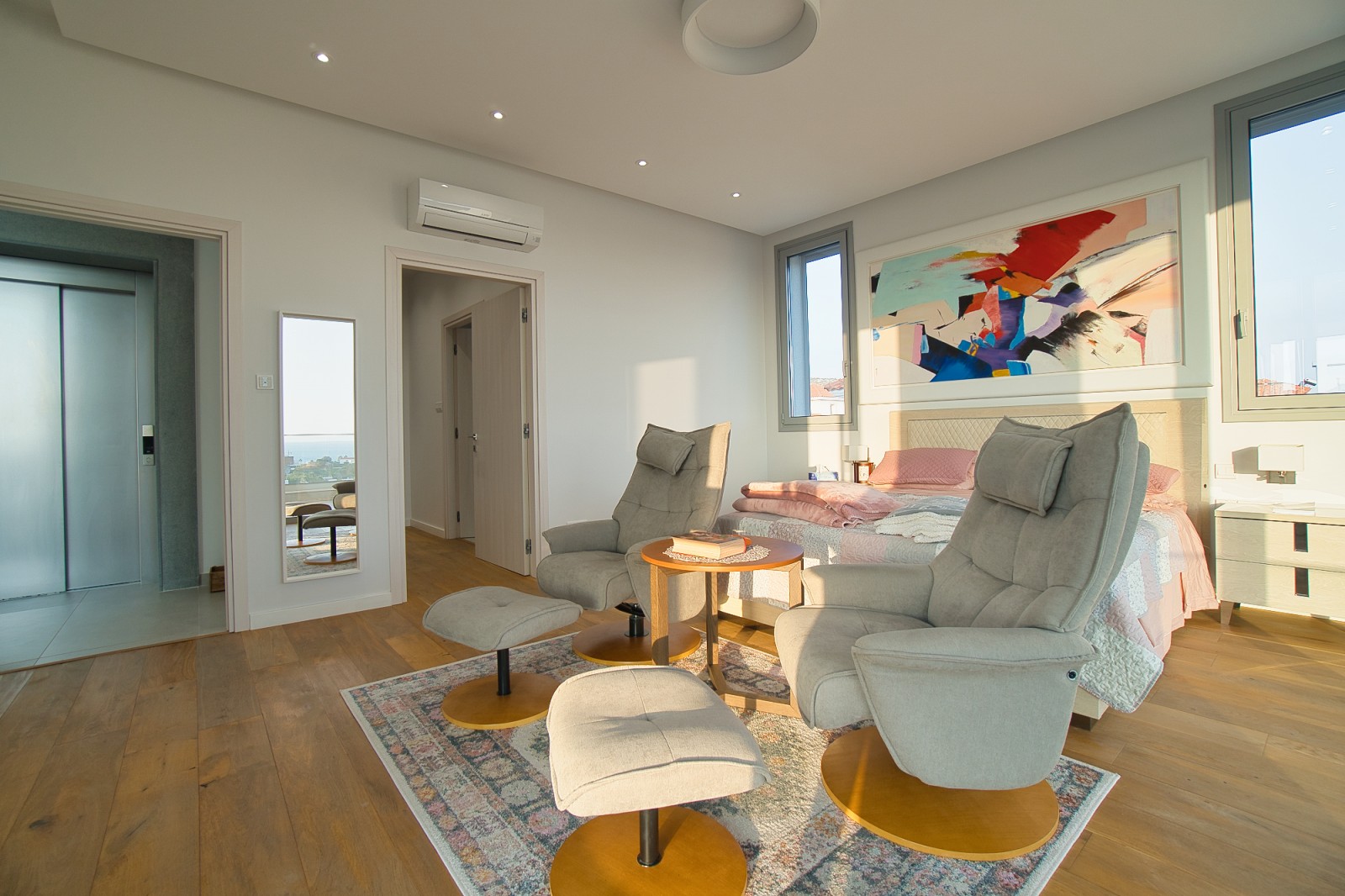 Верхний этаж — это оазис спокойствия и элегантности. Главная спальня впечатляет своим размахом: гардеробная, ванная комната и просторный крытый балкон с панорамными видами создают идеальное место для отдыха. Ещё две спальни с ванными комнатами и собственными балконами обеспечивают уединение и комфорт для всех членов семьи или гостей.
