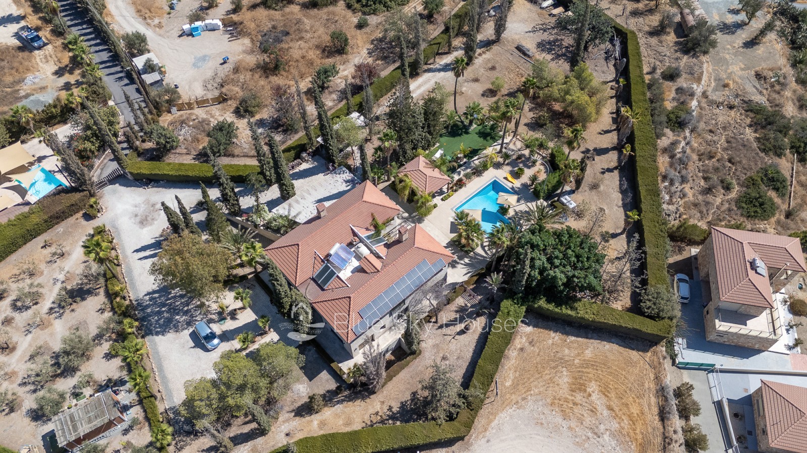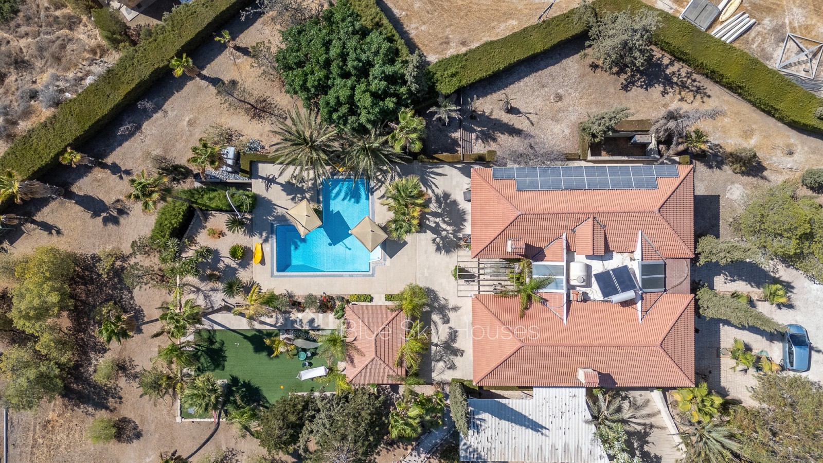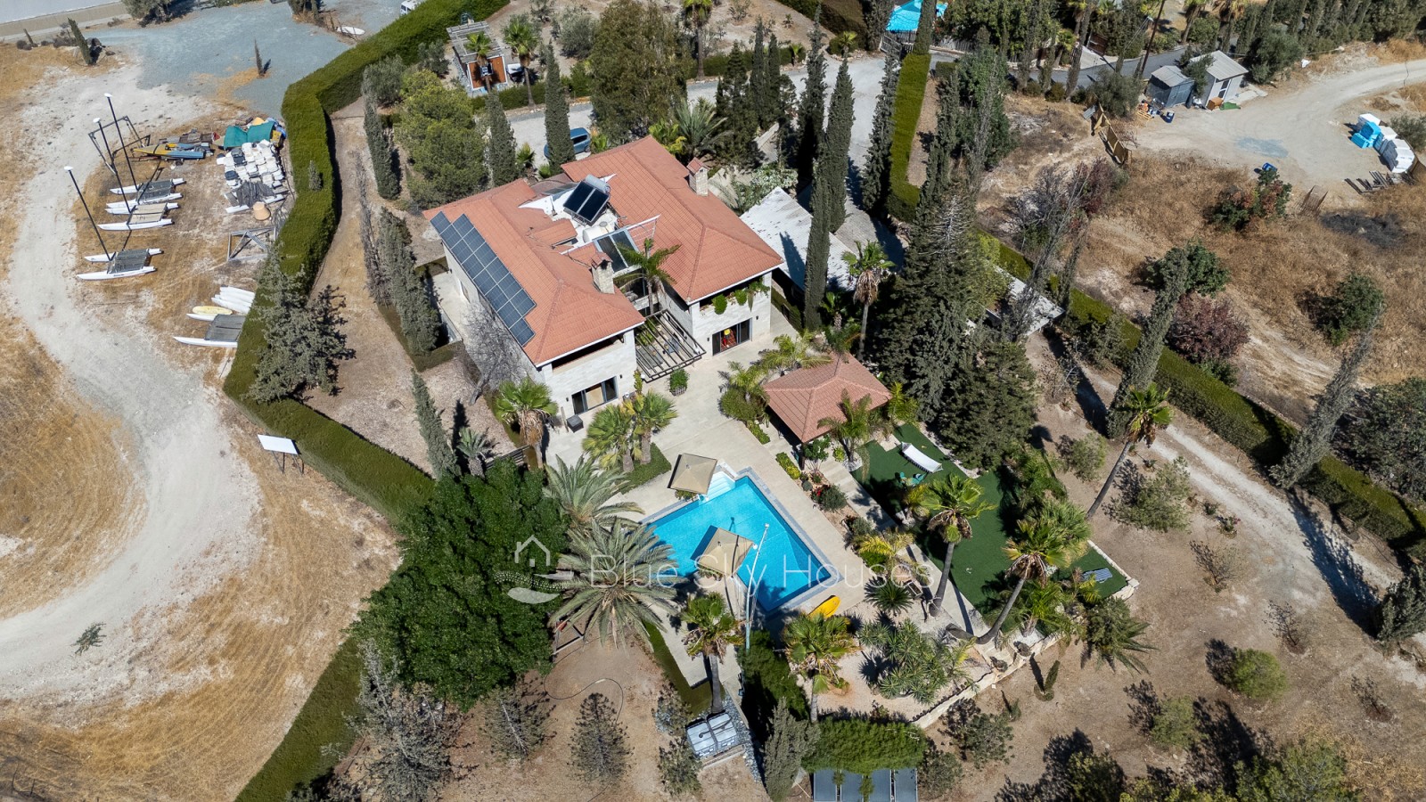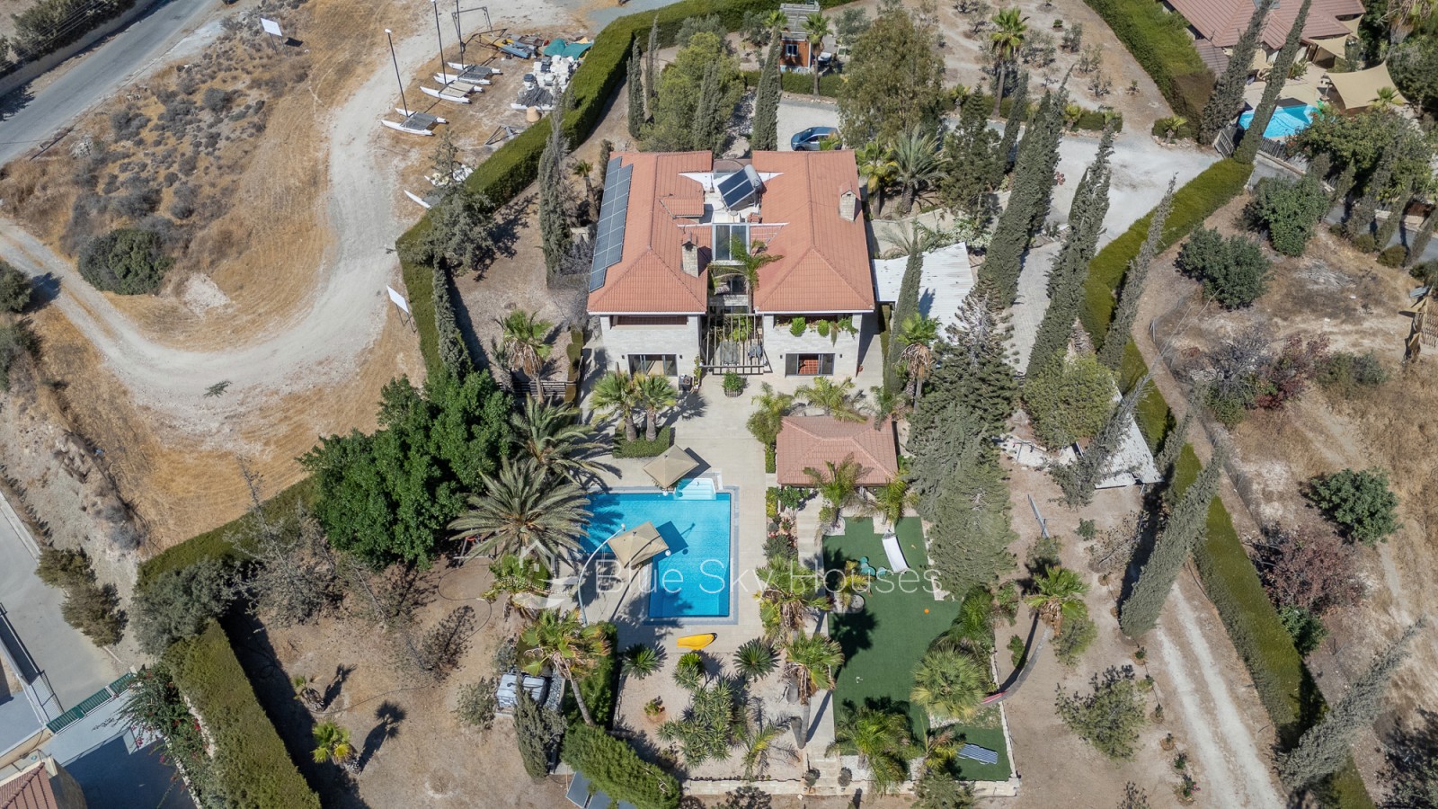 Продается светлая отдельностоящая вилла с 5 спальнями в Пареклиссии, Лимассол. Онa расположенa в тихом районе, всего в 7 минутах езды до ближайшего пляжа и в 15 минутах от центра города со всеми удобствами поблизости. При въезде с подъездной дороги есть электрические ворота. Вилла разделена на 2 уровня с собственным бассейном и огромными садами на участке площадью 5000 кв.м. На первом этаже есть просторный вход с массивными окнами, позволяющими наслаждаться видом на улицу и естественным освещением. Есть отдельная кухня с подсобным помещением, гостиная / столовая с камином, 2 спальни с ванными комнатами (1 в настоящее время используется под офис) и гостевой туалет. На втором этаже есть еще 3 спальни с главной ванной комнатой и гардеробной с семейной ванной, включая джакузи с видом на горы. У 2 спален есть чердак, который можно использовать как кладовую или другое дополнительное жилое пространство.
