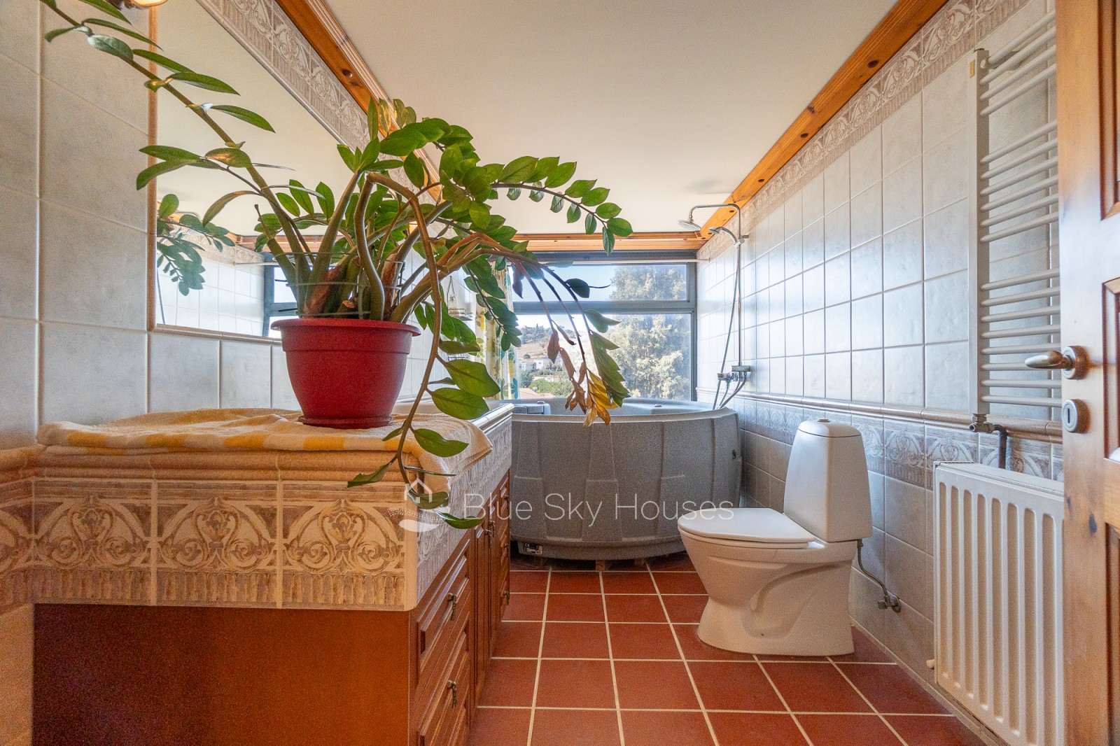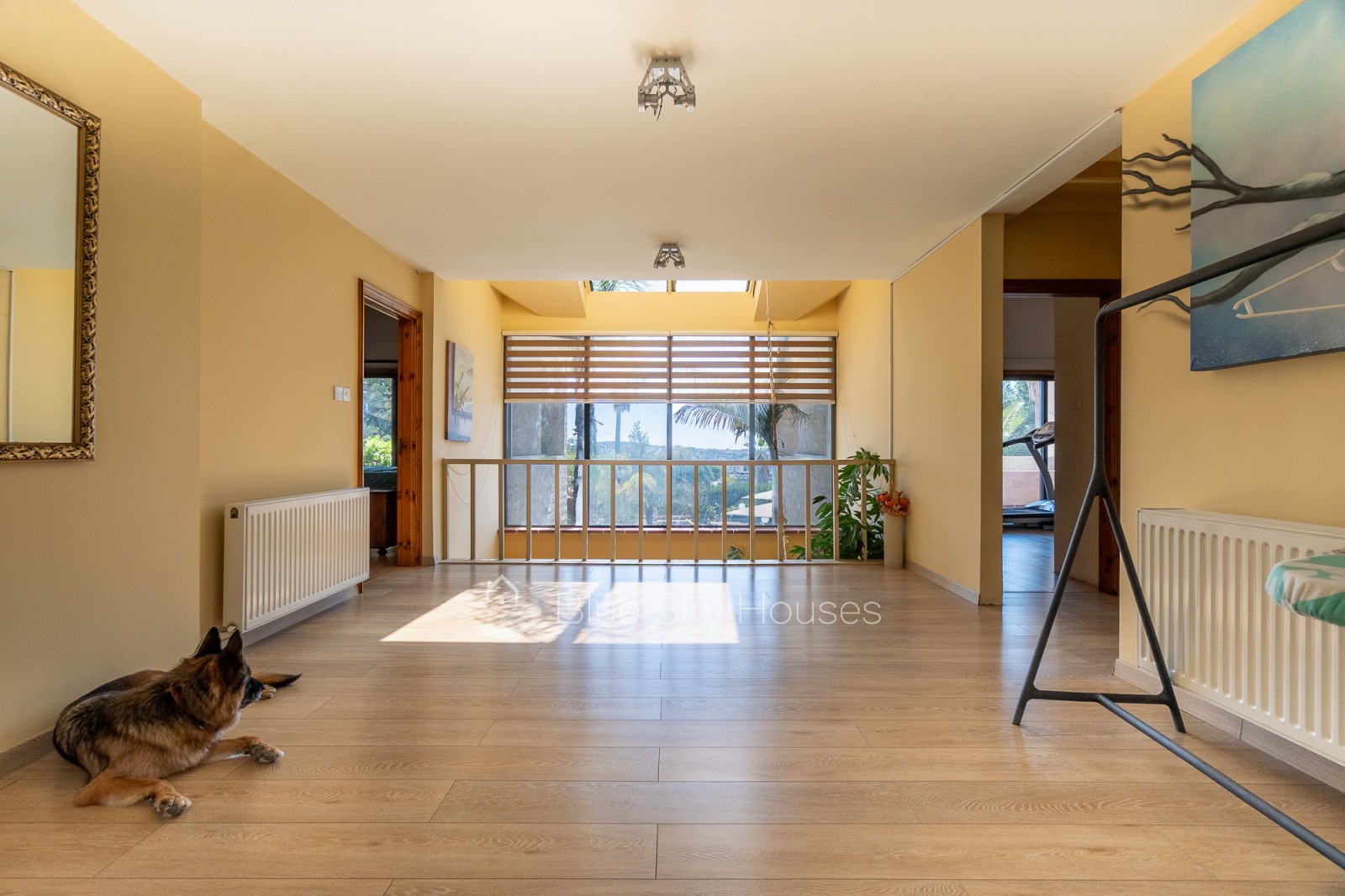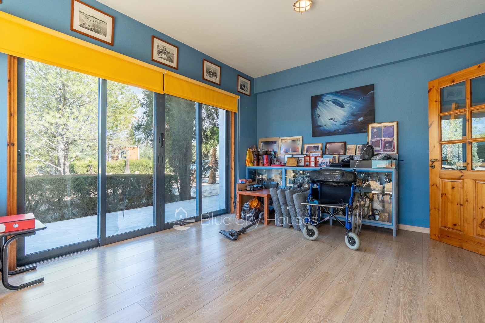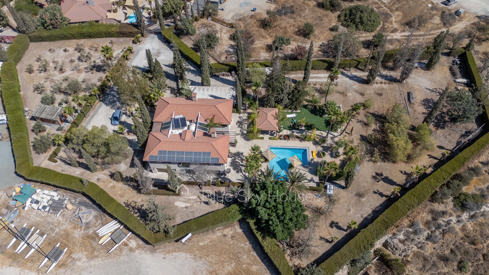 Продается светлая отдельностоящая вилла с 5 спальнями в Пареклиссии, Лимассол. Онa расположенa в тихом районе, всего в 7 минутах езды до ближайшего пляжа и в 15 минутах от центра города со всеми удобствами поблизости. При въезде с подъездной дороги есть электрические ворота. Вилла разделена на 2 уровня с собственным бассейном и огромными садами на участке площадью 5000 кв.м. На первом этаже есть просторный вход с массивными окнами, позволяющими наслаждаться видом на улицу и естественным освещением. Есть отдельная кухня с подсобным помещением, гостиная / столовая с камином, 2 спальни с ванными комнатами (1 в настоящее время используется под офис) и гостевой туалет. На втором этаже есть еще 3 спальни с главной ванной комнатой и гардеробной с семейной ванной, включая джакузи с видом на горы. У 2 спален есть чердак, который можно использовать как кладовую или другое дополнительное жилое пространство.