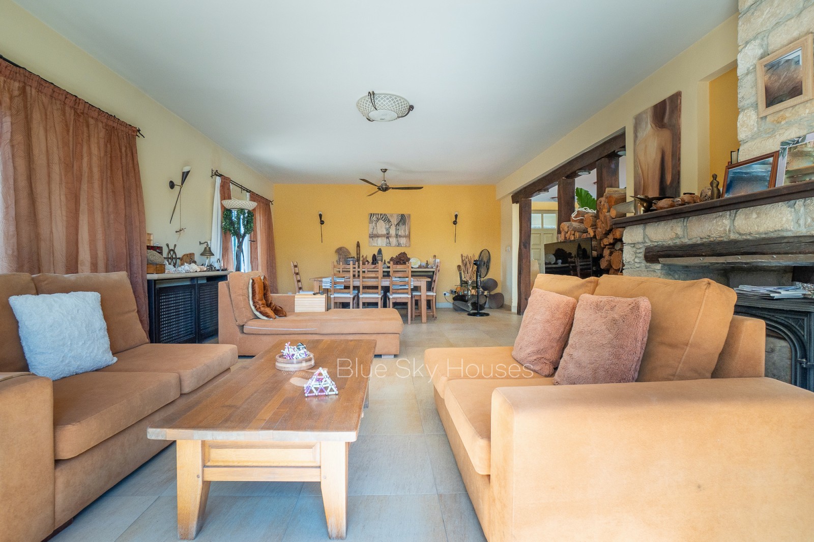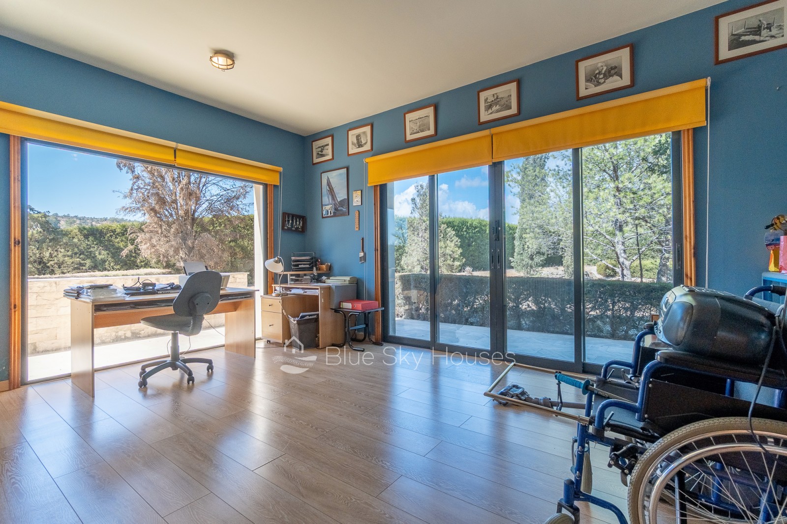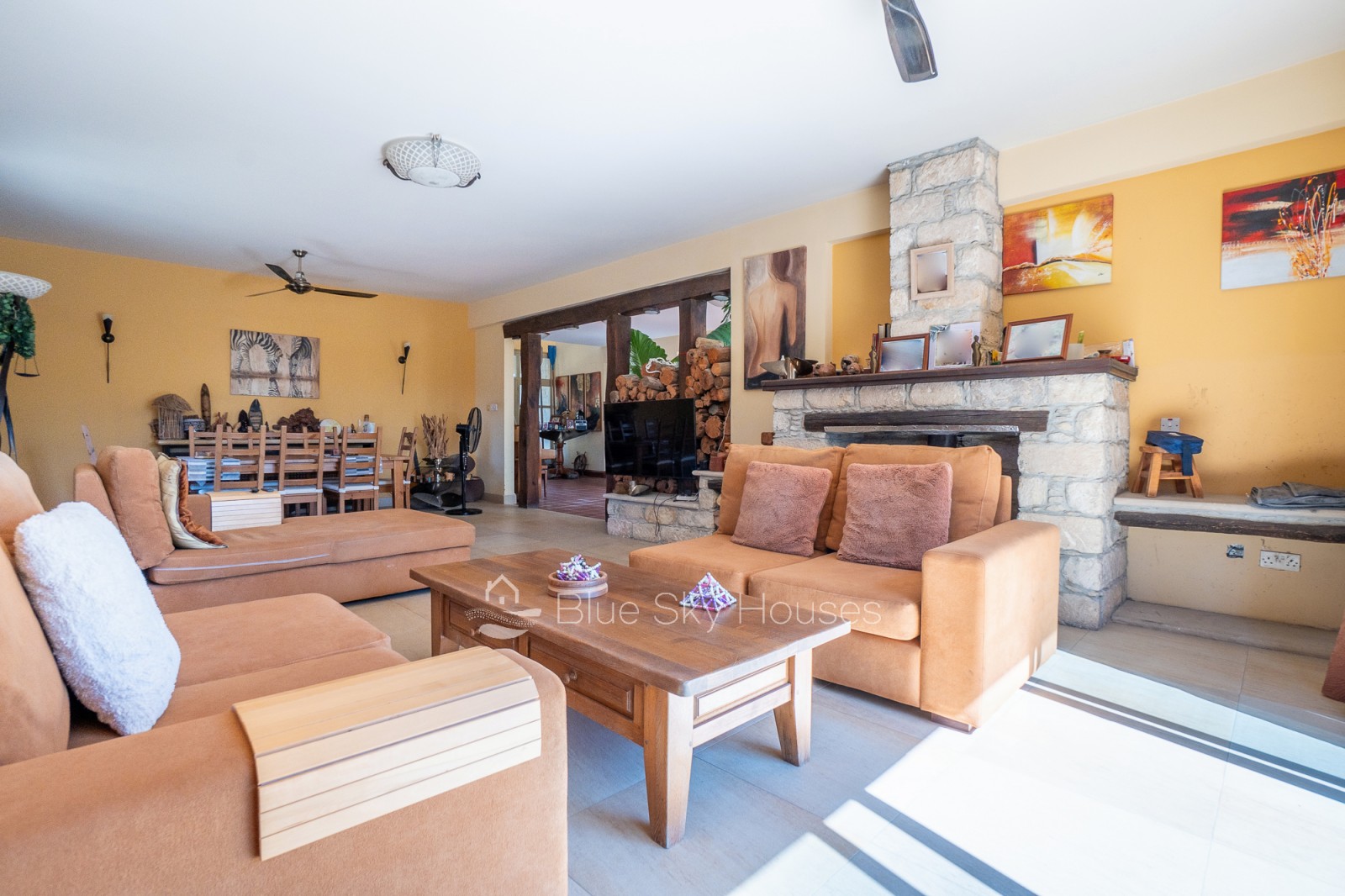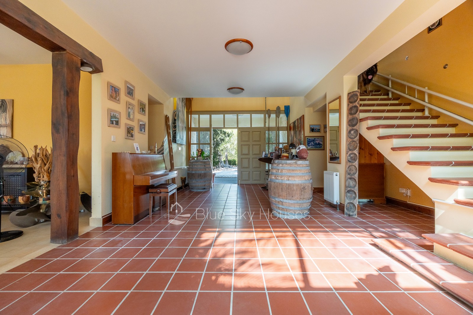 Продается светлая отдельностоящая вилла с 5 спальнями в Пареклиссии, Лимассол. Онa расположенa в тихом районе, всего в 7 минутах езды до ближайшего пляжа и в 15 минутах от центра города со всеми удобствами поблизости. При въезде с подъездной дороги есть электрические ворота. Вилла разделена на 2 уровня с собственным бассейном и огромными садами на участке площадью 5000 кв.м. На первом этаже есть просторный вход с массивными окнами, позволяющими наслаждаться видом на улицу и естественным освещением. Есть отдельная кухня с подсобным помещением, гостиная / столовая с камином, 2 спальни с ванными комнатами (1 в настоящее время используется под офис) и гостевой туалет. На втором этаже есть еще 3 спальни с главной ванной комнатой и гардеробной с семейной ванной, включая джакузи с видом на горы. У 2 спален есть чердак, который можно использовать как кладовую или другое дополнительное жилое пространство.