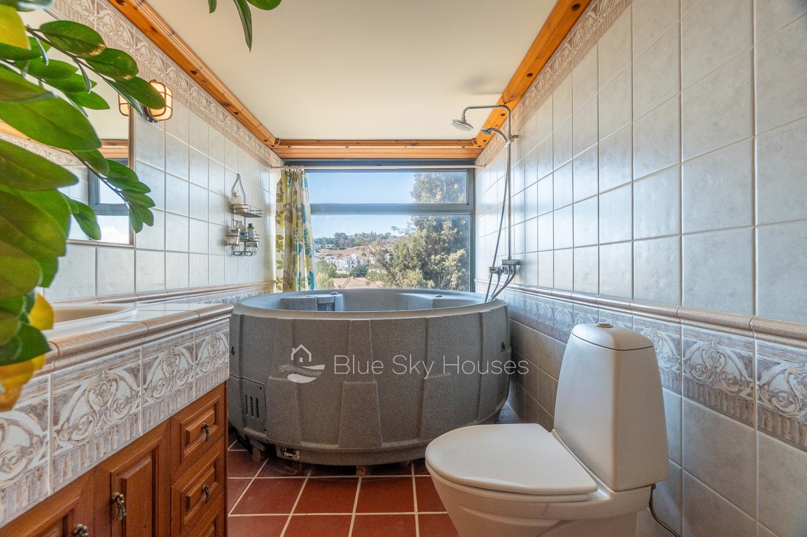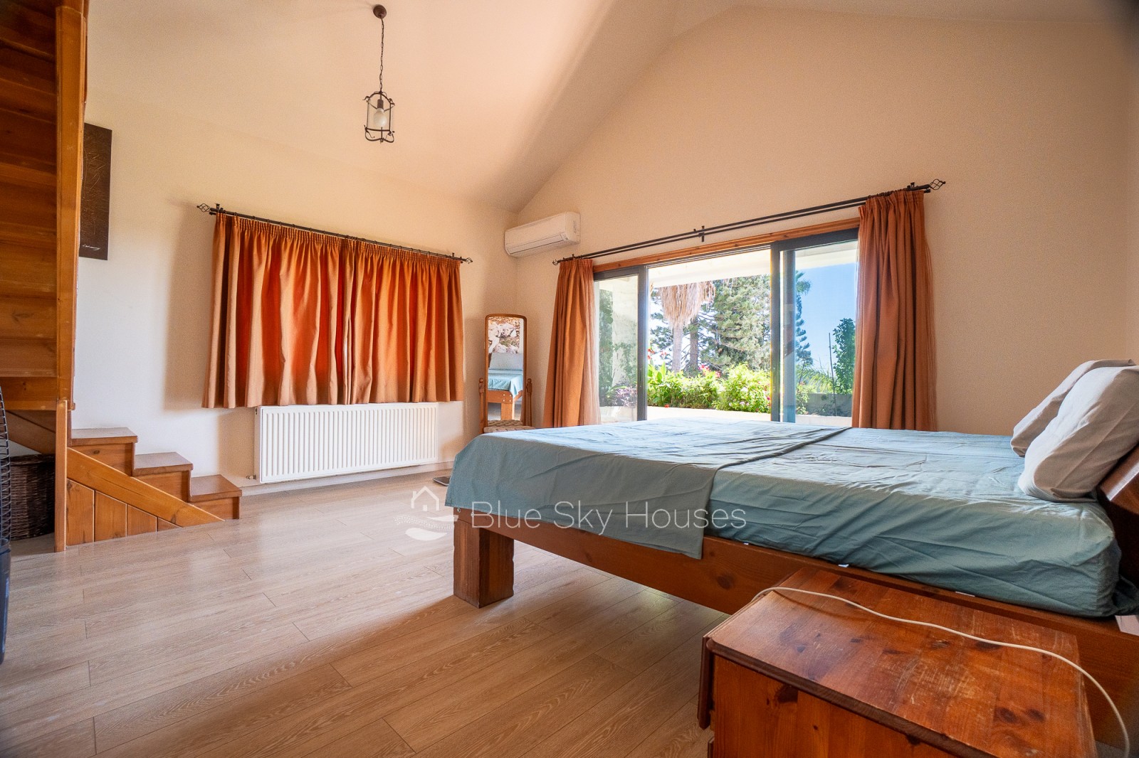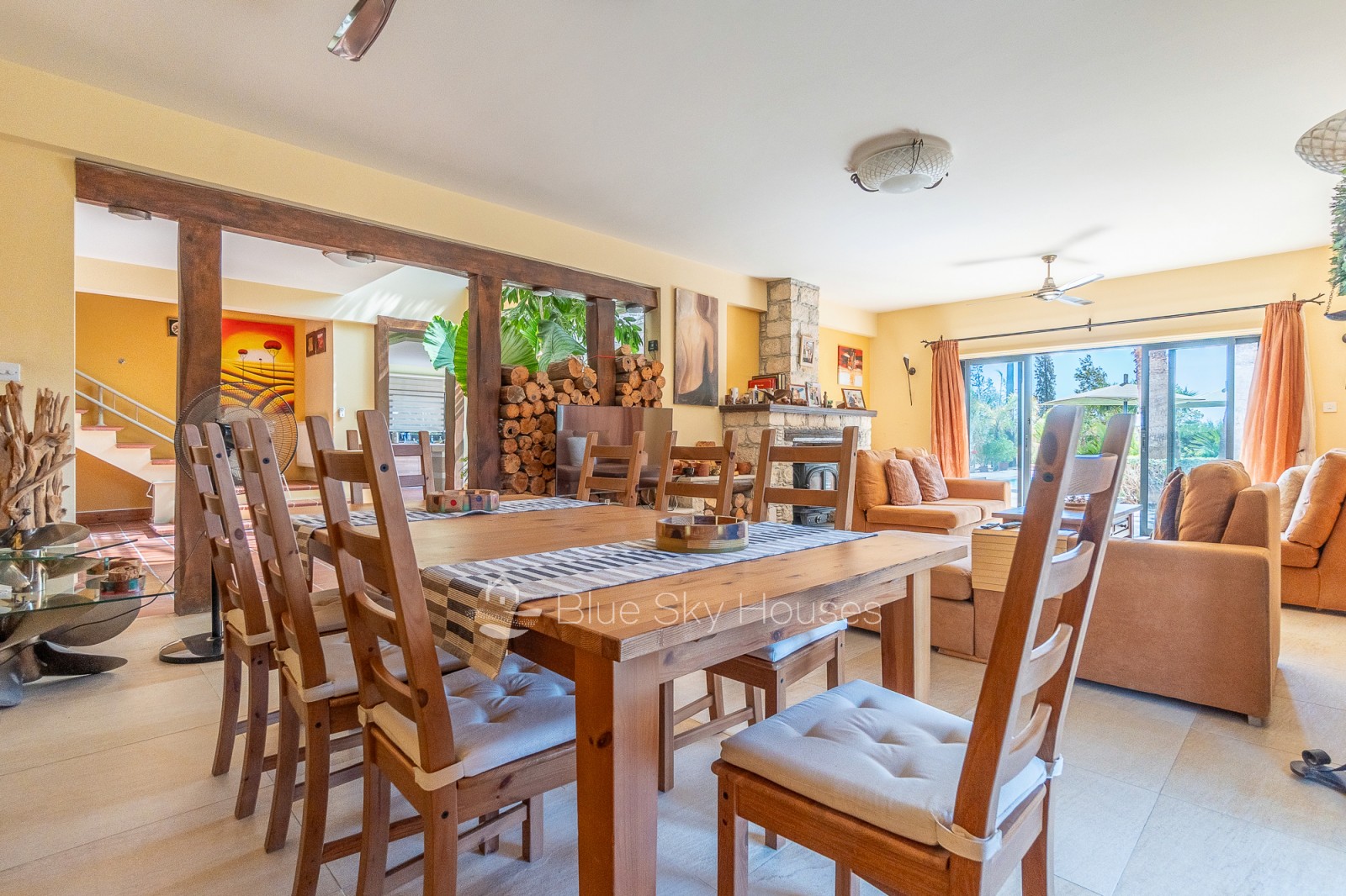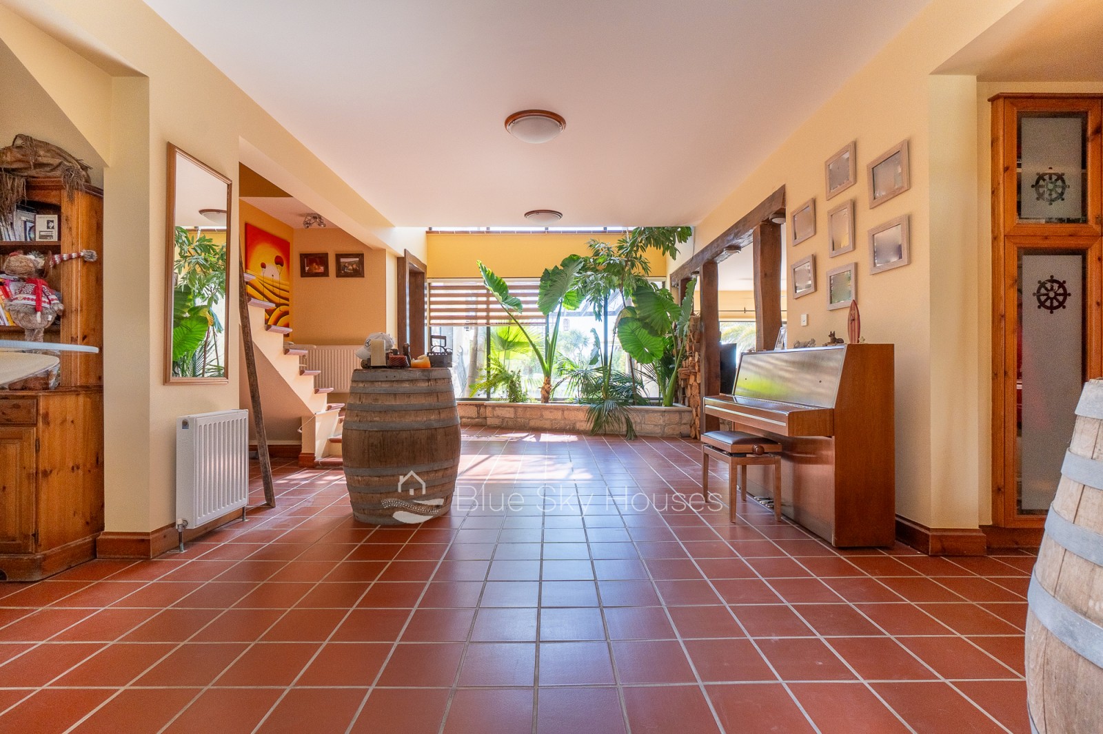 Продается светлая отдельностоящая вилла с 5 спальнями в Пареклиссии, Лимассол. Онa расположенa в тихом районе, всего в 7 минутах езды до ближайшего пляжа и в 15 минутах от центра города со всеми удобствами поблизости. При въезде с подъездной дороги есть электрические ворота. Вилла разделена на 2 уровня с собственным бассейном и огромными садами на участке площадью 5000 кв.м. На первом этаже есть просторный вход с массивными окнами, позволяющими наслаждаться видом на улицу и естественным освещением. Есть отдельная кухня с подсобным помещением, гостиная / столовая с камином, 2 спальни с ванными комнатами (1 в настоящее время используется под офис) и гостевой туалет. На втором этаже есть еще 3 спальни с главной ванной комнатой и гардеробной с семейной ванной, включая джакузи с видом на горы. У 2 спален есть чердак, который можно использовать как кладовую или другое дополнительное жилое пространство.