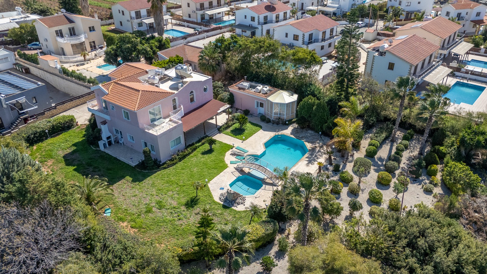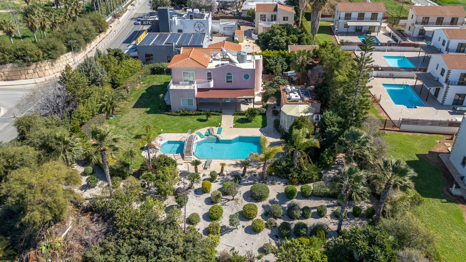 Редкая возможность приобрести просторную виллу с четырьмя спальнями в самом сердце Coral Bay, где знаменитые песчаные пляжи, рестораны, кафе, магазины и супермаркеты находятся всего в около 100 метрах пешком. Вилла расположена на большом приватном участке, граничащем с охраняемой зелёной зоной, что обеспечивает открытые виды на море, долгосрочную приватность и защиту от будущей застройки. Недвижимость имеет отдельные правоустанавливающие документы (Title Deeds), что гарантирует безопасную и надёжную сделку. Эта впечатляющая вилла вторичного рынка отличается масштабом и архитектурной выразительностью: двухсветные открытые жилые пространства, эффектная гранитная винтовая лестница, несколько гостиных зон, спальня на первом этаже, кабинет, тренажёрный зал и сауна, помещения для персонала, а также солярий на крыше с джакузи. Ухоженный ландшафтный сад окружает бассейн, зону барбекю и отдыха, а также имеется закрытый гараж и просторные внешние зоны. Вилла находится в хорошем конструктивном состоянии, при этом предлагает отличный потенциал для обновления и модернизации, позволяя новому владельцу создать современную резиденцию класса люкс и увеличить её стоимость в одном из самых престижных районов Пафоса с доступом к песчаным пляжам западного побережья. Уникальное сочетание расположения, приватности, видов на море и долгосрочной инвестиционной привлекательности делает это предложение по-настоящему исключительным.