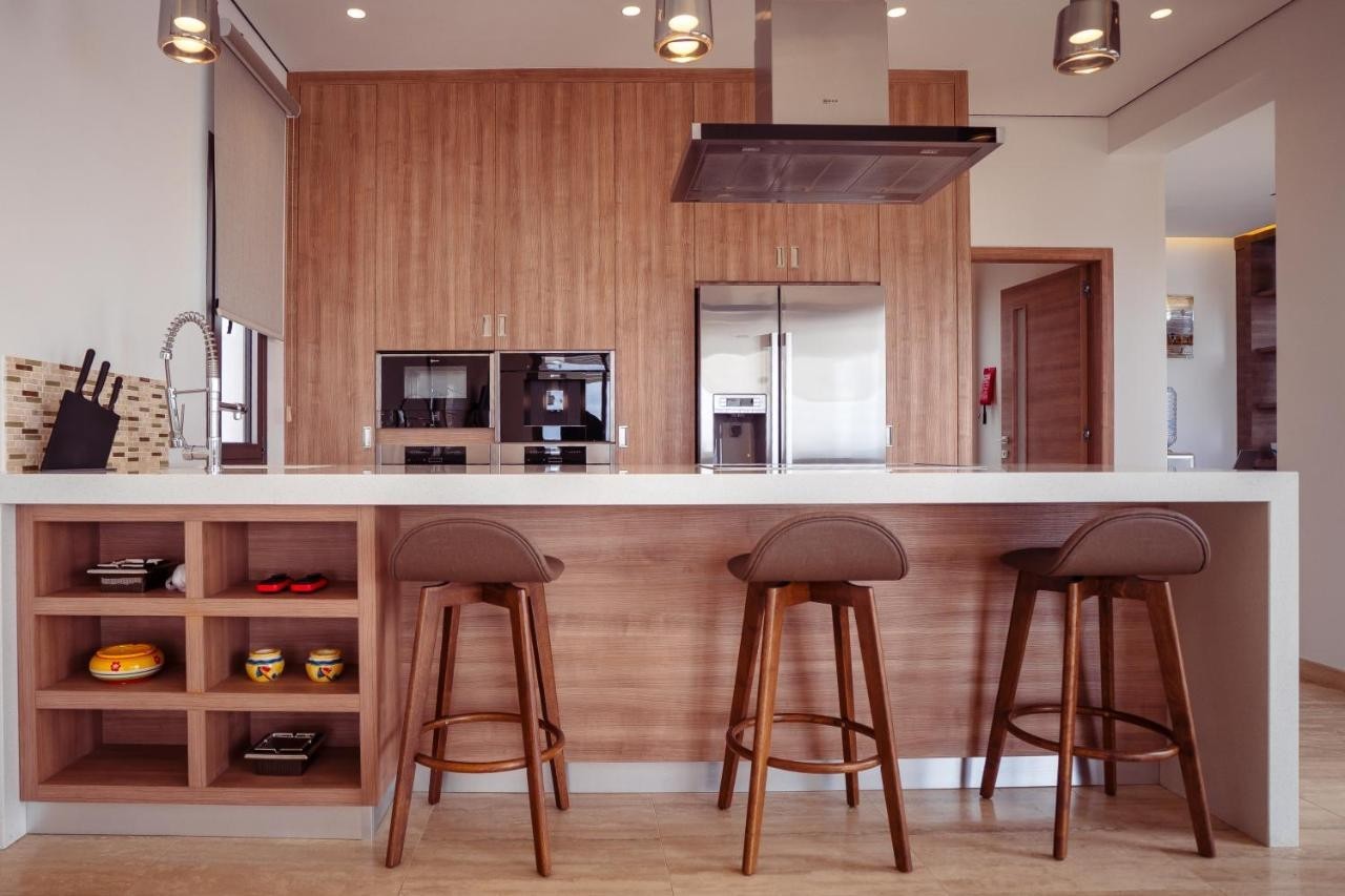 В центре дома находится современная кухня с техникой высокого класса, стильной мебелью и обилием рабочего пространства — настоящая мечта для любителей кулинарии.