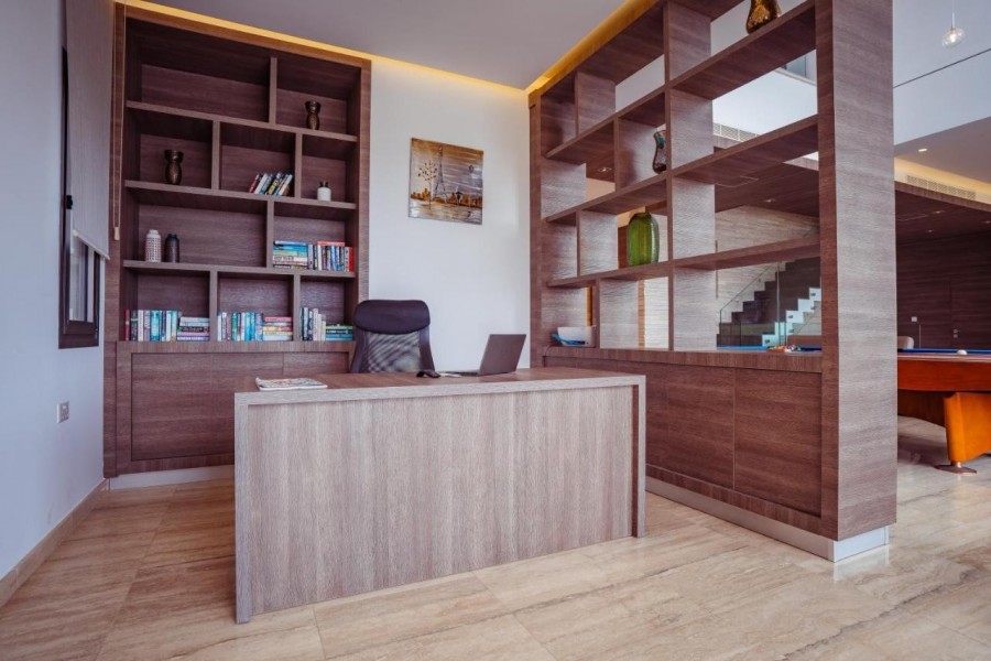 Вилла расположена на просторном участке 4039 м² с собственным садом и включает пять просторных спален, каждая из которых имеет собственную ванную комнату, обеспечивая максимальную конфиденциальность и утончённый стиль. Просторные гостиная и столовая открытой планировки плавно переходят в террасы на открытом воздухе, создавая идеальное пространство как для отдыха, так и для приёма гостей.