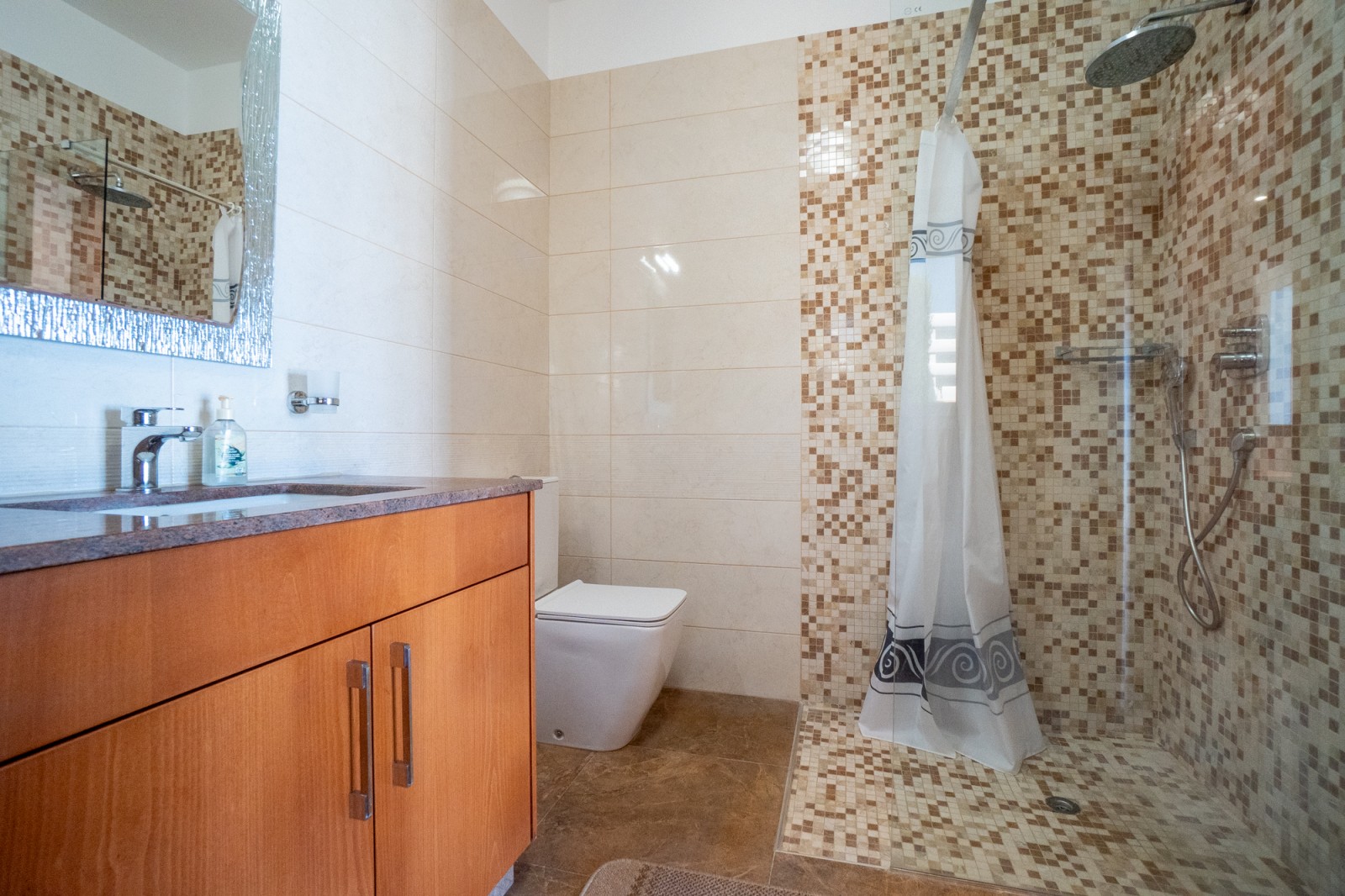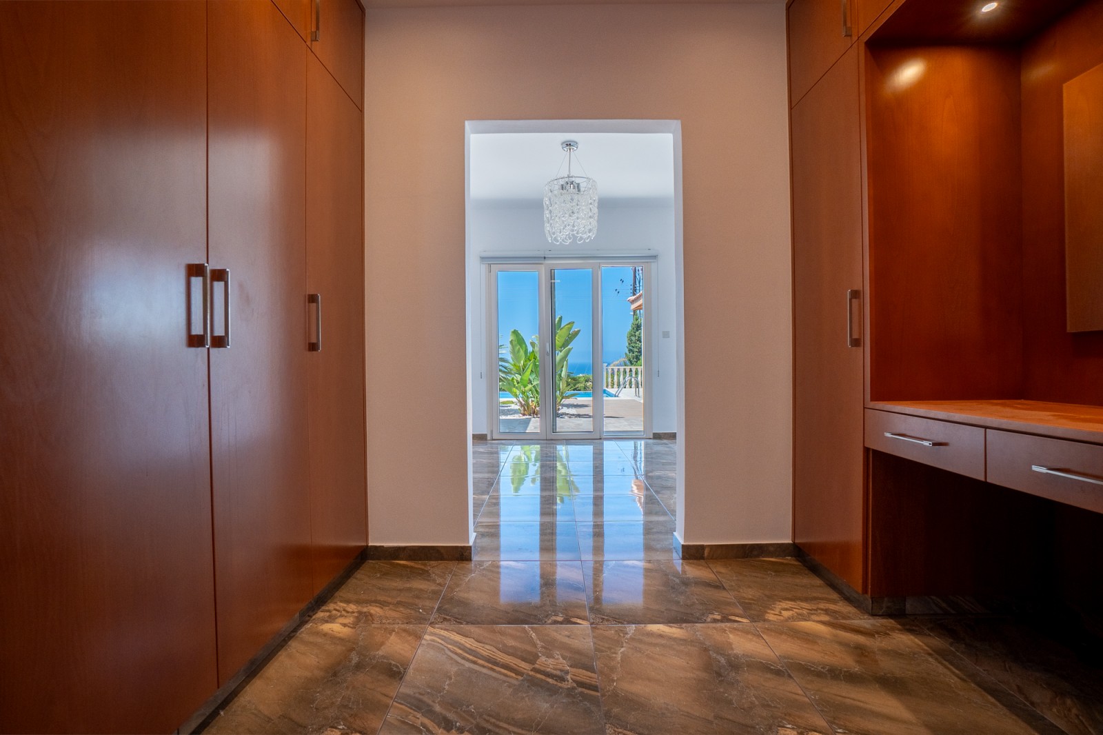 Главная спальня на первом этаже — это оазис комфорта с гардеробной, встроенными шкафами и ванной комнатой с душем и ванной. Прямой выход на террасу позволит вам полностью погрузиться в атмосферу спокойствия. На верхнем этаже дом превращается в вдохновляющее пространство с галерейной гостиной, наполненной естественным светом. Две дополнительные спальни с собственными ванными комнатами открывают захватывающие виды — одна на бескрайнее море, другая на величественные горы. Терраса с электрическим маркизом приглашает насладиться едой на свежем воздухе с непревзойдёнными видами.