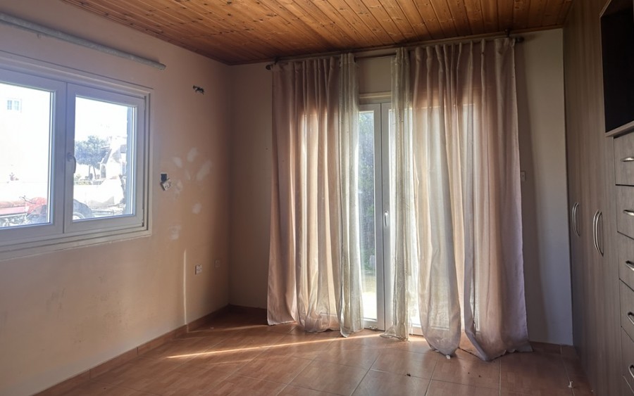 One-bedroom house in Perivolia, Larnaca. The house has an area of 98sqm. It consists of an open plan dining/living room and kitchen, a guest toilet, a bedroom and a bathroom. There is also an attic with an area of c. 24sqm, which is used as a storage area.