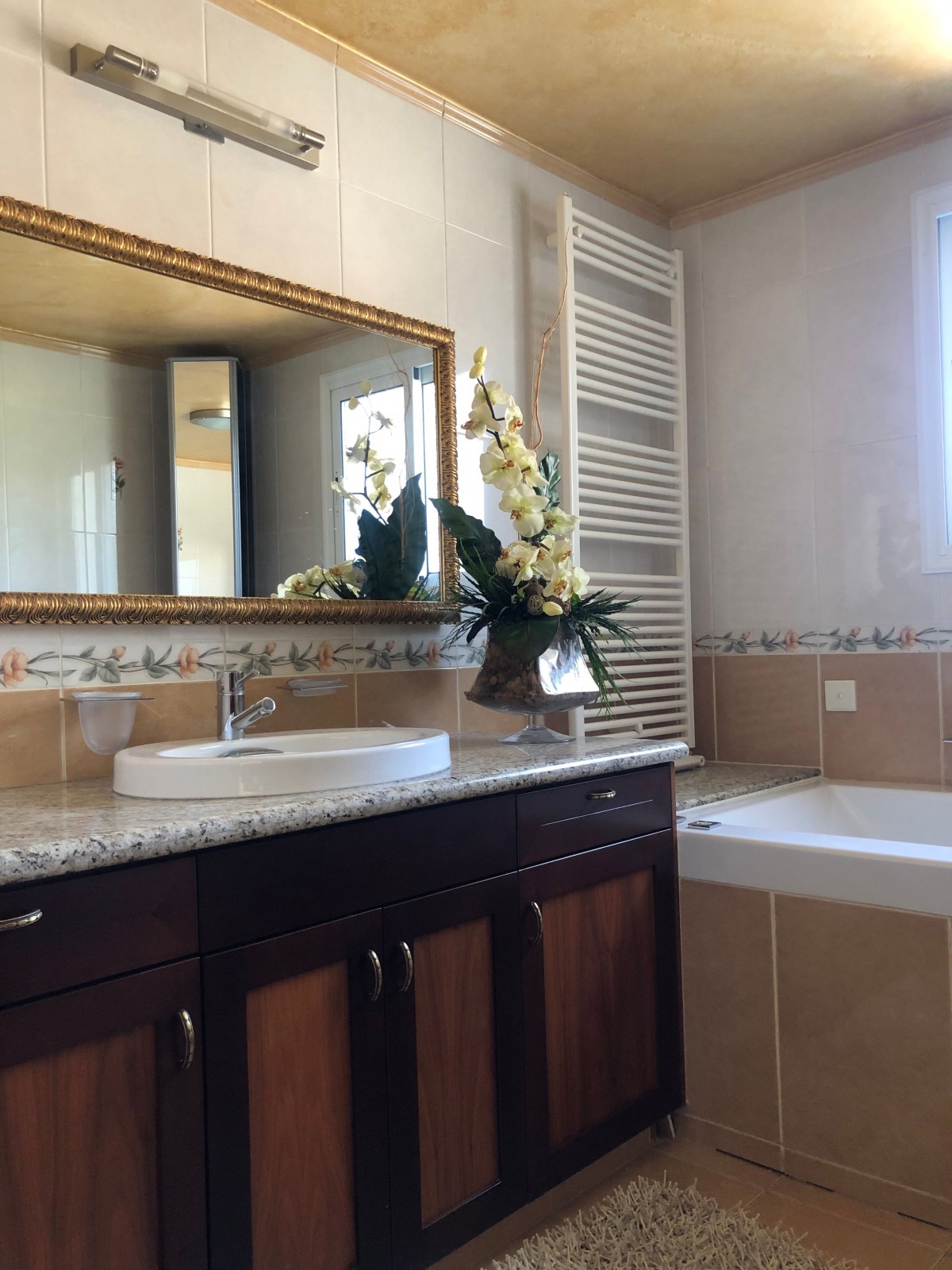 Построенная в 2010 году, эта вилла обладает всеми необходимыми роскошными удобствами. Зоны отдыха открытой планировки с баром, большая кухня с прачечной и закрытая частная парковка. Крытая площадка для барбекю у бассейна со зрелым садом. Сауна и душ с гидромассажем. Большая спальня с ванной комнатой, гардеробом и декоративным карнизом на потолке в большинстве комнат со скрытым освещением в потолках Falce и картинами ручной работы на стенах.